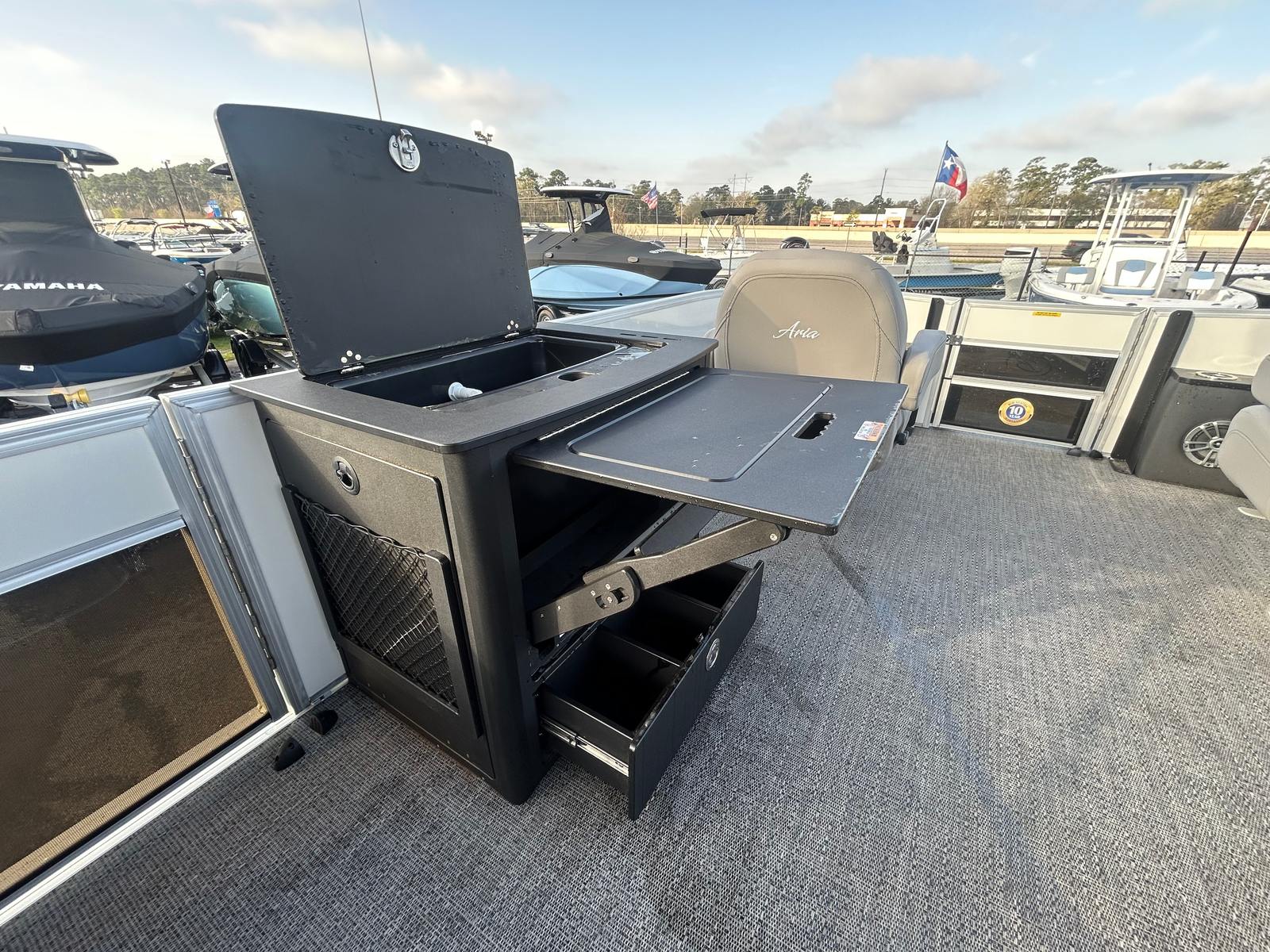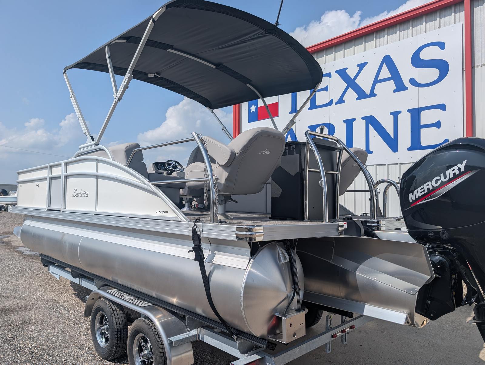 The Barletta Aria A22F is designed with practicality in mind, making ownership as enjoyable as the time you spend on the water. The in-floor midship storage offers generous space for all your boating essentials, helping you keep the deck tidy and organized. The durable Amore Gray flooring is easy to maintain, so you can spend less time cleaning and more time having fun.Docking and maneuvering are simplified by the responsive Mercury 150L Four Stroke engine and the precision of the stainless steel prop. The Triple Toon Package provides added stability, making it easier to dock and anchor, even in less-than-ideal conditions. Fuel efficiency is another advantage of the Mercury engine, allowing you to enjoy longer outings without frequent stops for refueling.