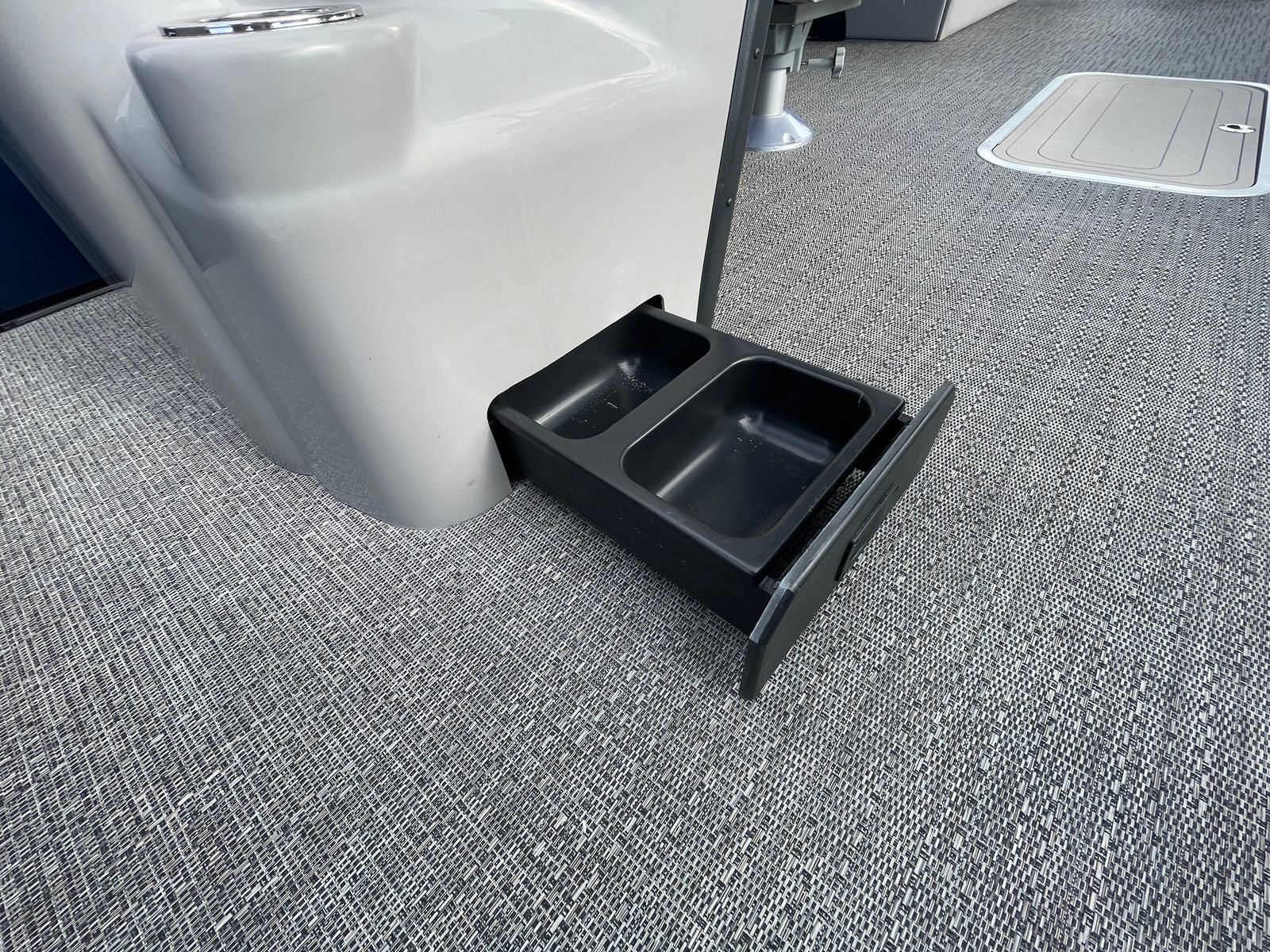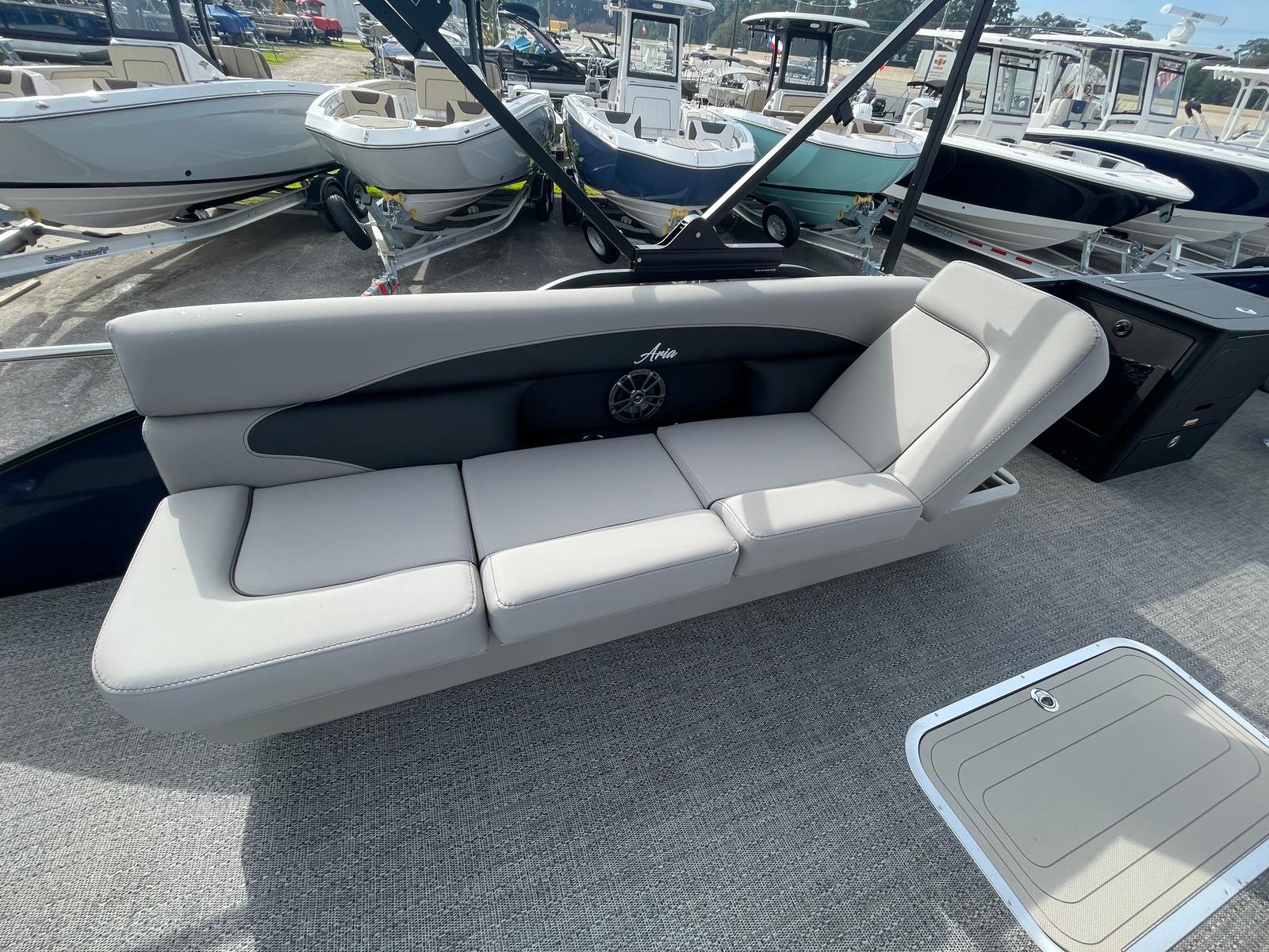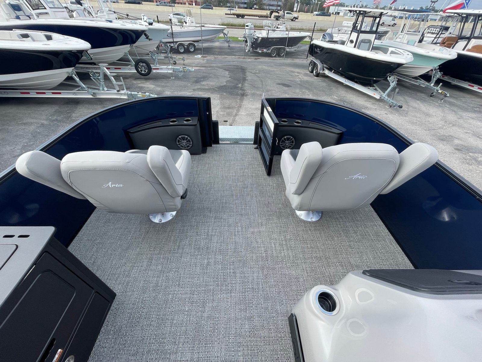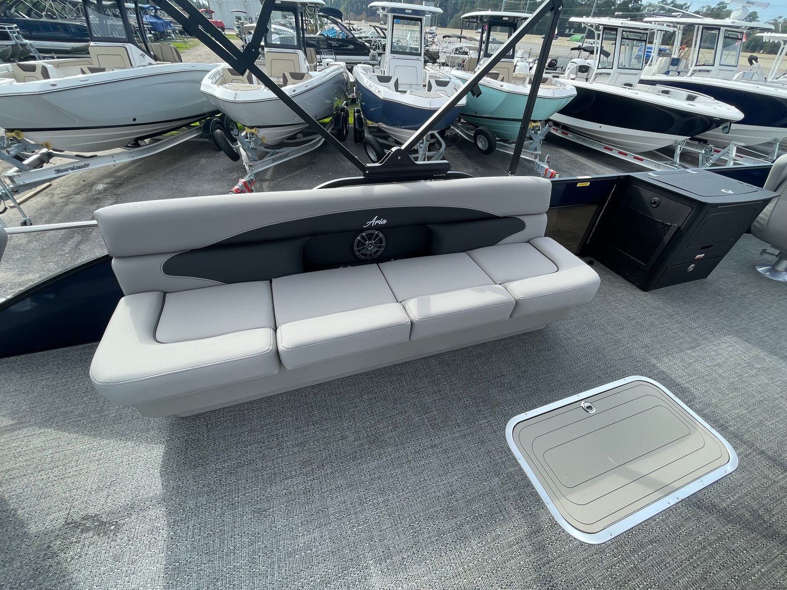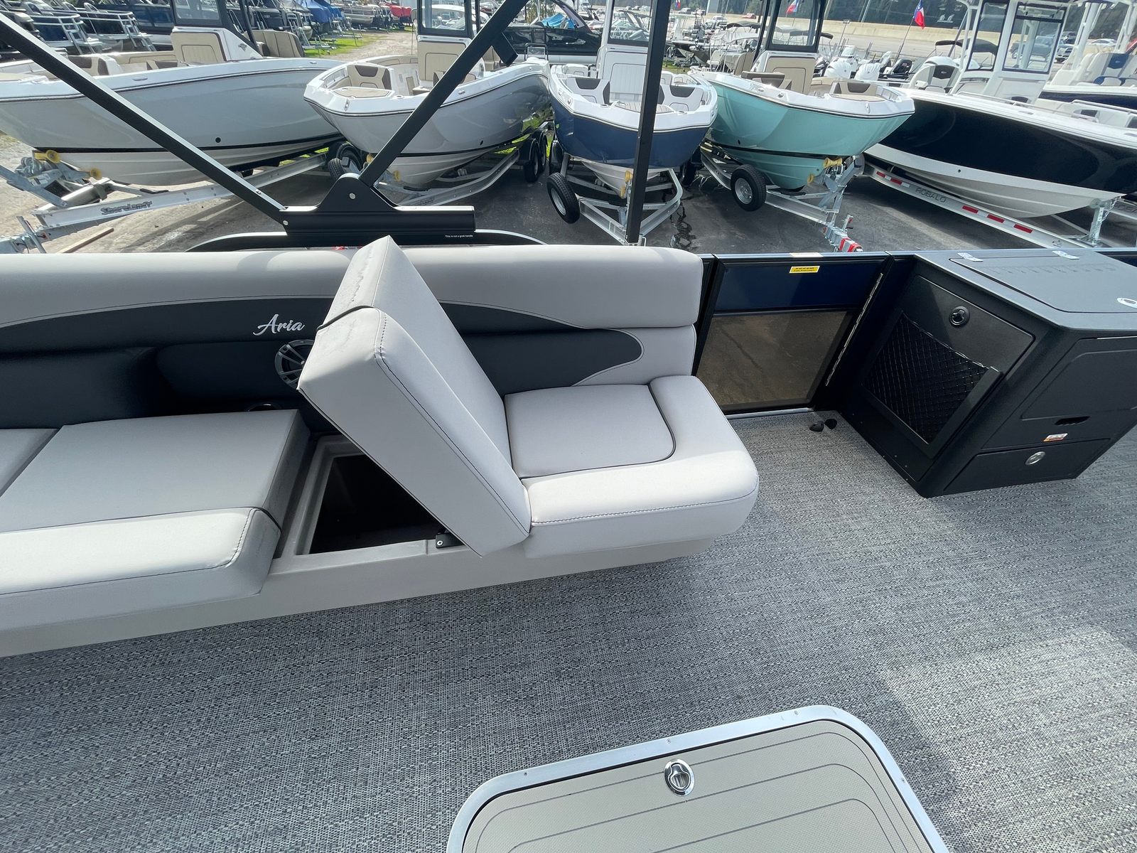 Owning the Barletta Aria A24F means embracing a lifestyle of fun, relaxation, and connection. This pontoon boat is designed for socializing, with spacious seating arrangements that encourage conversation and togetherness. Whether you’re hosting a sunset cruise, enjoying a picnic on the water, or simply lounging with friends, the comfortable and stylish interior ensures everyone feels at home.The advanced helm and navigation system make piloting the boat a breeze, even for those new to boating. The in-floor storage keeps your essentials secure and accessible, so you can focus on making memories instead of managing clutter. The Triple Toon Package Aria provides a stable platform for swimming, fishing, or sunbathing, giving you the freedom to enjoy the water your way.