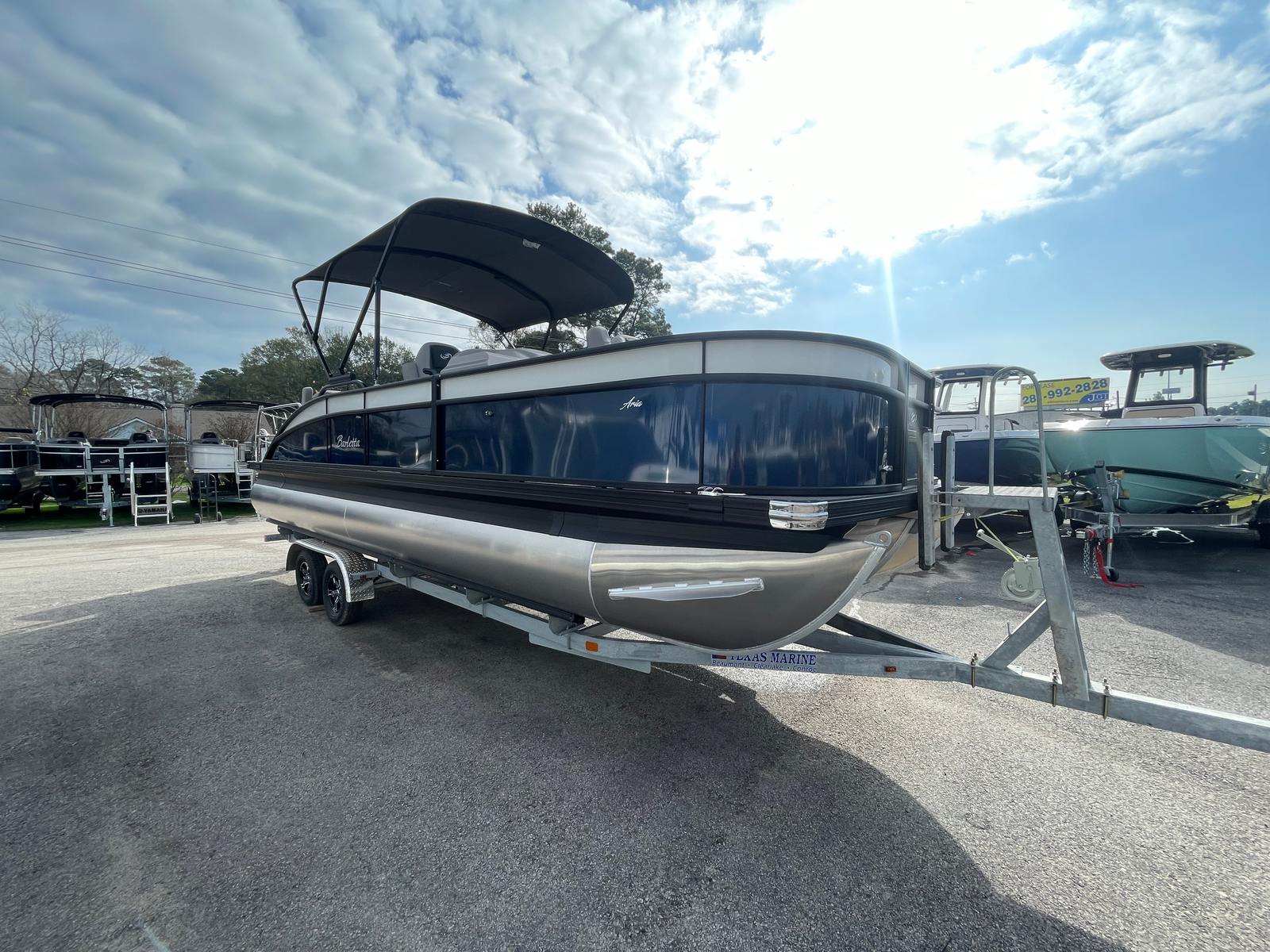 The 2025 Barletta Aria A24F is a 23-foot pontoon that exudes sophistication and comfort. Its sleek profile, highlighted by the Railskin Packages: Blackout Package Aria, and the eye-catching Blue Sapphire Railskin Color with White Opal accent, ensures you’ll turn heads at every marina. The Tempest Gray furniture and Amore Gray flooring create a contemporary and inviting atmosphere, making this Barletta boat for sale a true showstopper. With only one engine hour, this pontoon is in pristine, new condition, ready to deliver countless hours of enjoyment on the water.