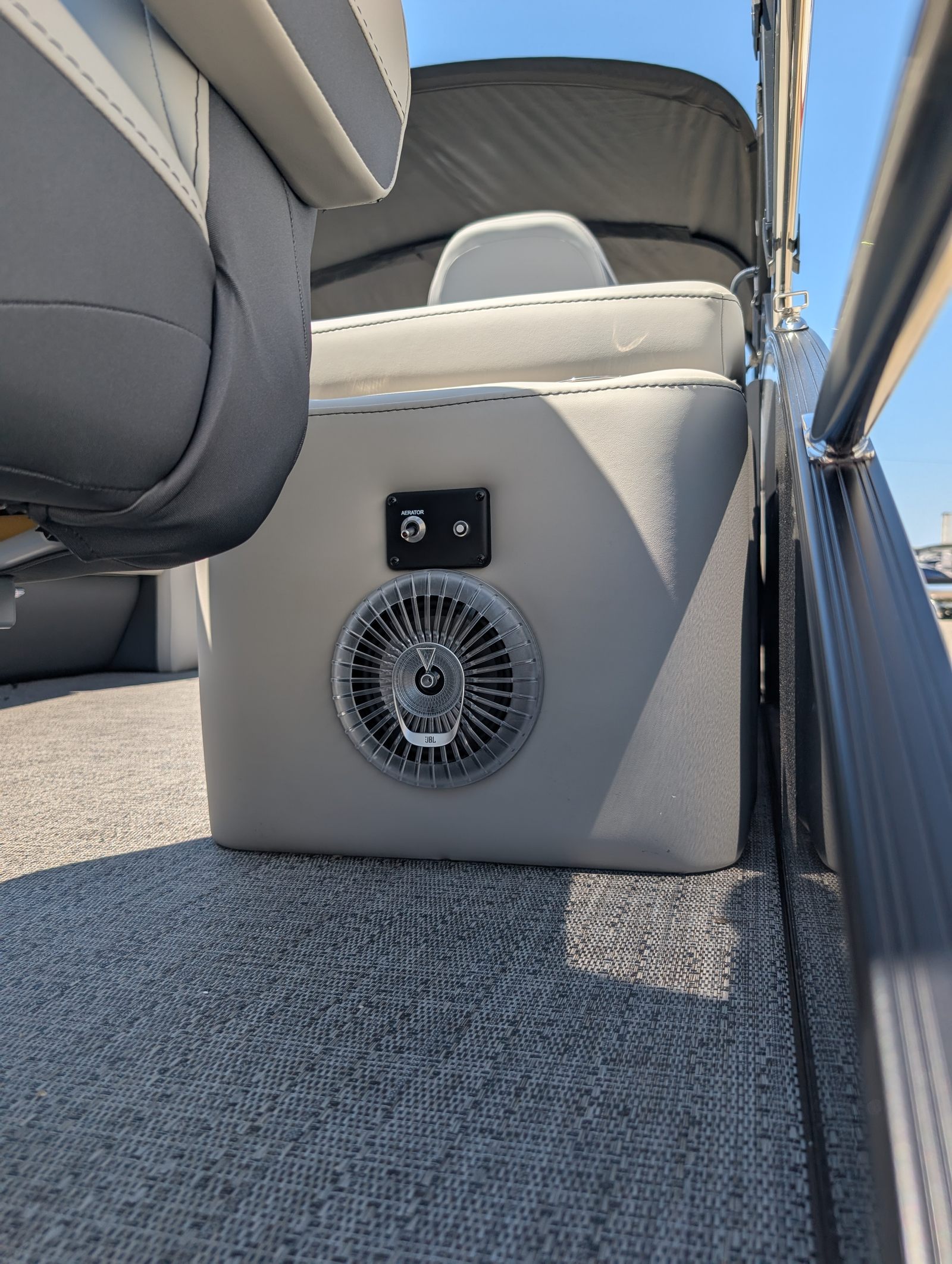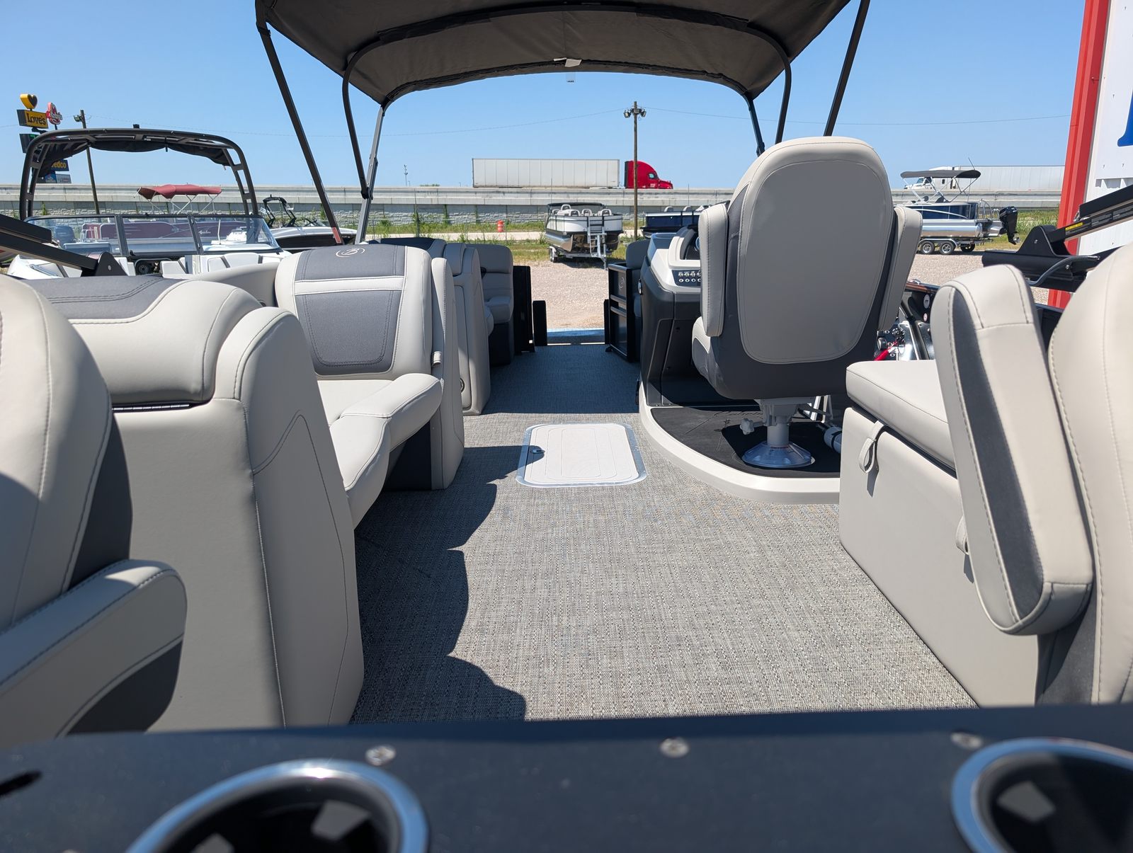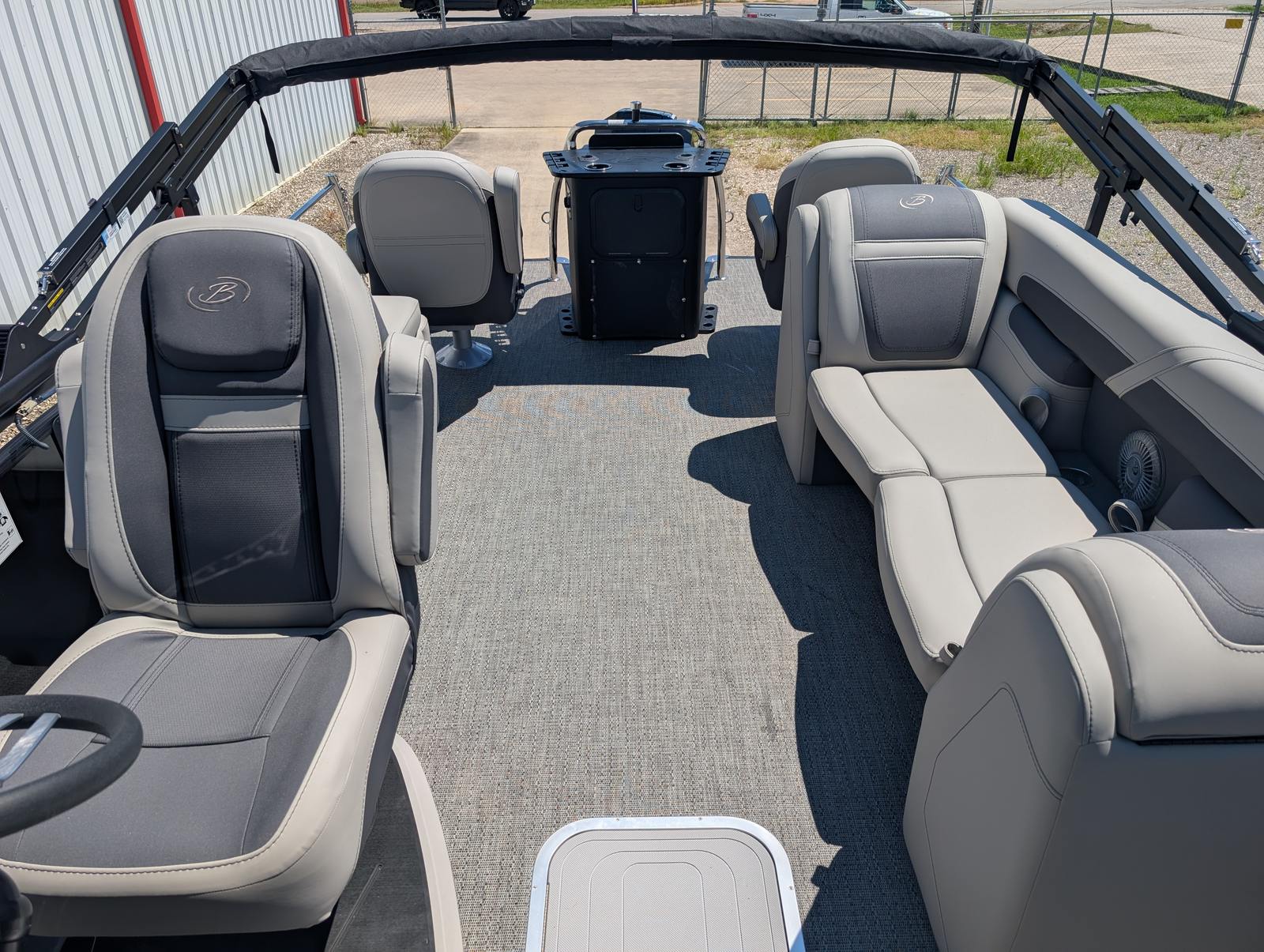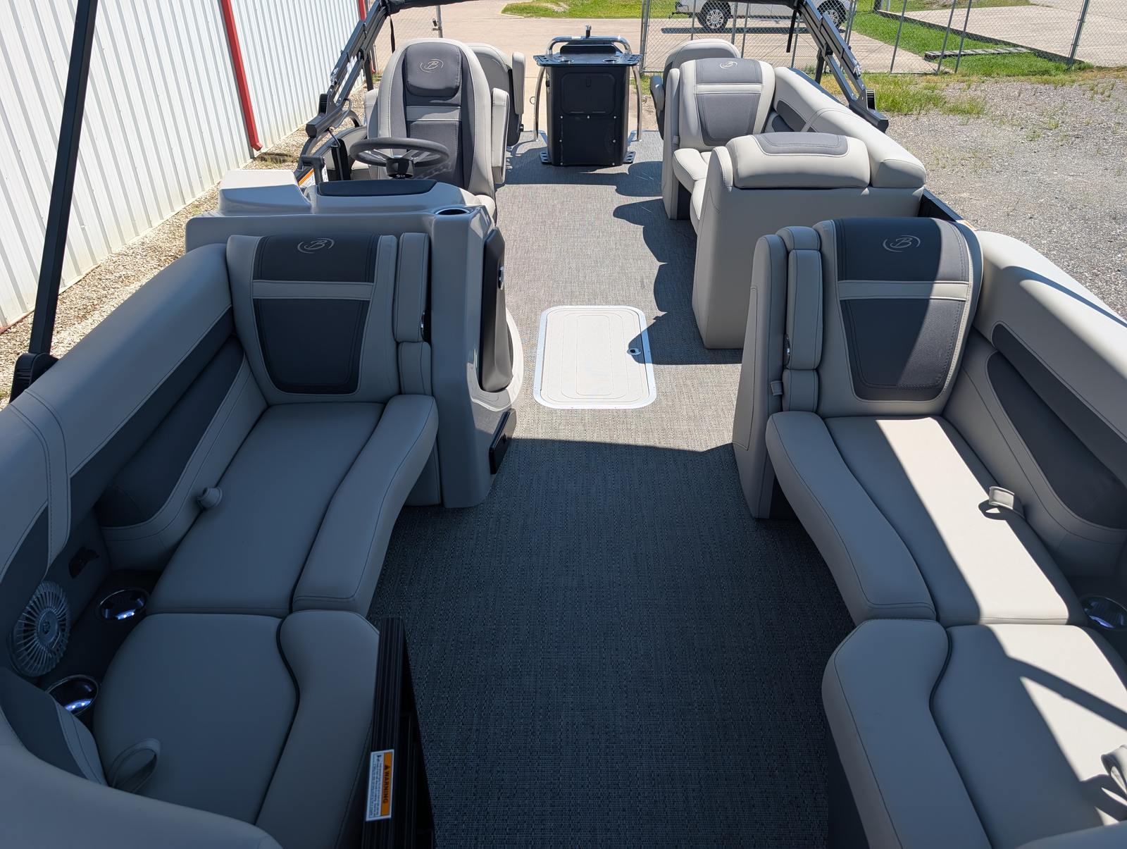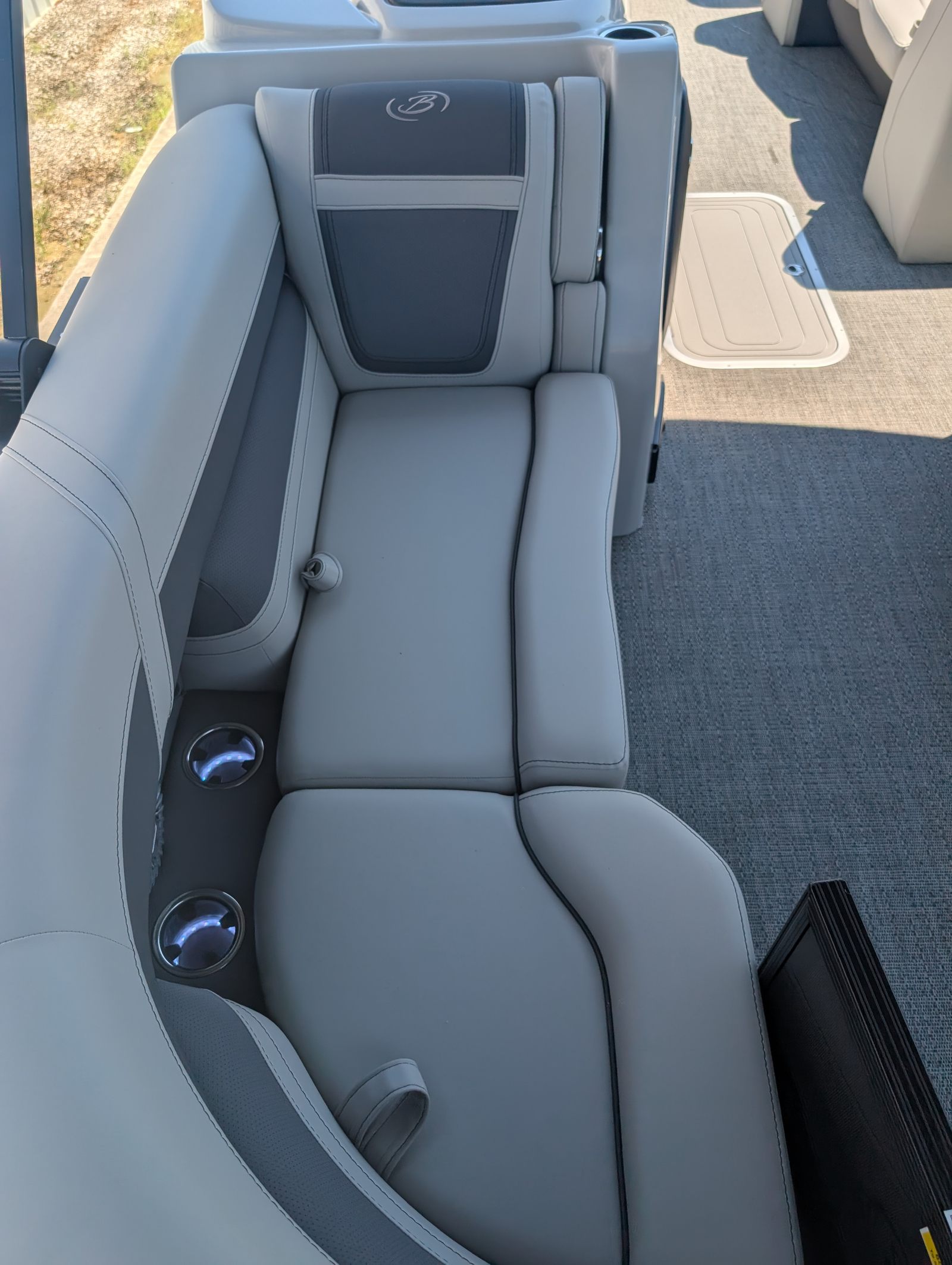 The 2025 Barletta Cabrio C22CC is packed with premium features that set it apart from other pontoon boats for sale. The Amore Gray flooring offers a modern and sophisticated look while providing durability and easy maintenance. The interior RGB Lighting Package Cabrio creates a vibrant and customizable atmosphere, perfect for evening gatherings or late-night cruises. Entertain guests around the stylish table, pedestal, and base, complete with Yeti-ready cupholders to keep your favorite beverages secure and within reach.The Triple Toon Package with midship storage enhances stability and buoyancy, ensuring a smooth and comfortable ride even when the boat is fully loaded. The helm is equipped with a Simrad 7 G07 XSR chartplotter and multifunction display, giving you advanced navigation and control at your fingertips. The exterior features a Metal Jacket Protectant, offering added durability and protection against the elements, while the Blackout Package Cabrio railskin adds a sleek, modern touch to the boat’s profile.Inside, the Marquesan Gray furniture with charcoal accents provides plush seating and a refined aesthetic, making every moment on board feel like a luxury experience. Every detail, from the upholstery to the layout, is designed with comfort and style in mind.