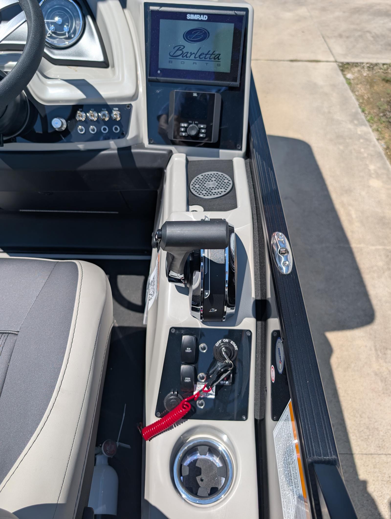 The Barletta Cabrio C22CC is engineered for convenience as well as excitement. The intuitive helm with the Simrad multifunction display simplifies navigation and monitoring, allowing you to chart your course with confidence. The durable flooring and protective exterior coatings mean less time spent on maintenance and more time enjoying the water.Docking and maneuvering are a breeze thanks to the responsive power assist steering and well-balanced hull design. The thoughtfully placed cupholders and table make it easy to serve snacks and drinks, turning every outing into a special event. With its efficient Mercury FourStroke engine, you can enjoy long days on the water without worrying about excessive fuel consumption.