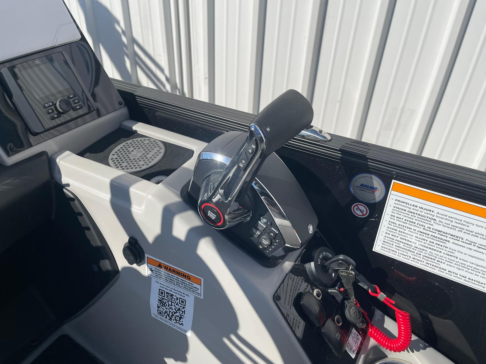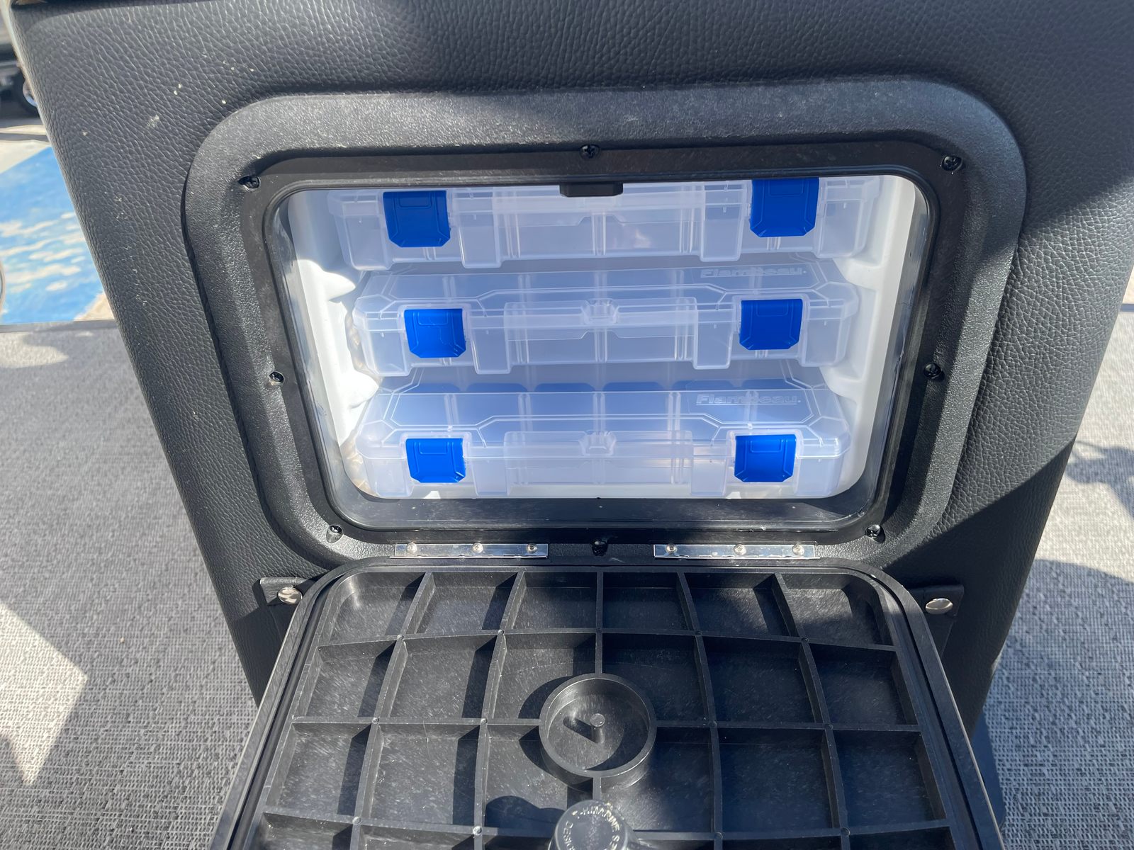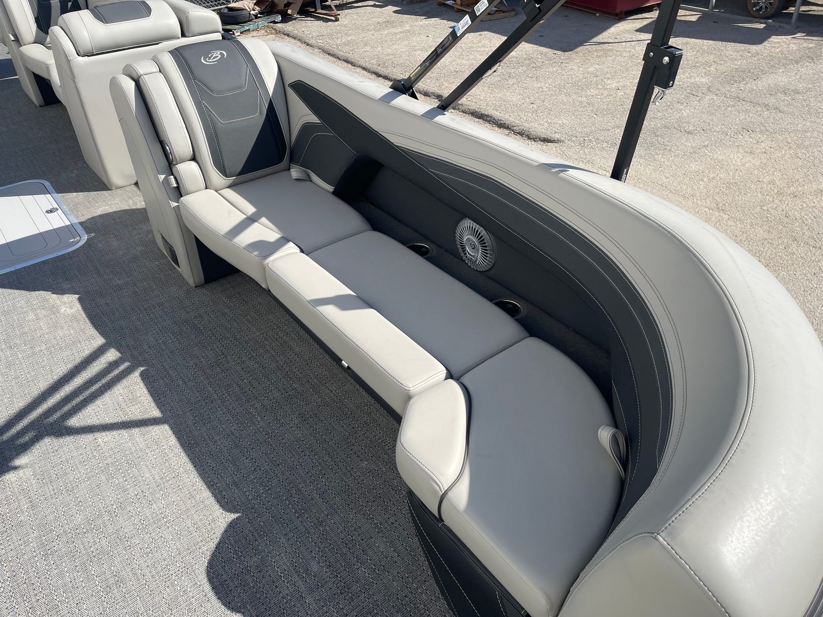 This Barletta pontoon boat is loaded with features designed to elevate your time on the water. The Blackout Package Cabrio adds a bold and contemporary aesthetic, while the adjustable pedestal on the captain’s chair ensures optimal comfort and visibility for the driver. The double bimini canvas provides generous shade, allowing you and your guests to stay cool and protected during sunny days.Digital gauges offer clear and accurate readouts, keeping you informed of all vital systems at a glance. The rigged engine with a stainless steel prop ensures durability and efficient performance, while the triple toon package with midship storage not only boosts stability but also provides convenient space for stowing gear and water toys.