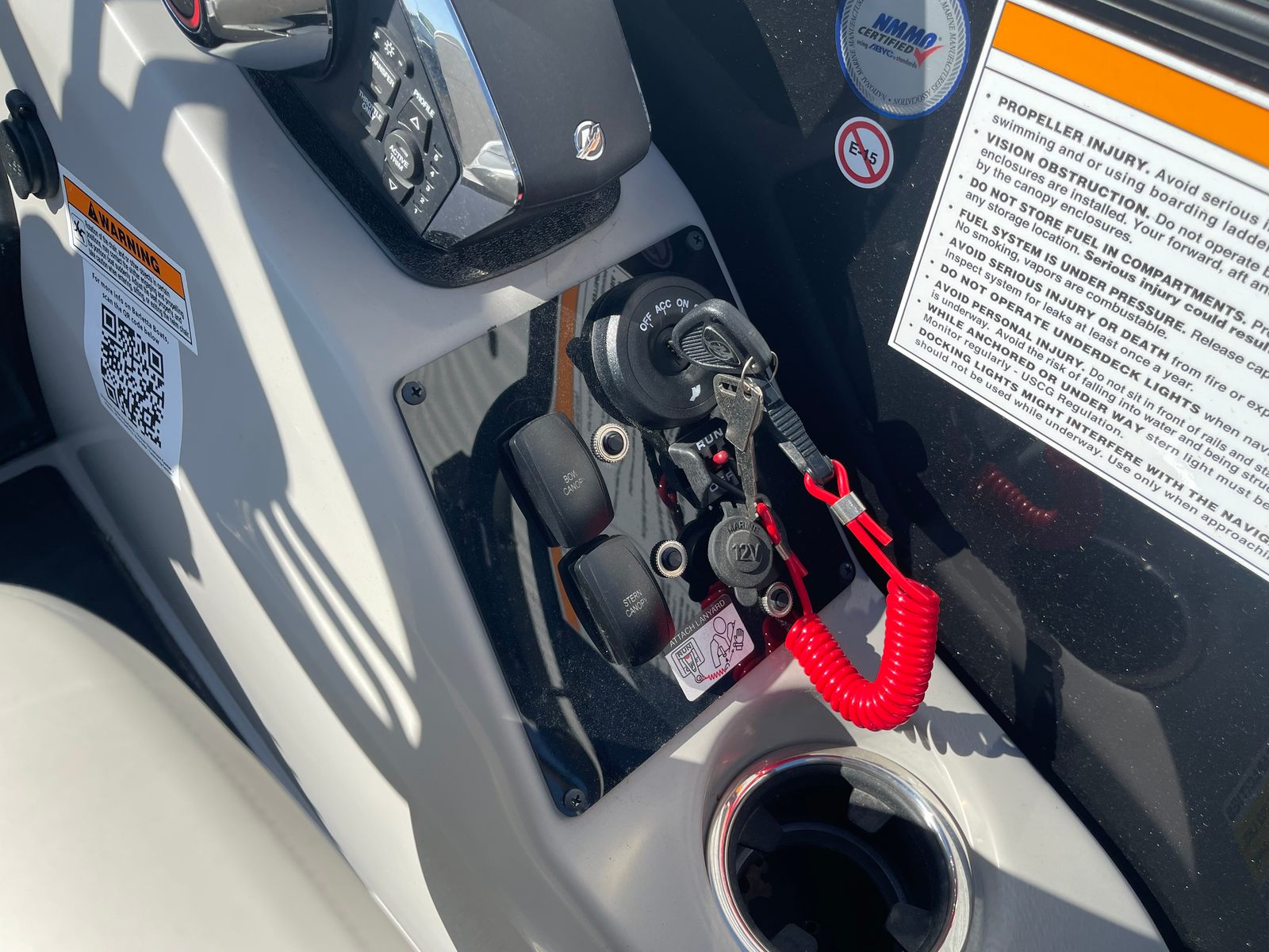 Powering the Barletta Cabrio C24CC is a robust Mercury (D) 250L Verado V8 engine, delivering an impressive 250 horsepower. With only 1 engine hour, this pontoon is practically fresh from the factory, ensuring peak performance and reliability for years to come. The Mercury Digital DTS Pre-Rig for VERADO engines with Vessel Link ensures seamless integration and precise control, while the hydraulic and power assist steering make maneuvering effortless, even in tight spaces.The triple toon package with midship storage enhances stability and buoyancy, allowing for smooth rides even in choppier waters. Whether you’re cruising at a leisurely pace or picking up speed for watersports, the Cabrio C24CC offers a thrilling and responsive experience on the water.