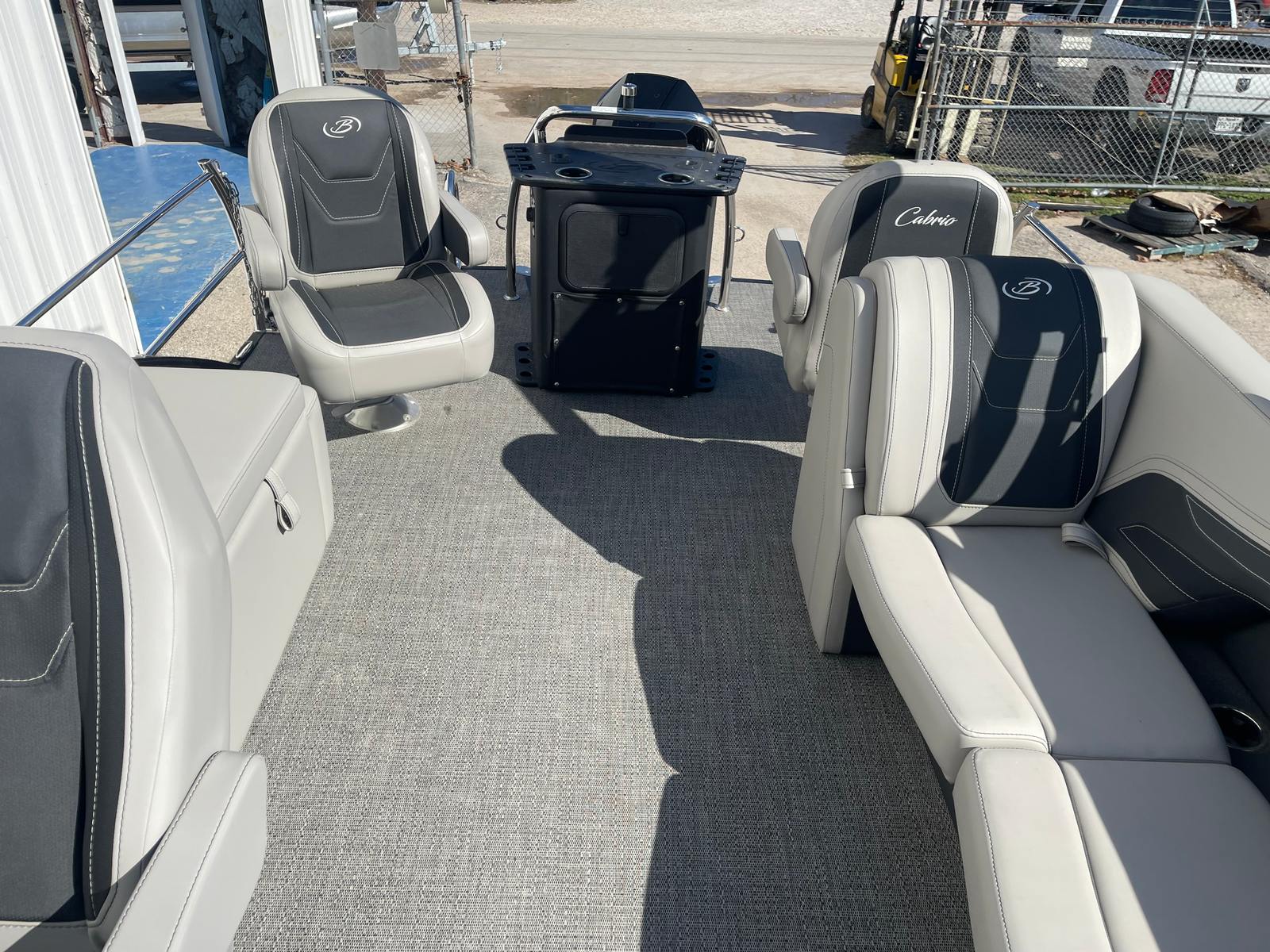 The 2026 Barletta Cabrio C24CC is a brand-new pontoon boat that measures an impressive 25.17 feet in length, offering ample space for relaxation, entertainment, and adventure. As a Barletta boat for sale, this model showcases the brand’s commitment to quality craftsmanship and attention to detail. The sleek Black Diamond railskin color, complemented by the Blackout Package Cabrio, gives the boat a modern and sophisticated look that is sure to turn heads at any marina or lake.Inside, the Marquesan Gray/Onyx furniture provides a luxurious and inviting atmosphere, while the Amore Gray flooring adds a touch of elegance and durability. Whether you’re hosting a lively gathering or seeking a peaceful escape, the Cabrio C24CC offers the perfect setting for every occasion.