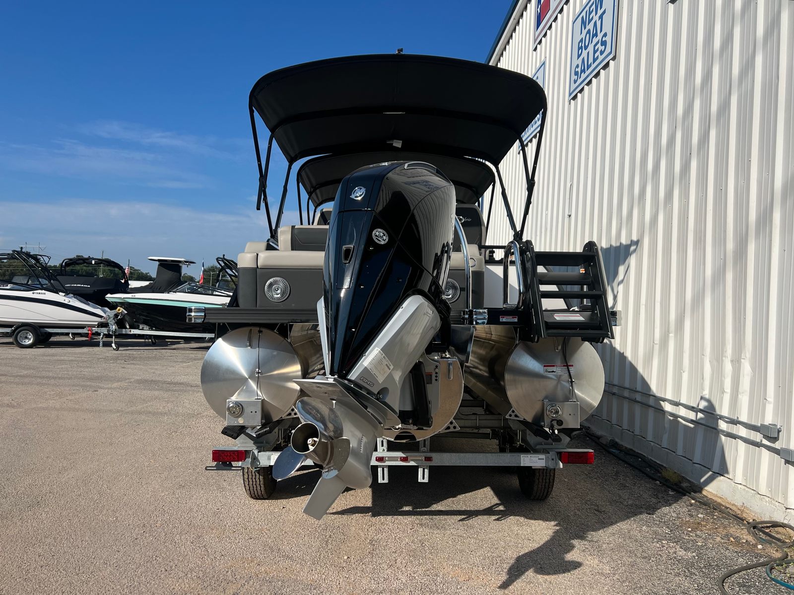 The Barletta Cabrio C24UC is packed with special features that set it apart from other pontoon boats for sale. The Black Diamond Railskin with Winter White accent and Blackout Package Cabrio create a bold, modern look that turns heads at the marina. Inside, the Marquesan Gray/Onyx furniture provides plush seating and a refined atmosphere, while the Amore Gray flooring is both stylish and easy to maintain. The triple toon package with midship storage offers enhanced stability and extra space for gear, making it perfect for long days on the water. The Mercury 250L Verado V8 engine, paired with Mercury Digital DTS Pre-Rig and Vessel Link, ensures advanced digital control and connectivity. Hydraulic and power assist steering, digital gauges, and a stainless steel prop further enhance the boat’s performance and ease of use. The double bimini canvas provides generous shade, allowing you to relax comfortably even on the sunniest days.