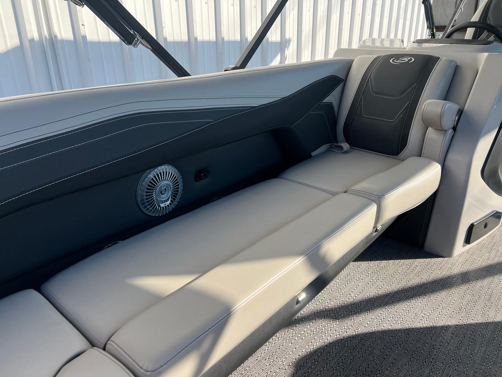 The Barletta Cabrio C24UC is designed with practicality in mind, making ownership a breeze. The midship storage offers convenient space for life jackets, water toys, and other gear, keeping the deck clutter-free. The hydraulic and power assist steering simplifies docking and maneuvering, even in tight spaces. Digital gauges provide real-time information, helping you monitor performance and fuel efficiency with ease. The durable flooring and high-quality furniture are built to withstand the rigors of boating, ensuring your investment remains in top condition for years to come. The double bimini canvas offers flexible shade options, making it easy to adapt to changing weather and keep everyone comfortable.