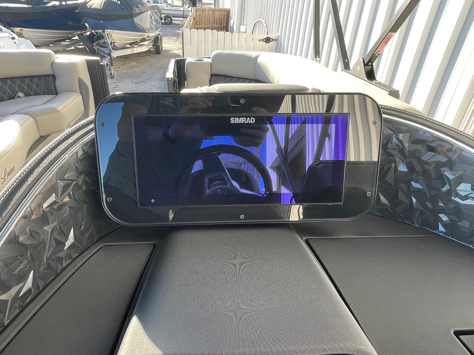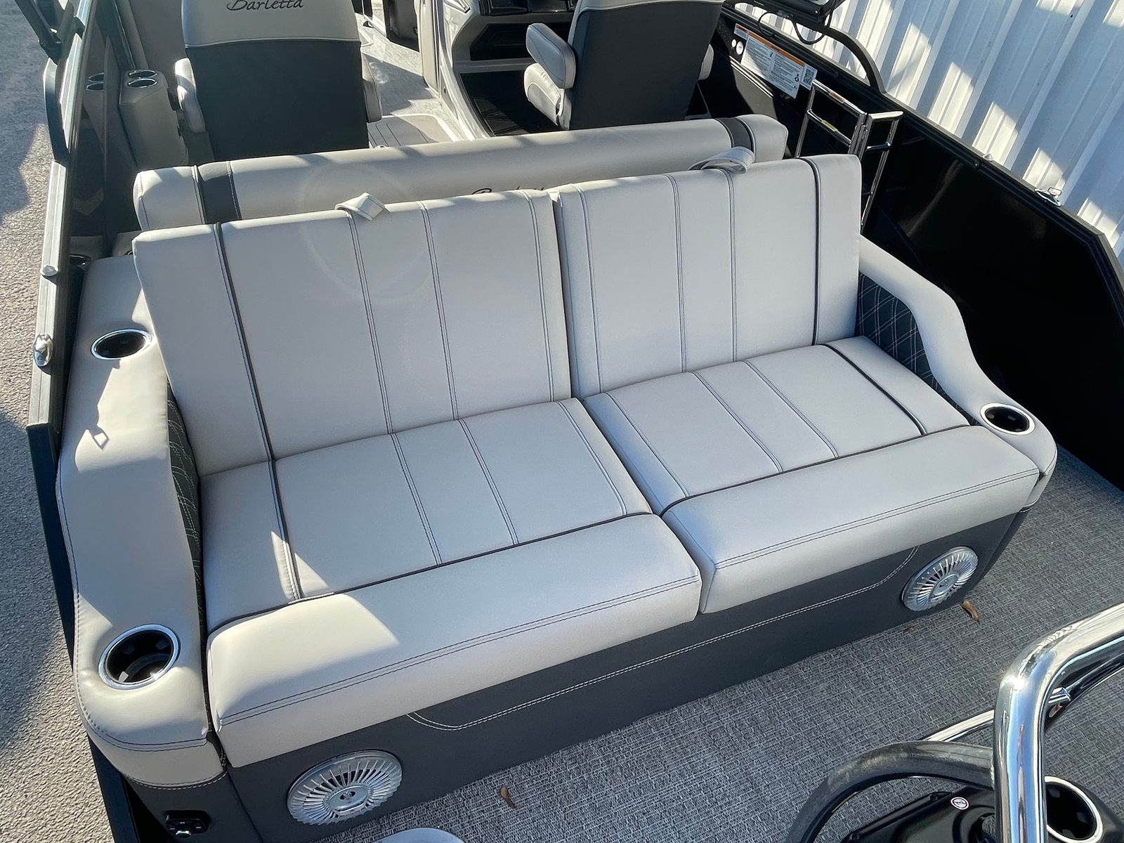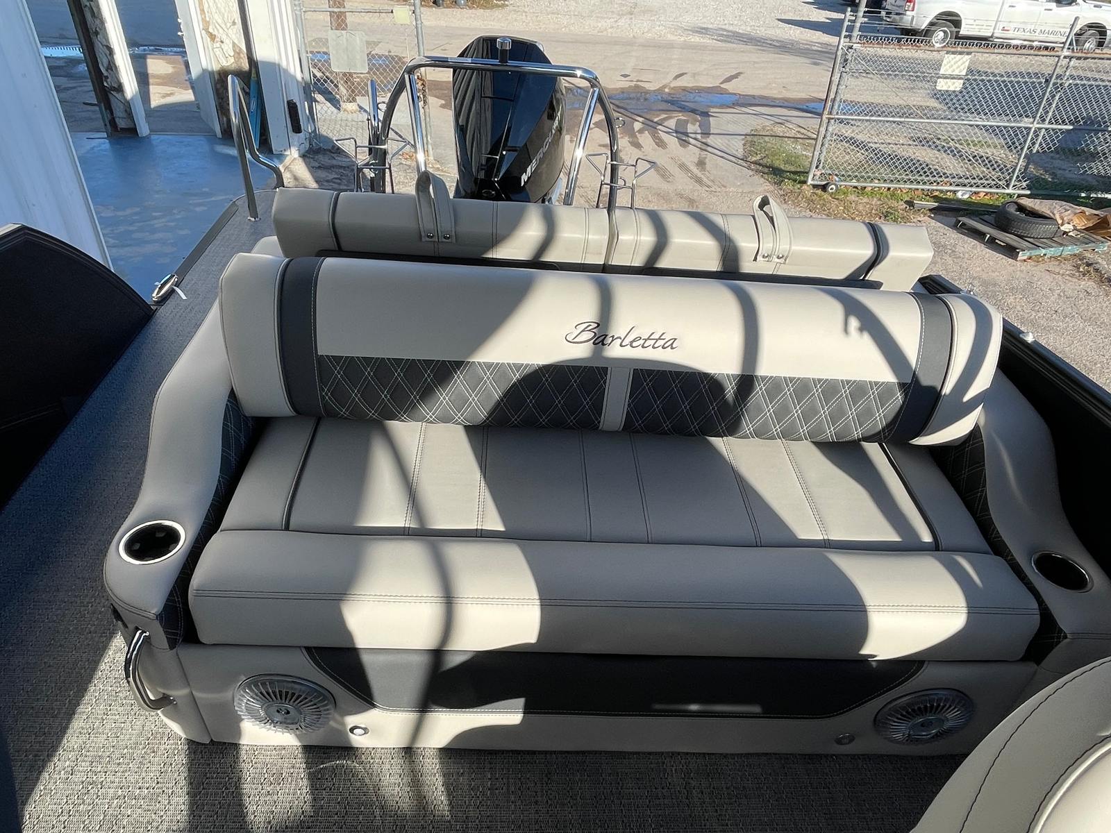 The 2026 Barletta Lusso L23U is a new 25.5-foot pontoon that commands attention both at the dock and on the open water. With its sleek lines and modern profile, this pontoon boat is a true head-turner. The Black Diamond sweep color and accent color create a bold, unified look, while the Blackout Package Lusso railskin package adds a touch of sophistication and exclusivity. Every inch of this vessel has been thoughtfully designed to maximize comfort, style, and functionality, making it an ideal choice for discerning boaters looking for a Barletta boat for sale that stands out from the crowd.