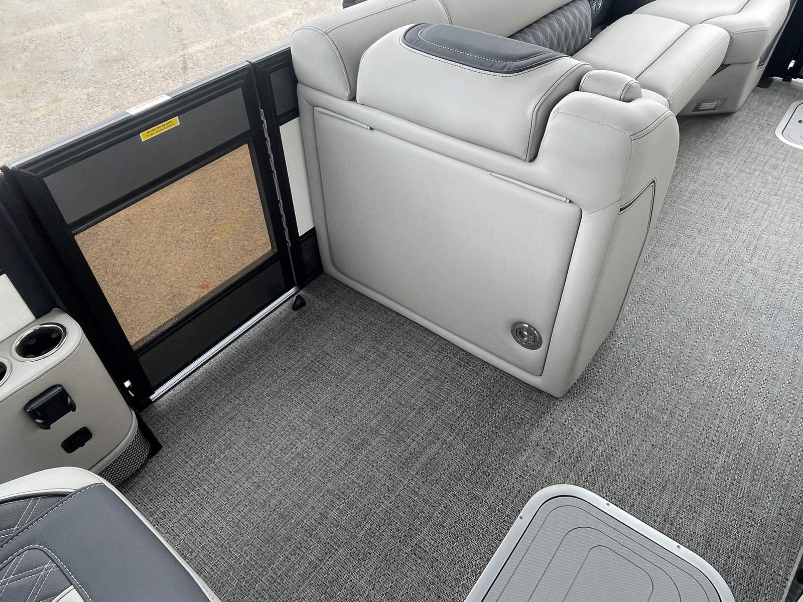 The 2025 Barletta Lusso L25UC is designed to impress from every angle, boasting a suite of special features that set it apart from other pontoon boats for sale. The exterior showcases a sophisticated Sweep Color in Gray Moonstone, complemented by a striking White Opal accent color. The Blackout Package Lusso railskin adds a bold, modern touch, while the Metal Jacket Protectant ensures the exterior remains pristine and protected against the elements.Step aboard and you are greeted by luxurious Marquesan Gray furniture with Charcoal accents, creating a refined and inviting atmosphere. The Amore Gray flooring not only enhances the aesthetic appeal but also provides comfort and durability underfoot. For those who love to entertain or simply relax in the shade, the double bimini setup, including an additional power bimini, offers versatile sun protection and comfort throughout the day.