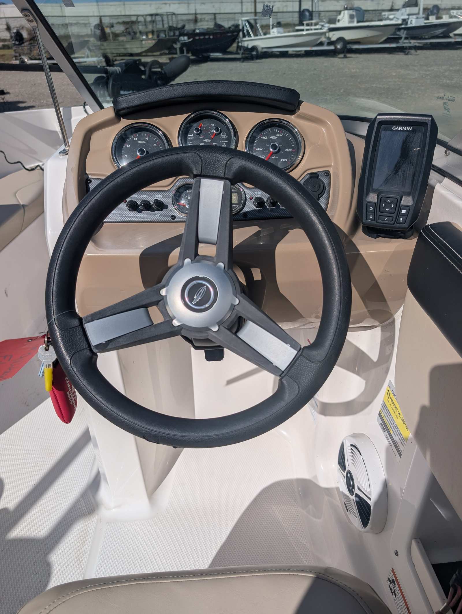The Chaparral 19 H2O S&F comes loaded with special features that enhance its versatility and enjoyment. The included bimini offers shade and protection from the sun, allowing you to stay comfortable during long days on the water. The Bluetooth stereo system lets you set the perfect soundtrack for your adventures, whether you’re relaxing with friends or celebrating a big catch.For fishing enthusiasts, this bowrider is equipped with a trolling motor, livewells, and dedicated fishing chairs, making it easy to switch from cruising to casting in seconds. The Lowrance electronics package provides advanced navigation and fish-finding capabilities, giving you an edge when exploring new waters or tracking down your next trophy catch.Transporting and storing your Chaparral boat for sale is a breeze thanks to the tandem axle trailer, which offers stability and convenience for towing to your favorite launch sites. With these features, the Chaparral 19 H2O S&F is ready for any adventure you have in mind.