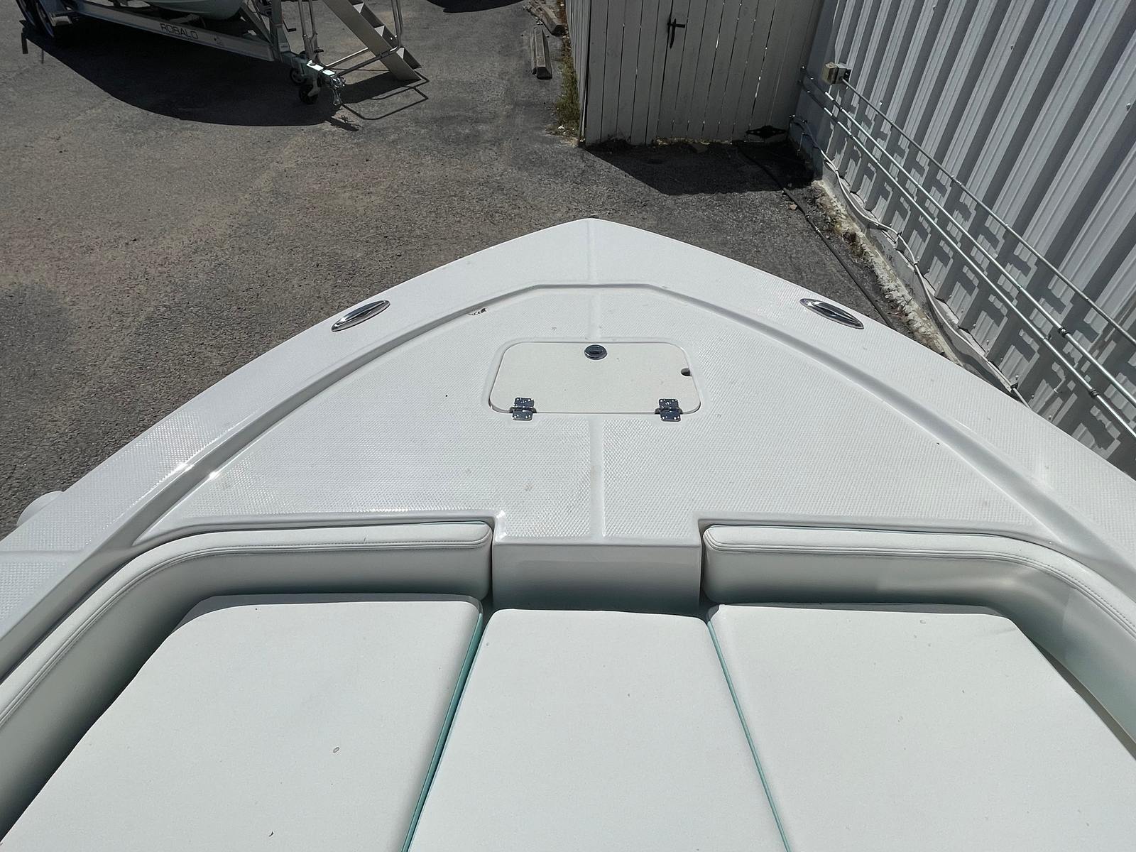 Under the hood, the Robalo 206 Cayman DLX is powered by a robust Yamaha Four Stroke F150XC engine, delivering an impressive 150 horsepower. This single-engine setup provides ample power for swift acceleration and effortless maneuvering, while the integrated hydraulic steering ensures precise control, whether you're navigating tight turns or cruising at high speeds. The Yamaha F150XC is renowned for its reliability and efficiency, making this Robalo boat for sale a dependable choice for all your boating adventures.