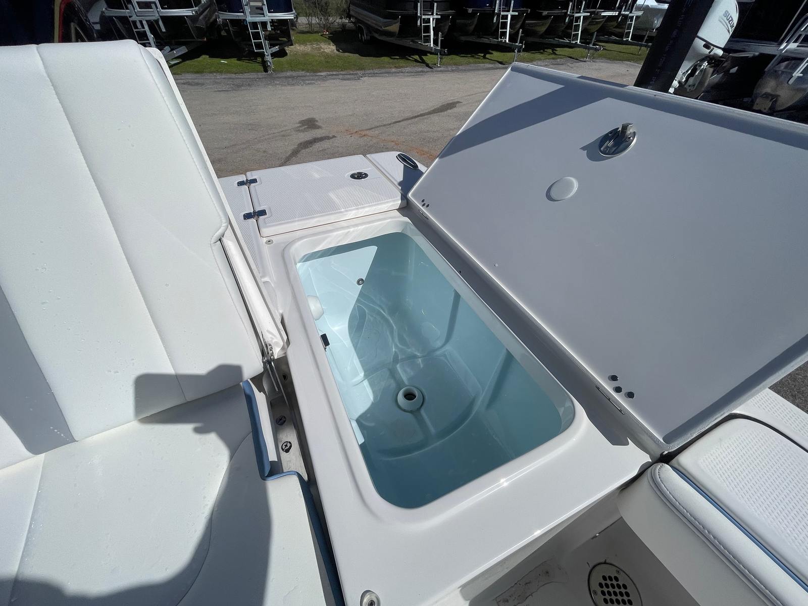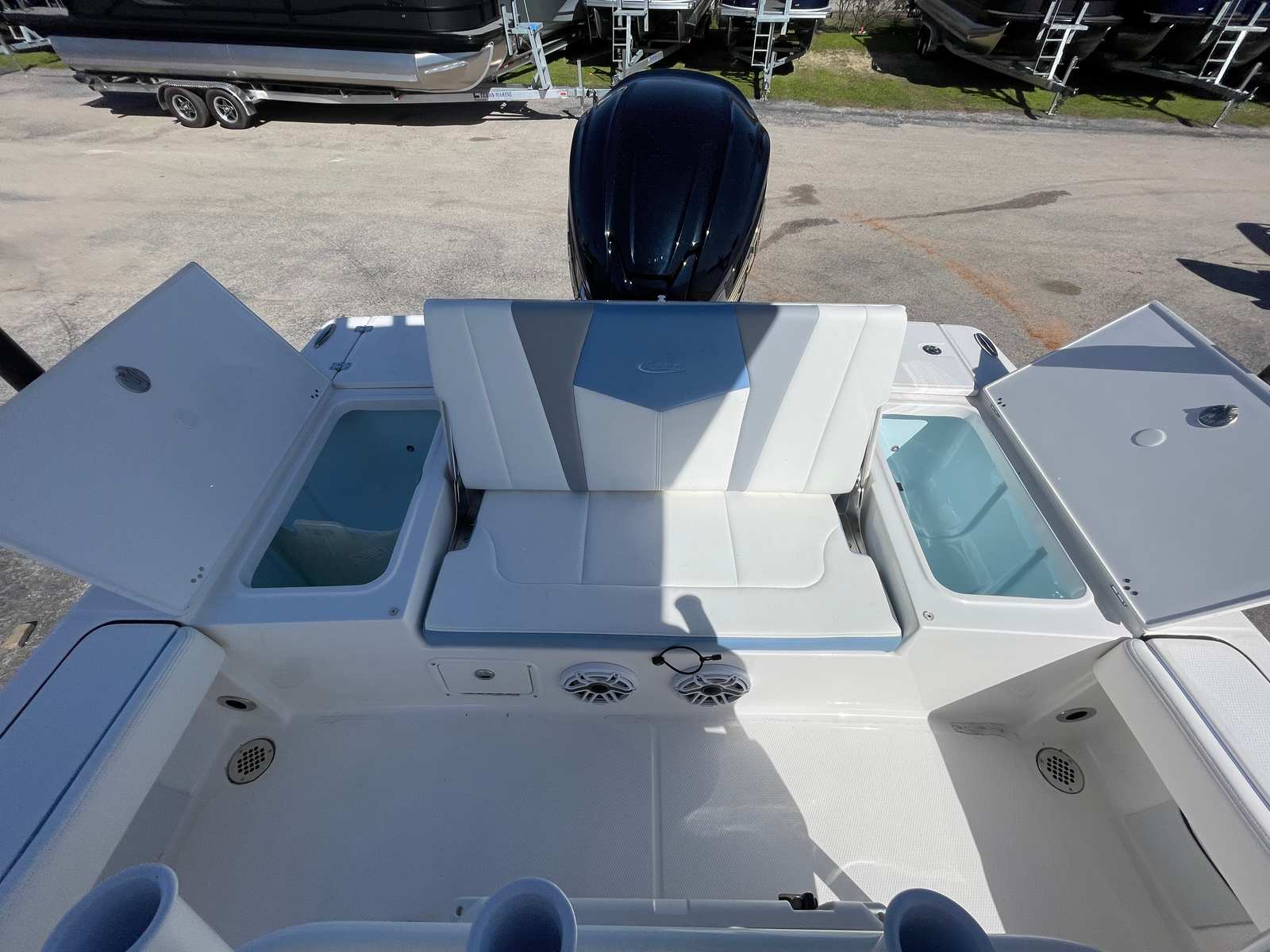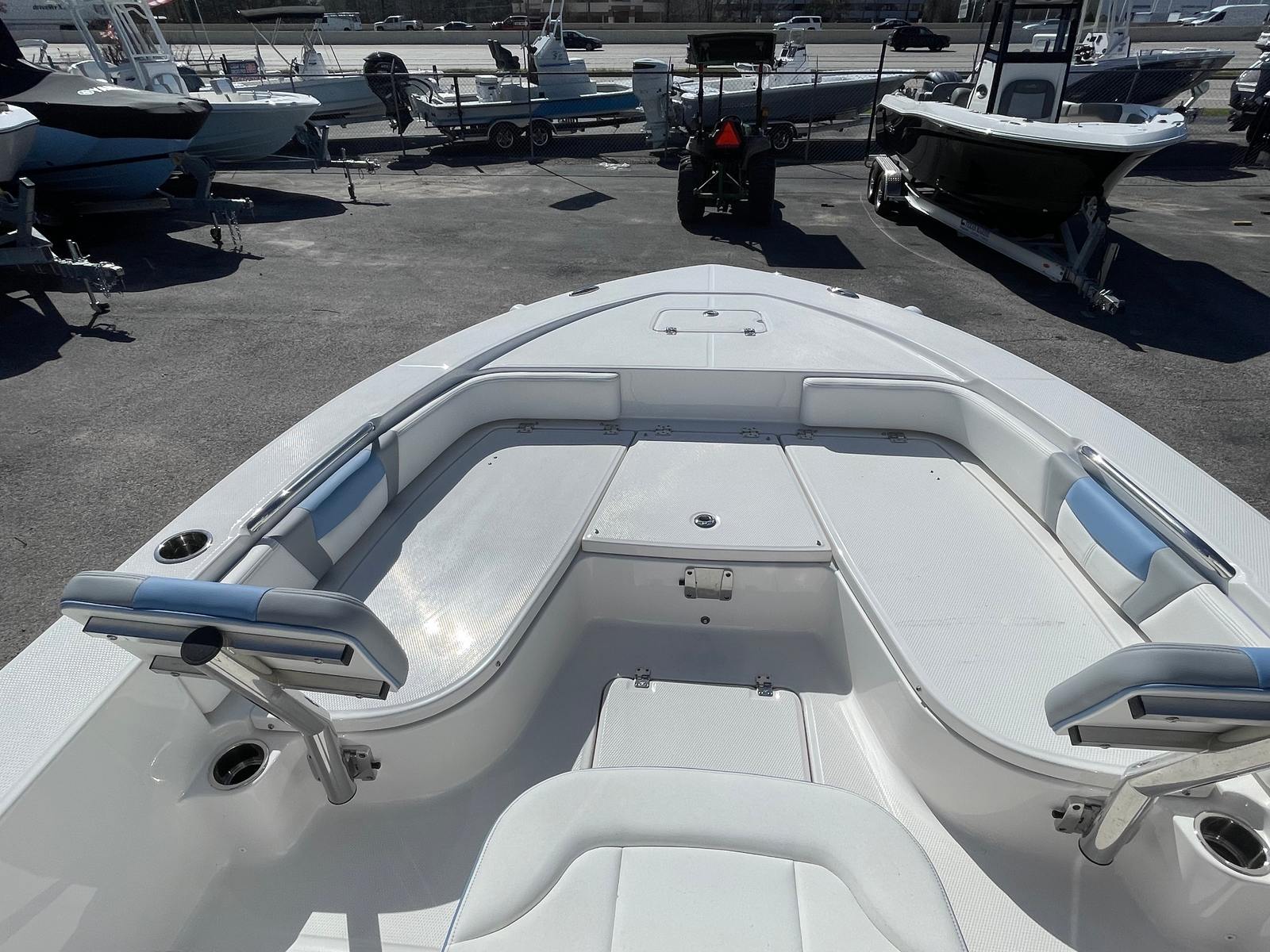The Robalo 226 Cayman DLX is designed with practicality in mind, making ownership as enjoyable as it is exciting. The dual battery setup ensures you never have to worry about running out of power, even on extended trips. The trim tabs with indicators allow for precise adjustments, making docking and maneuvering in tight spaces a breeze. The solid hull construction not only enhances performance but also simplifies maintenance, so you can spend more time on the water and less time on upkeep. The boat’s manageable 22.5-foot length strikes the perfect balance between spaciousness and ease of handling, making it ideal for both seasoned boaters and newcomers alike.