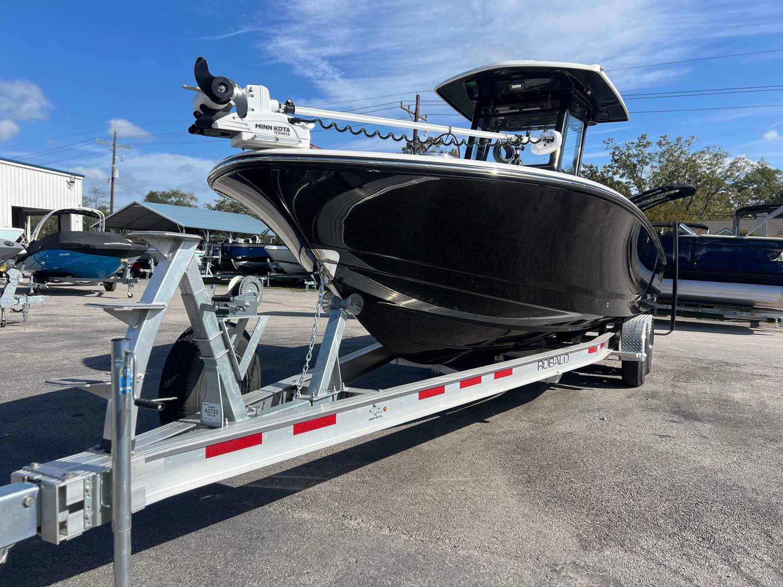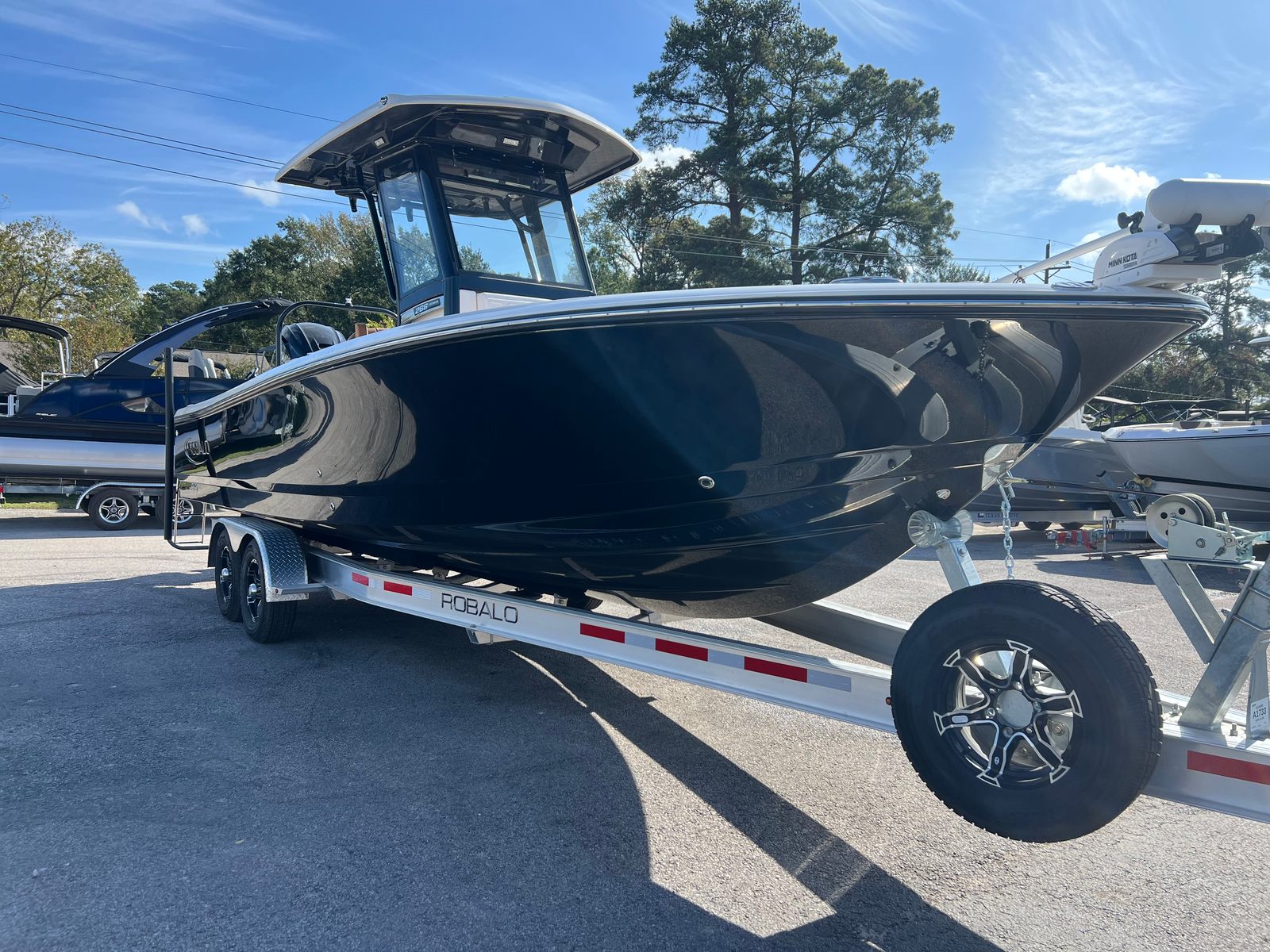 The 2025 Robalo 266 Cayman is a 26.5-foot bay boat that commands attention with its bold lines and modern aesthetics. Built for both serious anglers and recreational boaters, this new bay boat offers a spacious layout and innovative features that make every outing memorable. The deepwater black gel coat gives the hull a striking, sophisticated look, while the Cayenne cockpit interior adds a touch of luxury and warmth. The black canvas and matching accessories further enhance the boat’s contemporary appeal, making it a true head-turner at any marina or dock.