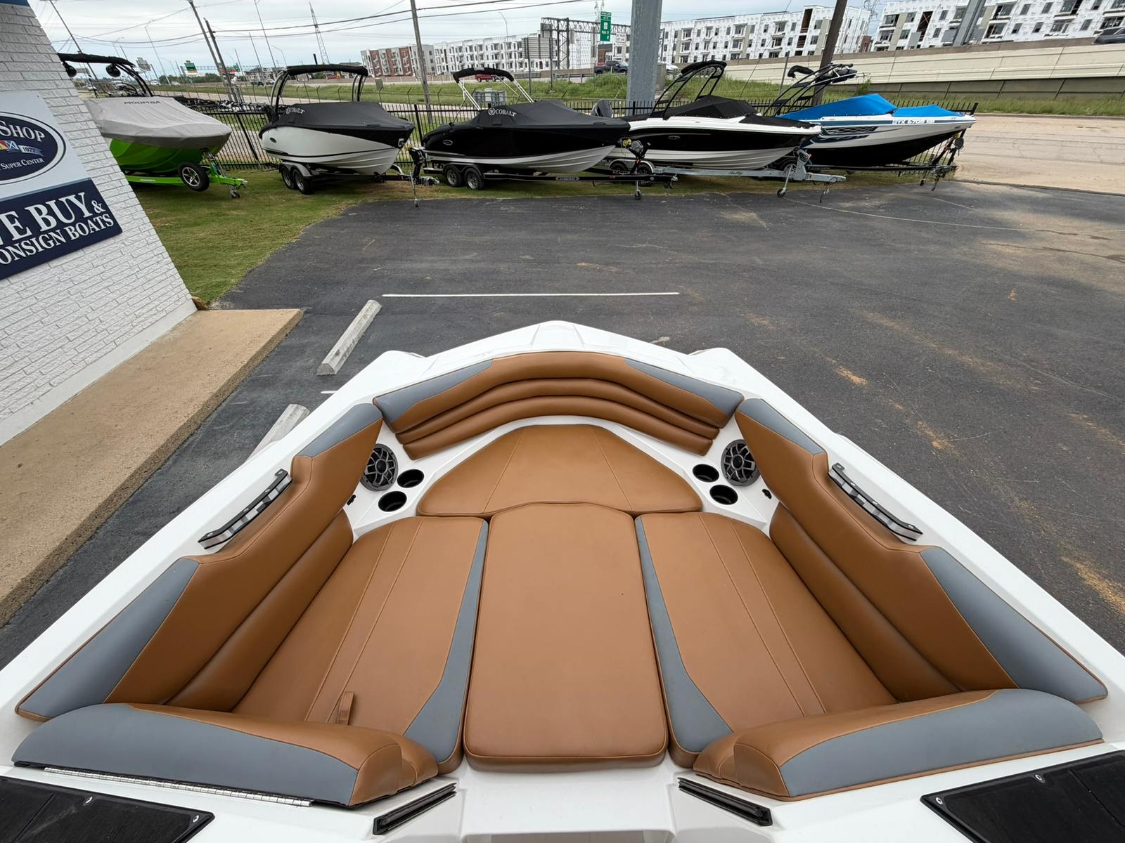 Now available at our Used Boat Super Center in Lewisville, this 2020 Axis A24 is a large, surf-focused wake boat known for producing massive waves and offering incredible value. Finished in a clean all-white gelcoat with a brown interior, this A24 is powered by the Monsoon M5 direct-injected V8 producing 350 horsepower with only 126 hours.