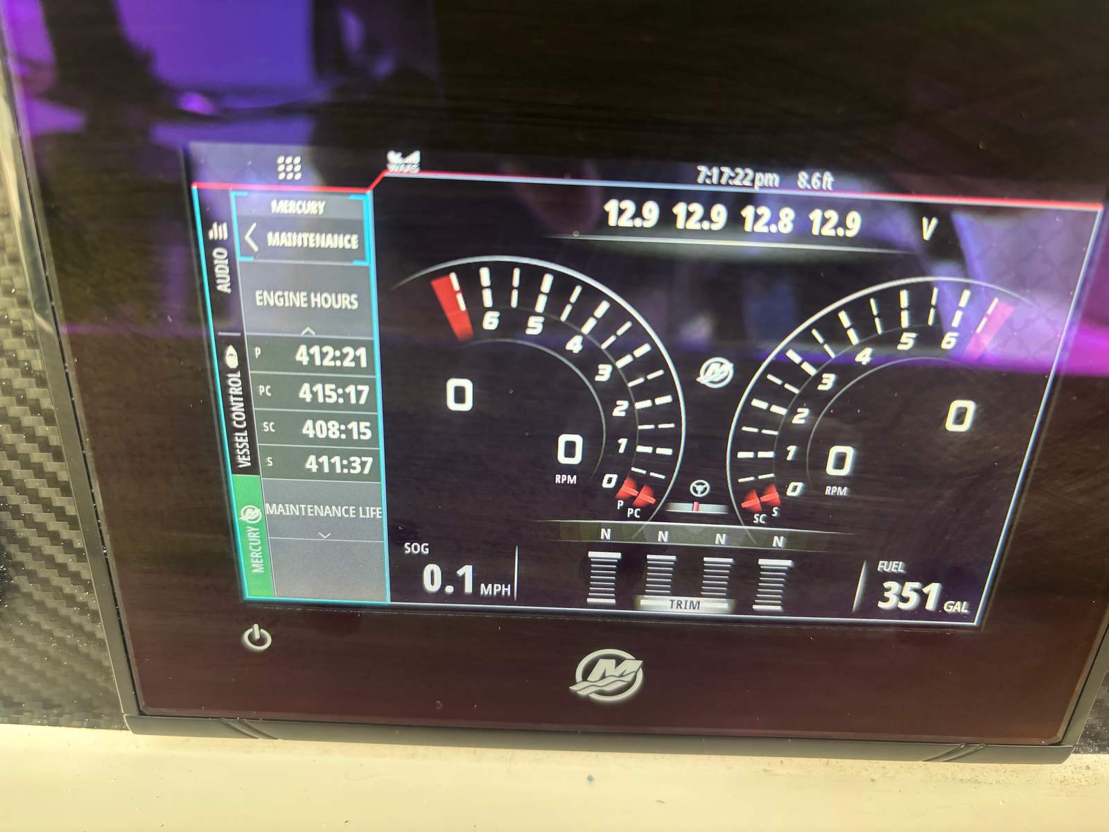 Quad Mercury v8 300 with 420 Hours. Lift Kept Vessel