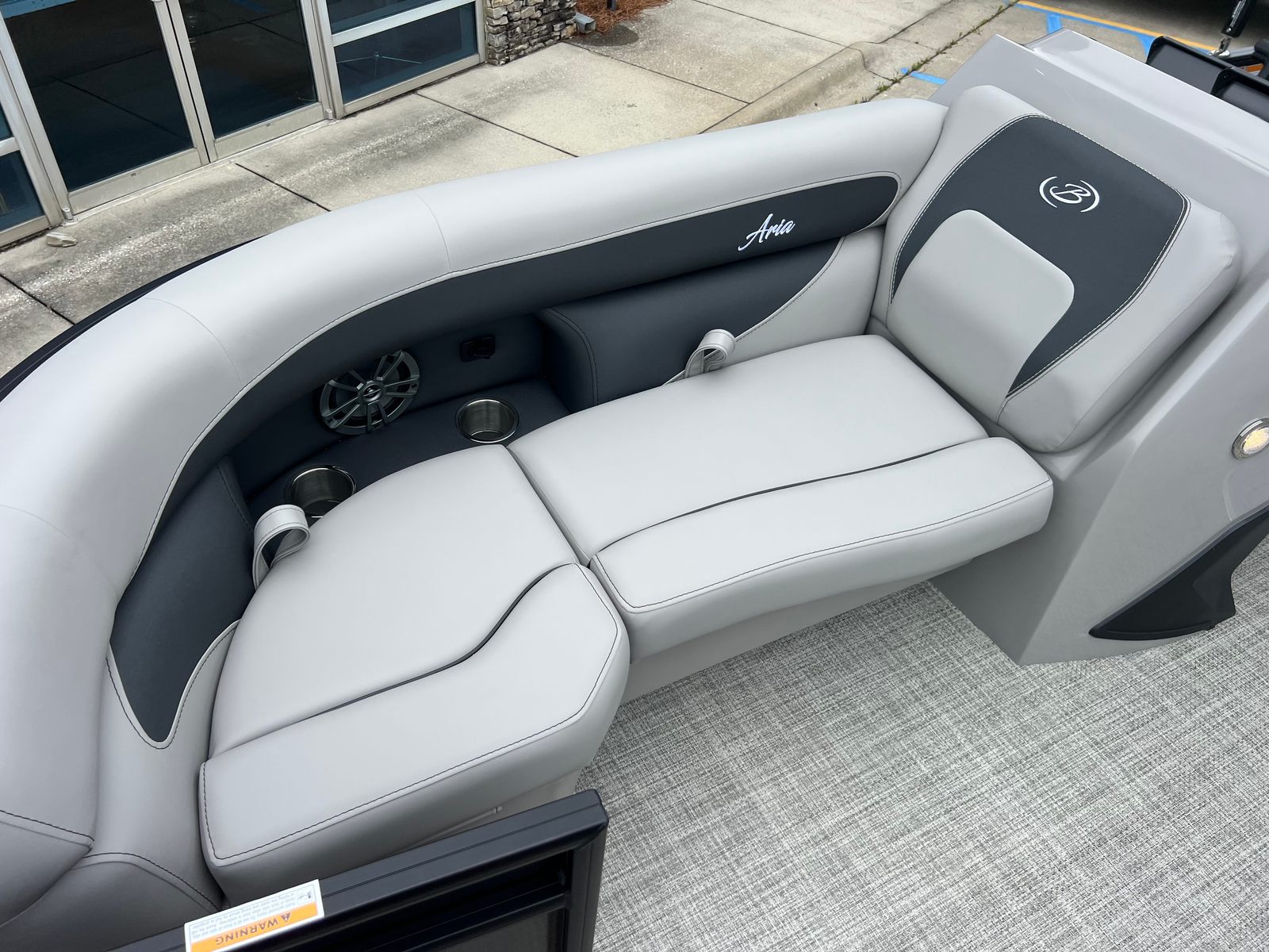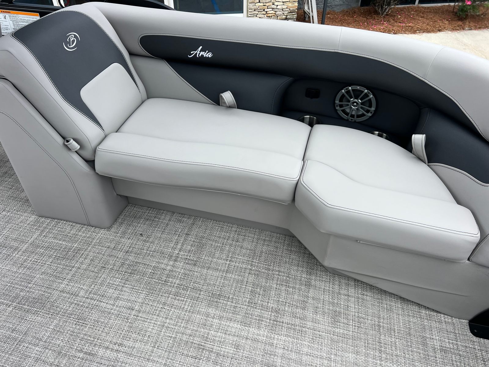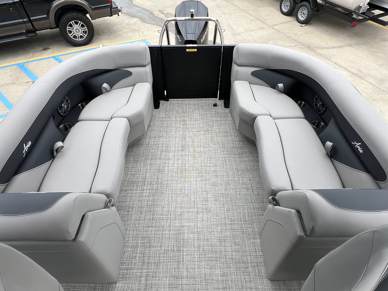 The 2026 Barletta Aria A22QC-Platinum is a new pontoon boat measuring an impressive 21.83 feet in length, offering ample space for family and friends to relax and enjoy the water. Barletta is renowned for its commitment to quality, and the Aria A22QC-Platinum is no exception. Its sleek lines, modern railskin color in Black Diamond, and the exclusive Aria Blackout Package give this pontoon a bold, contemporary look that is sure to turn heads at any marina or lake.