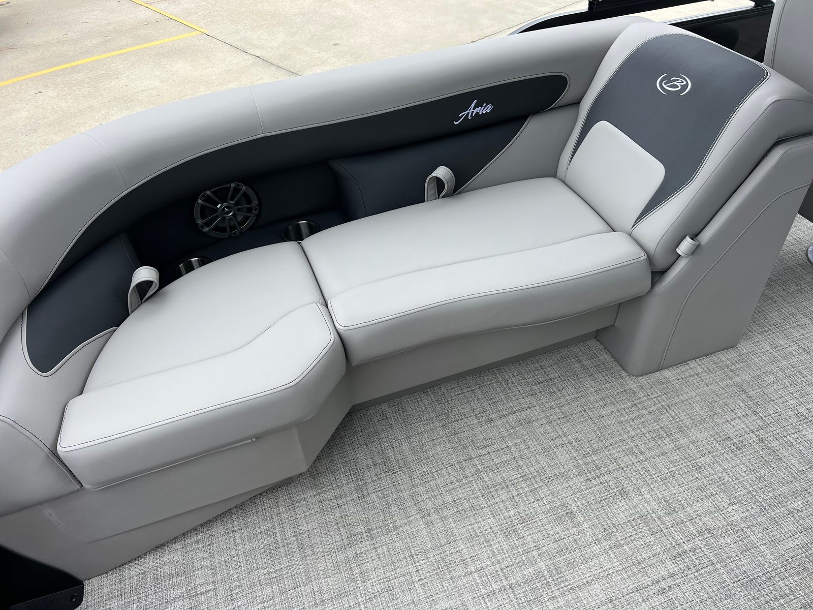 Owning the Barletta Aria A22QC-Platinum means embracing a lifestyle of comfort, fun, and social connection. The spacious layout is perfect for hosting gatherings, whether you are enjoying a sunset cruise with friends or a family day filled with laughter and water activities. The plush Tempest Gray seating invites you to relax in style, while the Alpine Gray flooring is both attractive and easy to maintain.The powerful Mercury 200L FourStroke engine ensures you can enjoy a variety of activities, from leisurely cruises to more spirited adventures. The Aria Triple Toon Package enhances stability, making the ride smooth and enjoyable for everyone on board. With the in-floor midship storage, you can bring along everything you need for a full day of fun without sacrificing space or comfort.