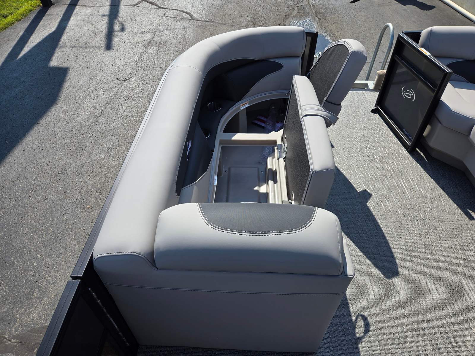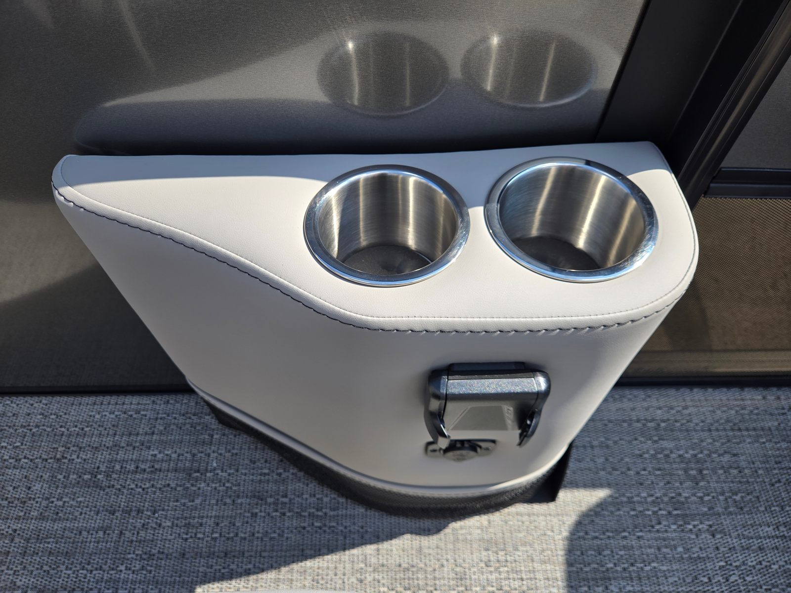 The Barletta Aria A22QC-Platinum is as practical as it is stylish. Its thoughtfully designed layout makes storage and organization a breeze, allowing you to keep gear, snacks, and personal items neatly stowed away. The ease of docking and maneuvering, thanks to the power assist steering and responsive engine, means you can confidently approach marinas, docks, and tight spaces without stress. The efficient Mercury FourStroke engine is engineered for optimal fuel economy, helping you spend more time on the water and less time refueling.Maintenance is straightforward, with durable materials and finishes that are built to withstand the elements. The sturdy construction and triple toon package provide added peace of mind, ensuring your investment remains in top condition for years to come. Whether you’re a seasoned boater or new to pontoon ownership, the Aria A22QC-Platinum offers a hassle-free experience that lets you focus on enjoying every moment.