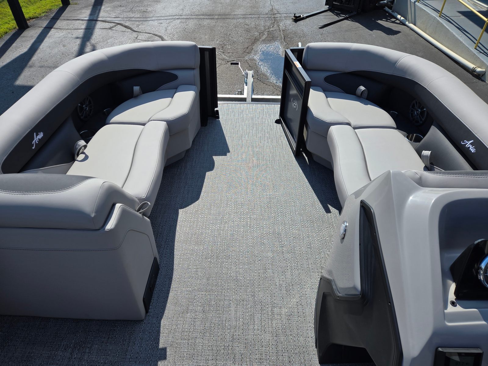 The 2026 Barletta Aria A22QC-Platinum is a brand-new pontoon boat, measuring just over 21 feet in length. Its sleek profile and modern design make it a standout choice for those who appreciate both aesthetics and functionality. The Aria A22QC-Platinum is crafted with meticulous attention to detail, ensuring every journey is comfortable and enjoyable. With its spacious deck layout, this pontoon provides ample room for passengers to relax, socialize, and soak up the sun, making it an ideal vessel for creating lasting memories on the water.