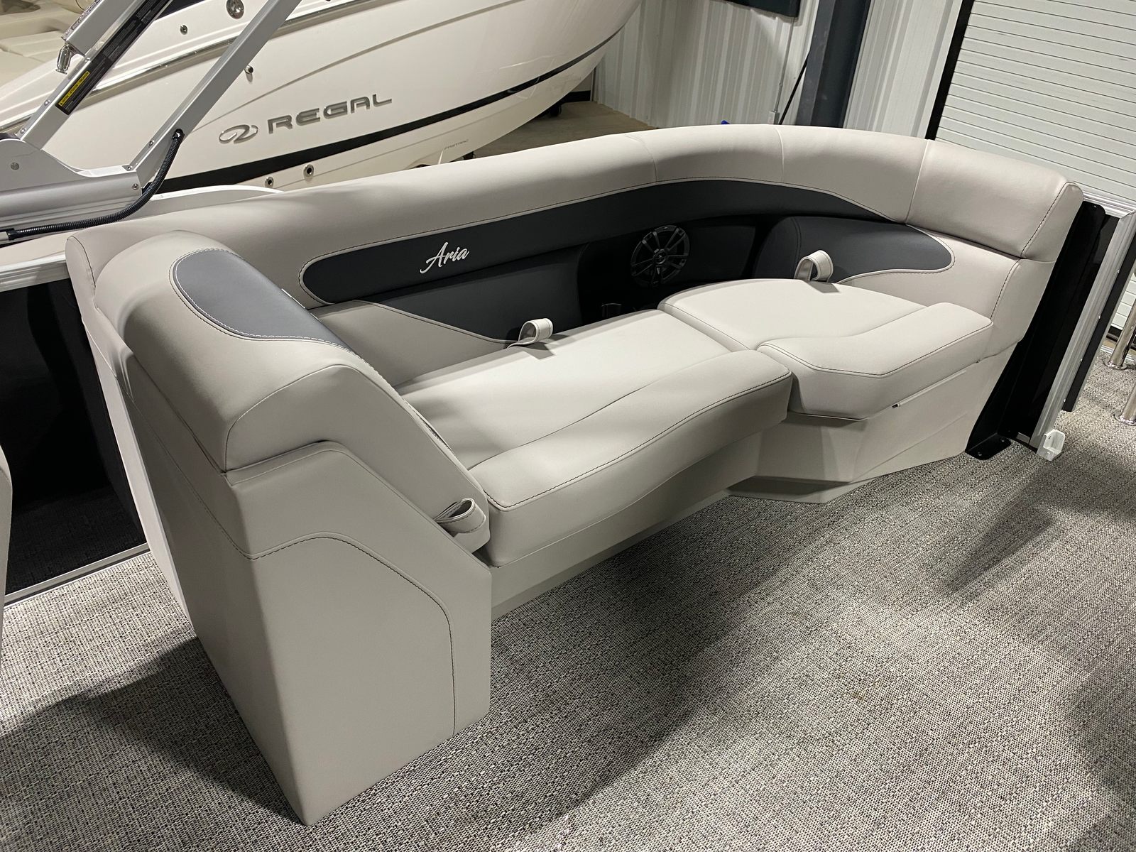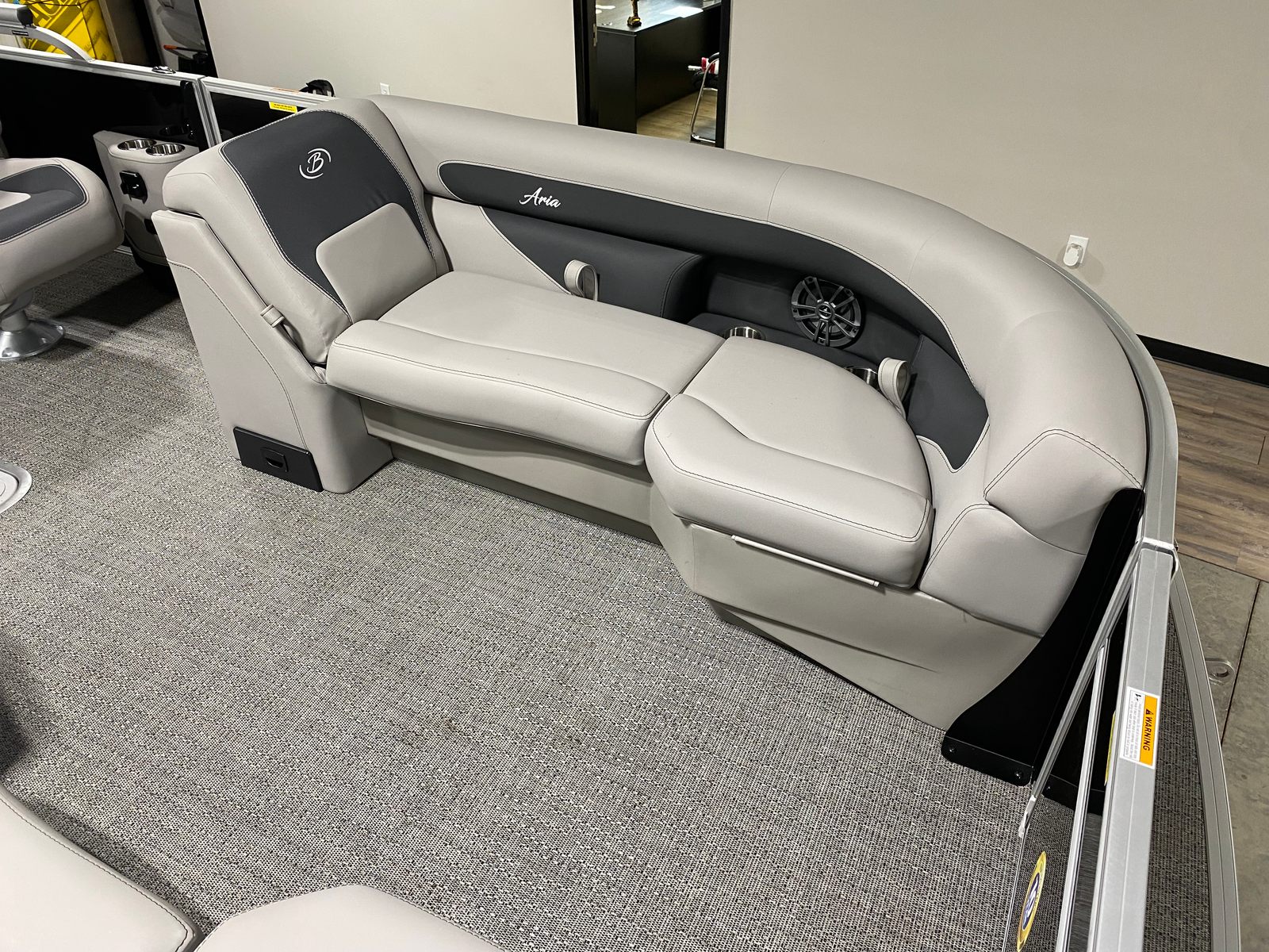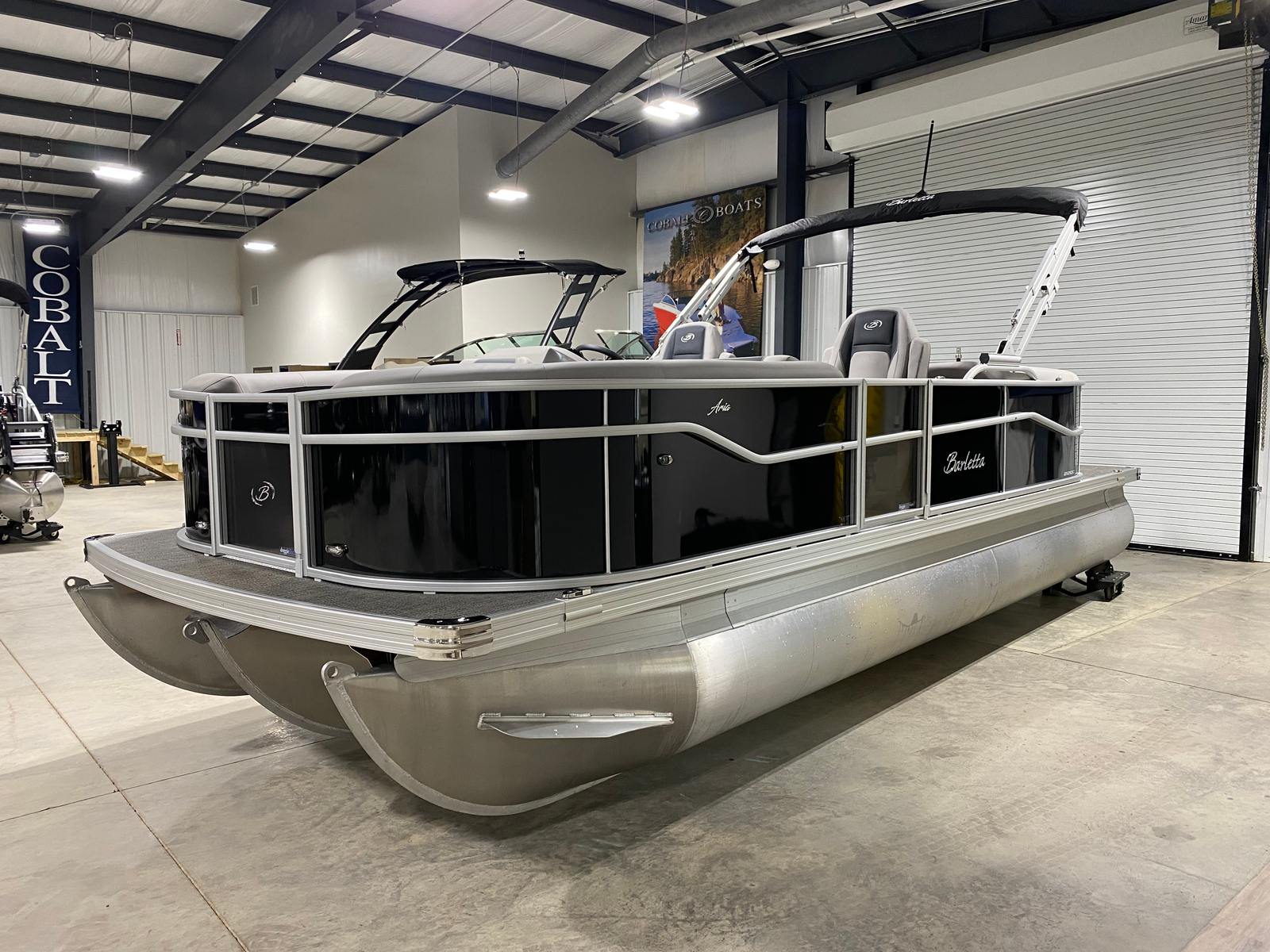 This Barletta pontoon boat is packed with features designed to maximize comfort, convenience, and fun. The Railskin Color Aria in Black Diamond gives the boat a bold, elegant look, while the Tempest Gray furniture offers plush seating for all your guests. The Amore Gray flooring is not only visually appealing but also durable and easy to maintain, ensuring your boat stays looking pristine season after season.The Triple Toon Package Aria provides added buoyancy and stability, making this pontoon boat ideal for a variety of water conditions. The in-floor midship storage offers ample space to stow away gear, water toys, and personal items, keeping the deck clutter-free and organized. The Eagle 5 GPS system ensures you always know your location and can navigate with confidence, whether you are exploring new waters or returning to your favorite spots.A stainless steel flag pole with an American flag adds a patriotic touch and enhances the boat’s overall aesthetic. The Drop Ship Engine - NO PROP configuration allows for customization based on your specific needs and preferences.