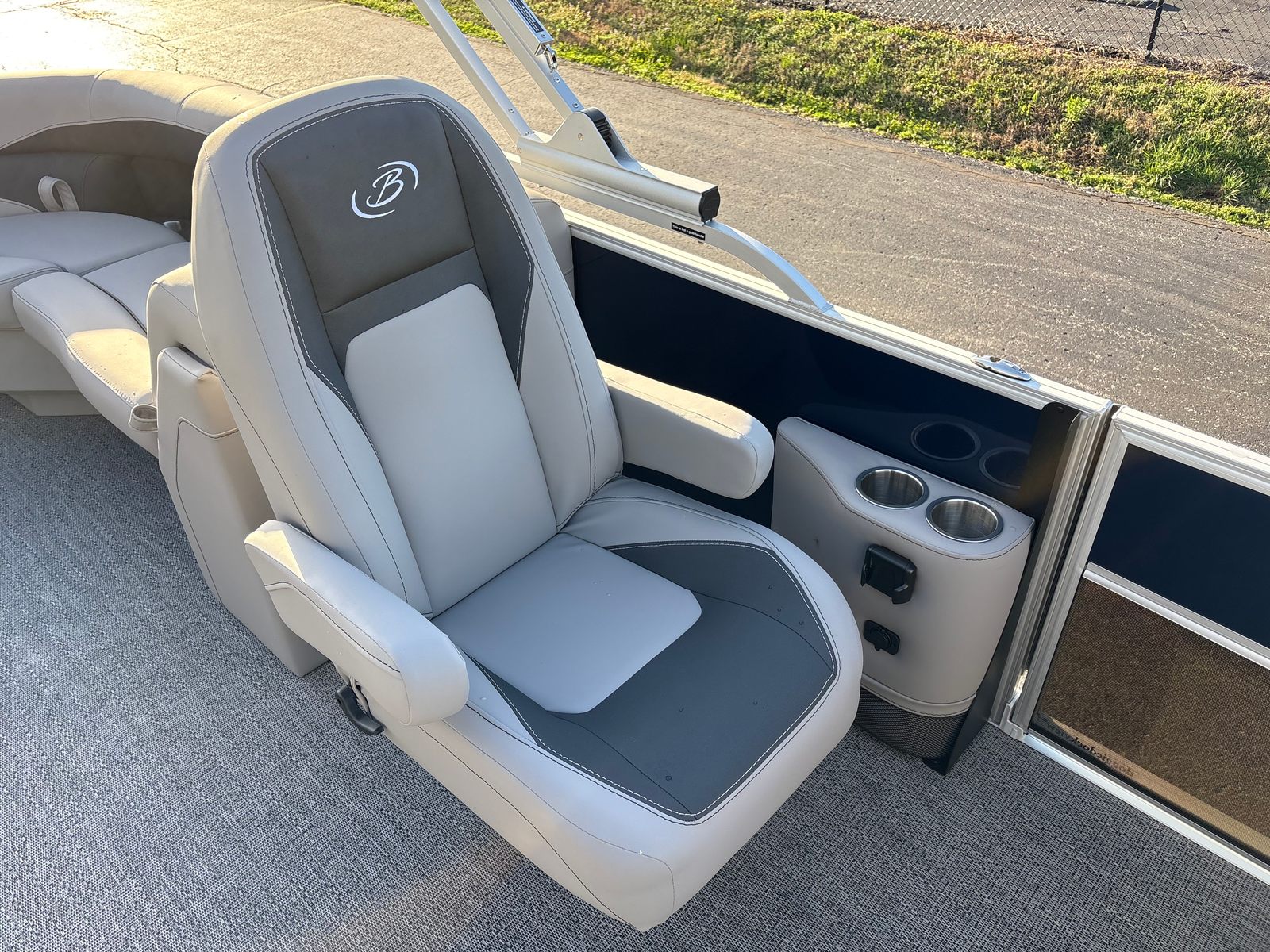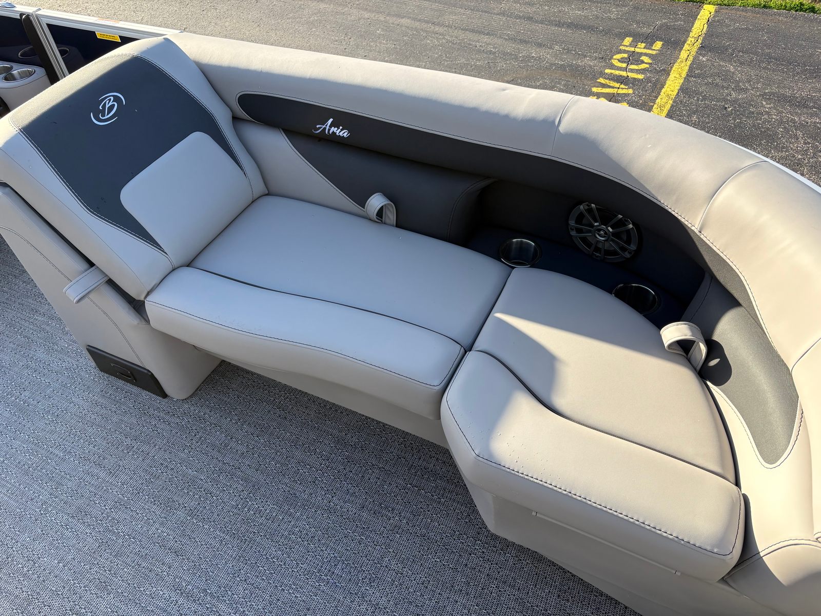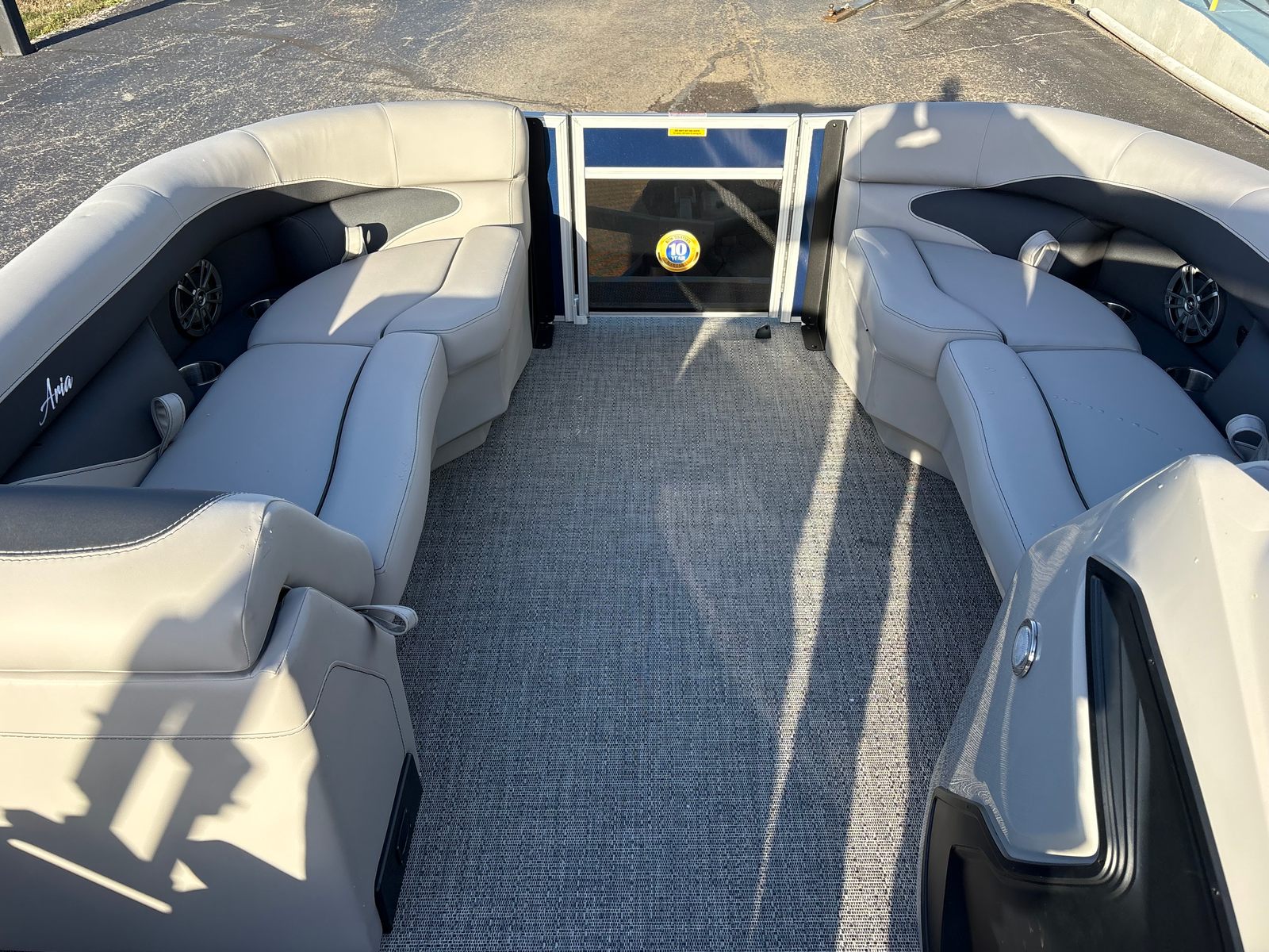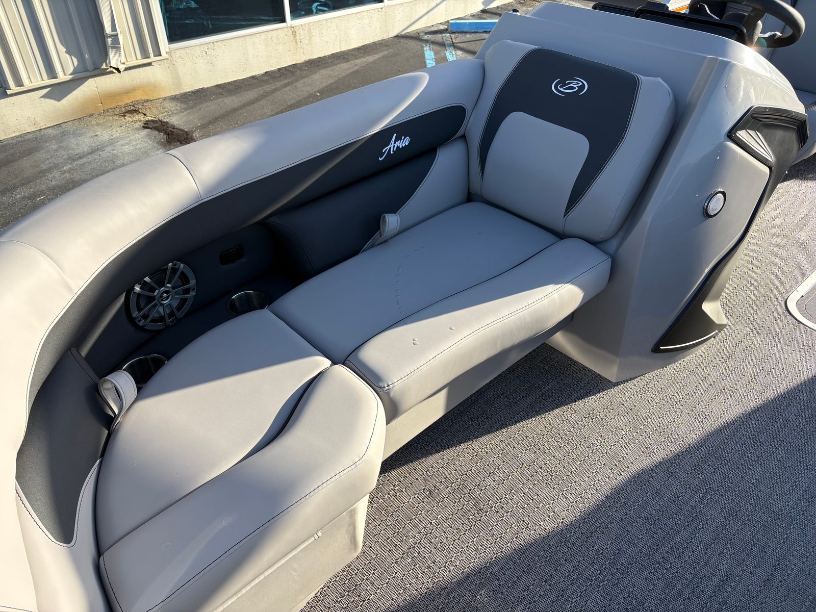 Owning the Barletta Aria A22QC means embracing a lifestyle of leisure, excitement, and connection. This pontoon boat is designed for maximum comfort, with spacious seating areas that invite you to relax and socialize. The premium furniture and flooring create a welcoming environment for guests, making every outing feel like a special occasion.The powerful engine and advanced triple toon design guarantee a smooth, stable ride, whether you’re cruising at sunset or enjoying water sports. The generous storage options allow you to bring along everything you need for a day on the water, while the onboard battery charger keeps your electronics powered and ready. With its eye-catching Blue Sapphire railskin and elegant flag pole, this pontoon is sure to turn heads wherever you go.