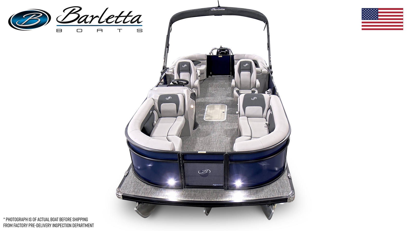 The Barletta Aria A22QC is packed with features designed to enhance your time on the water. The helm is equipped with the advanced Eagle 5 GPS, providing intuitive navigation and essential information at your fingertips. The flooring features luxurious Amore Gray material, offering both style and comfort underfoot. The Tempest Gray furniture invites you and your guests to relax in plush seating, while the Bohemian Blue Railskin Color Aria adds a touch of sophistication to the boat's exterior.For those who appreciate thoughtful details, the Blackout Package Aria delivers a bold, modern look with its sleek railskin packages. The stainless steel flag pole with an American flag adds a patriotic flair, making your boat stand out wherever you go. The in-floor midship storage (requires triple toon) provides ample space for stowing gear, water toys, and personal items, keeping the deck clutter-free and organized.