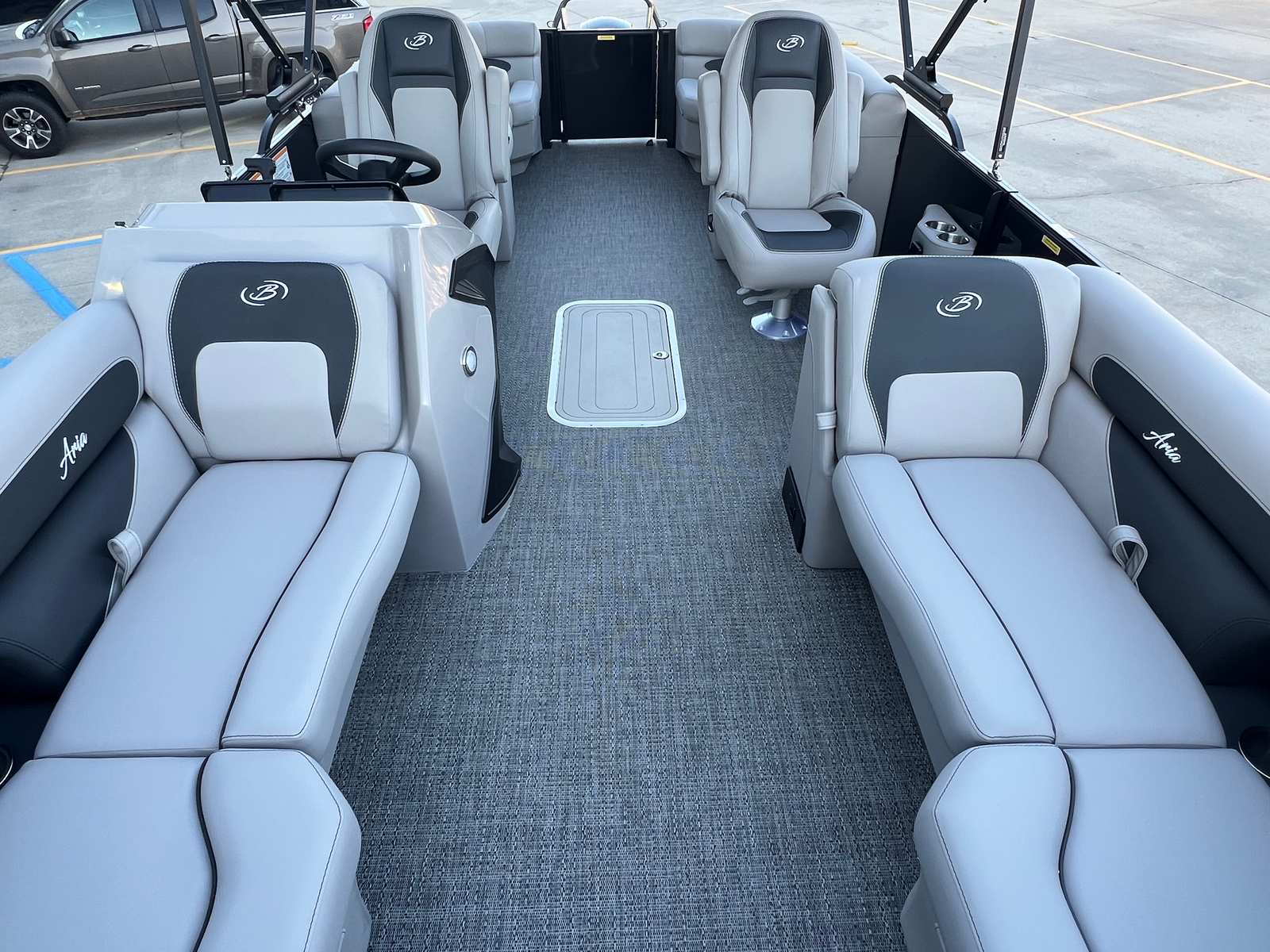 In summary, the 2026 Barletta Aria A22QC is a standout pontoon boat for sale that combines cutting-edge design, exceptional performance, and a host of premium features. From its striking Black Diamond Railskin and Blackout Package to its plush Tempest Gray furniture and innovative Triple Toon Package Aria, every detail is crafted to enhance your boating experience. The powerful Mercury 150L Four Stroke engine, in-floor midship storage, and practical playpen cover add to the boat’s appeal, making it a smart investment for anyone seeking a Barletta boat for sale.If you are ready to elevate your time on the water and create lasting memories with family and friends, the Barletta Aria A22QC is the perfect choice. Don’t miss your chance to own this exceptional pontoon boat – contact your local dealer today to learn more and schedule a viewing.