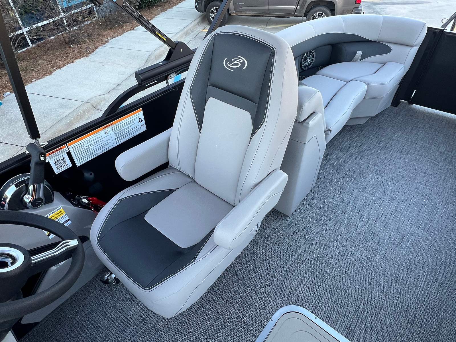 The Barletta Aria A22QC is loaded with features designed to maximize your comfort and enjoyment on the water. The Black Diamond Railskin and Blackout Package Aria give the boat a striking, contemporary look that turns heads at every dock. The Tempest Gray furniture offers plush seating for you and your guests, while the Amore Gray flooring is both durable and easy to clean, making maintenance a breeze.One of the standout features is the Triple Toon Package Aria, which provides enhanced buoyancy and stability, allowing for a smoother and more secure ride. The Mercury (M) 150L Four Stroke engine, combined with Mercury mechanical rigging and a stainless steel prop, ensures reliable performance and longevity. The clipped playpen cover with poles offers protection from the elements, keeping your boat looking pristine year after year. Additionally, the in-floor midship storage provides ample space for stowing gear, water toys, and other essentials, keeping the deck clutter-free and organized.