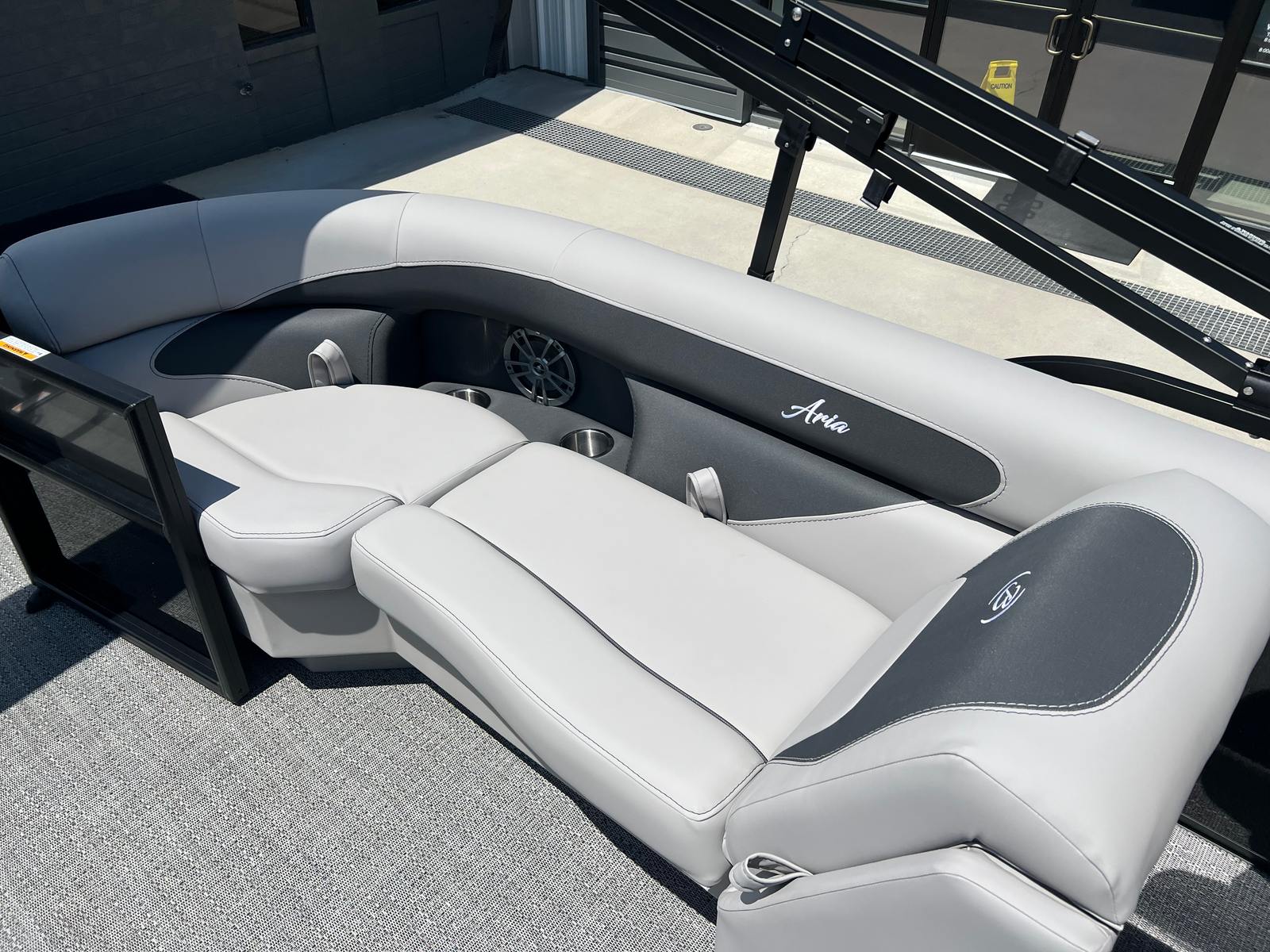The Barletta Aria A22QC is packed with premium features that set it apart from other pontoon boats for sale. The Triple Toon Package Aria provides added buoyancy and stability, making it ideal for larger groups and active days on the water. The Railskin Packages, including the Blackout Package Aria and Gray Moonstone accent, give the boat a modern, upscale look, while the Black Diamond color adds a touch of sophistication. The Eagle 5 GPS ensures accurate navigation and peace of mind, whether you’re exploring new waterways or returning to your favorite spot.A stainless steel flag pole with an American flag adds a patriotic flair, perfect for holiday outings and special occasions. The Tempest Gray furniture offers plush seating and a contemporary aesthetic, inviting you and your guests to relax in style. In-floor midship storage provides convenient space for stowing gear, water toys, and essentials, keeping the deck clutter-free and organized.