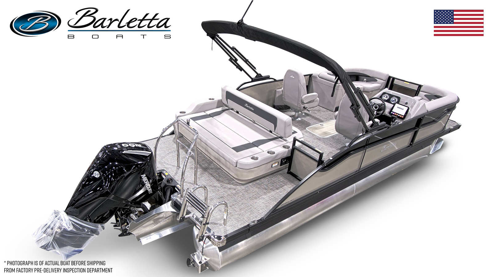 Step aboard the Barletta Aria A22UC-Platinum and you will immediately notice the attention to detail and premium materials throughout. The interior features plush Tempest Gray furniture, offering both comfort and style for all your guests. The Amore Gray flooring is not only visually appealing but also designed for durability and easy maintenance, ensuring your pontoon boat stays looking its best season after season.At the helm, you will find the advanced Simrad 7" G07 XSE, providing intuitive navigation and control at your fingertips. This state-of-the-art system makes it easy to monitor your boat’s performance, plot your course, and stay connected while on the water. The in-floor midship storage (available with the triple toon configuration) offers generous space for stowing gear, water toys, and other essentials, keeping the deck clutter-free and organized.The Blackout Package Aria and Black Diamond Railskin accents add a bold, modern touch to the exterior, while the Champagne Railskin color exudes elegance and sophistication. Every detail of the Barletta Aria A22UC-Platinum is designed to enhance your boating experience, from the premium materials to the thoughtful layout and innovative features.