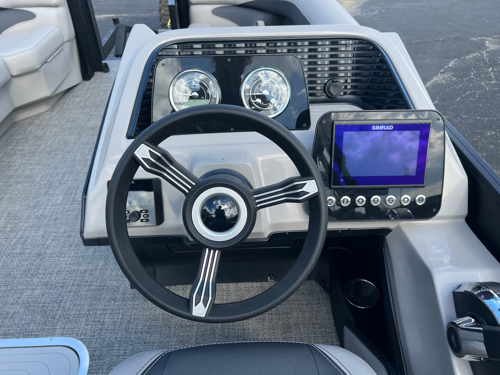 Powering this pontoon is a single Mercury (M) 200L FourStroke engine, delivering a robust 200 horsepower. This engine is renowned for its reliability, smooth operation, and impressive fuel efficiency, making it ideal for both leisurely cruises and spirited adventures. The Mercury - Mechanical with Power Assist ensures effortless handling and responsive steering, while the rig engine with stainless steel prop provides enhanced durability and performance. Whether you’re gliding across calm lakes or navigating busy waterways, the Barletta Aria A22UC-Platinum offers a dynamic and enjoyable ride.