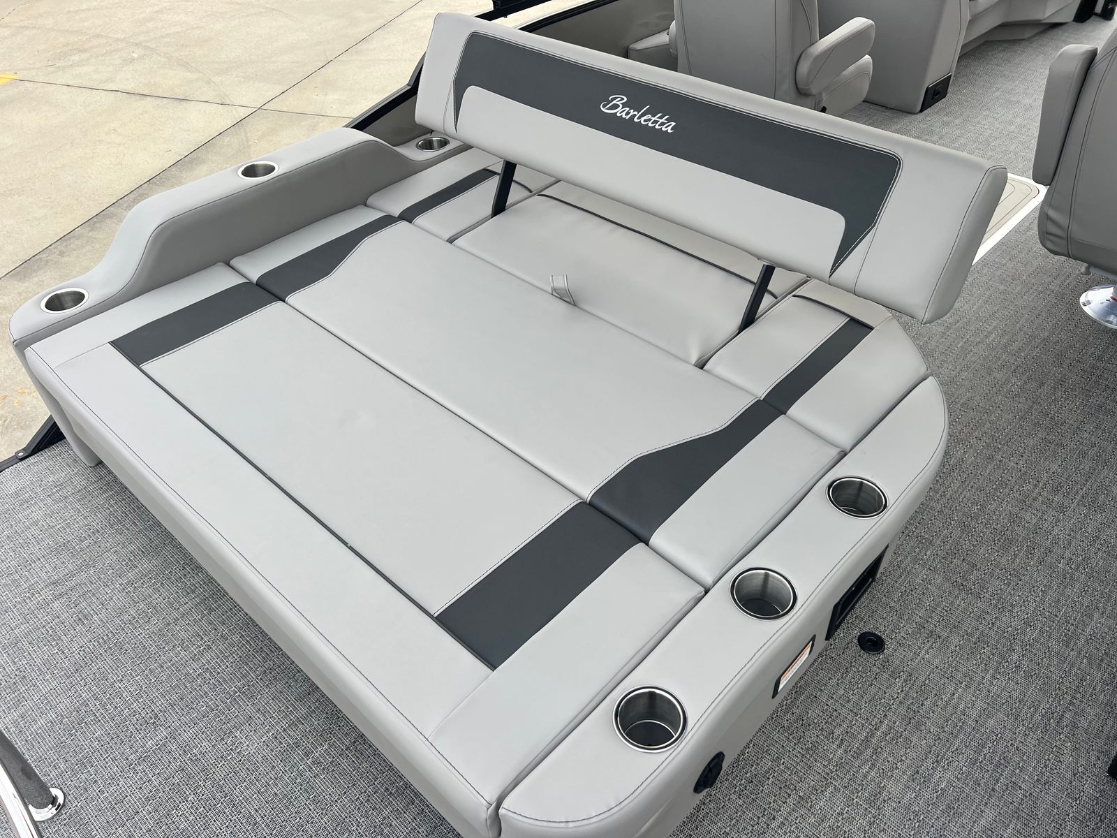 The 2026 Barletta Aria A22UC is packed with features designed to maximize comfort, convenience, and style. The Railskin Color Aria in Champagne, complemented by the Blackout Package Aria, creates a sophisticated exterior that is both eye-catching and timeless. Inside, the Tempest Gray furniture provides plush seating and a modern aesthetic, while the Amore Gray flooring offers durability and easy maintenance.The Triple Toon Package Aria adds an extra pontoon for enhanced stability and performance, making this pontoon boat ideal for a variety of activities. The onboard battery charger ensures your electronics and accessories are always ready for use, while the stainless steel flag pole with an American flag adds a patriotic touch to your boating adventures. Every detail of the Aria A22UC is thoughtfully designed to enhance your time on the water.