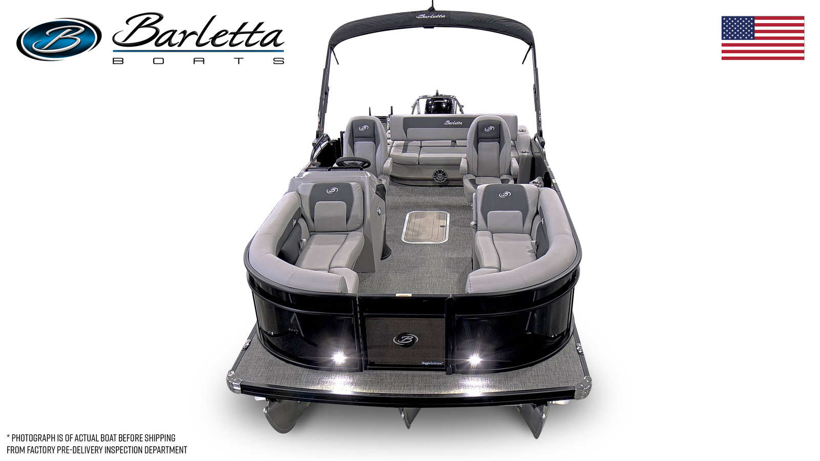 The Barletta Aria A22UC is loaded with features that set it apart from other pontoon boats for sale. The Railskin Color Aria in Black Diamond, paired with the Blackout Package Aria, gives this boat a bold and sophisticated exterior look. The stainless steel flag pole with an American flag adds a touch of patriotism and elegance, making a statement wherever you go.Step aboard and you will be greeted by Tempest Gray furniture, offering both comfort and style. The Amore Gray flooring is not only visually appealing but also practical, providing a durable and easy-to-clean surface for all your adventures. The Triple Toon Package Aria enhances stability and performance, ensuring a smooth and enjoyable ride even when the water gets choppy.One of the standout features of the Aria A22UC is the in-floor midship storage, providing ample space to stow away gear, water toys, and personal items. This thoughtful addition keeps the deck clutter-free and ensures that everything you need is within easy reach.