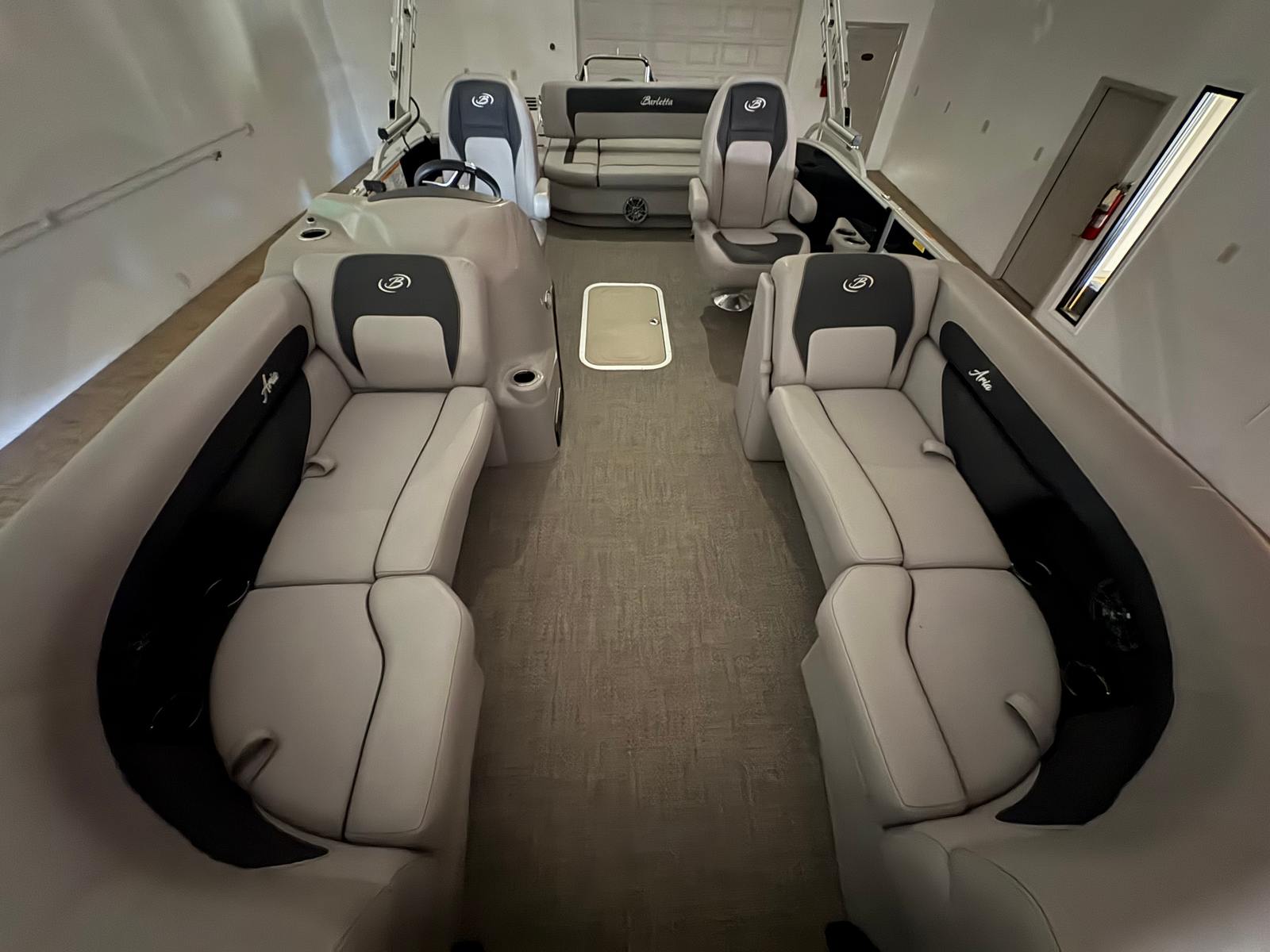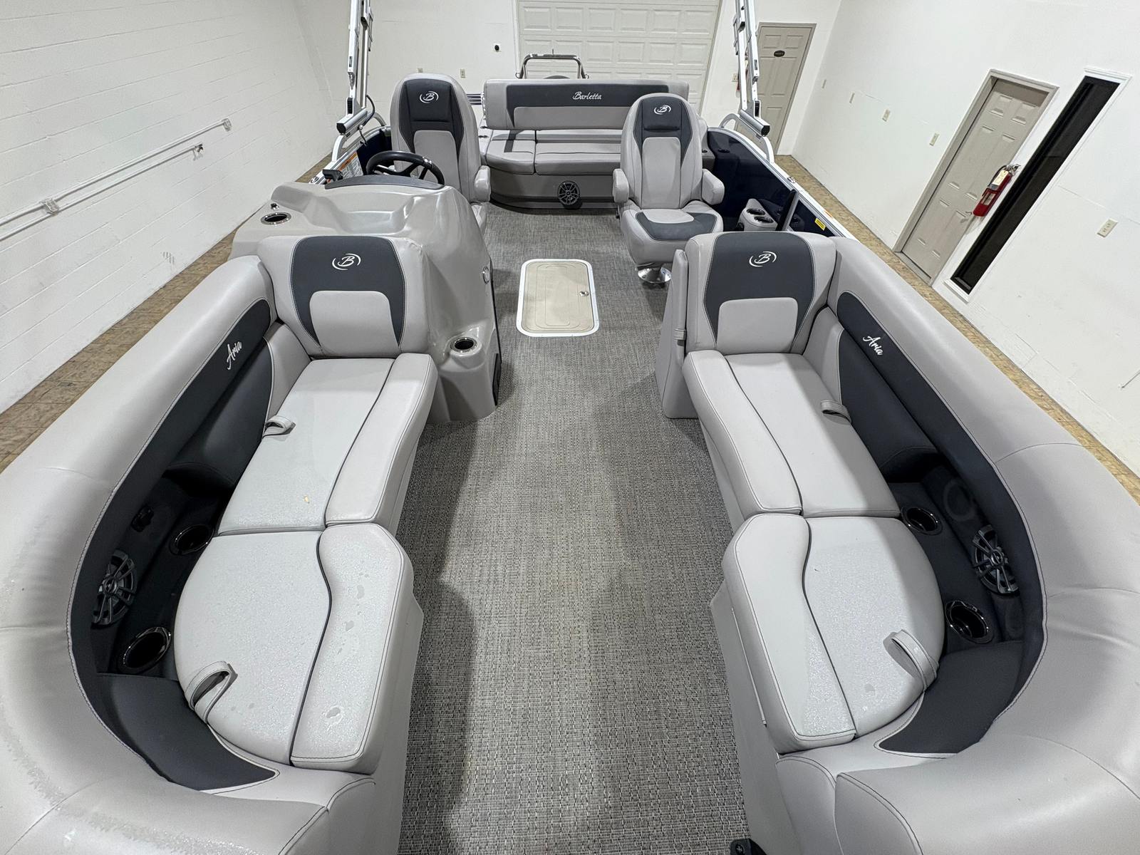The Barletta Aria A22UC is thoughtfully equipped with a range of features designed to enhance comfort, convenience, and enjoyment on the water. The Triple Toon Package Aria provides added stability and buoyancy, ensuring a smooth and steady ride even in choppier conditions. The in-floor midship storage offers a practical solution for stowing gear, water toys, and personal items, keeping the deck clutter-free and organized. The furniture, finished in Tempest Gray, exudes sophistication and comfort, inviting you and your guests to relax in style. The flooring, crafted from Amore Gray material, is both durable and visually appealing, complementing the overall aesthetic of the boat. The rig engine with standard prop ensures reliable propulsion and efficient performance, making every journey effortless and enjoyable.