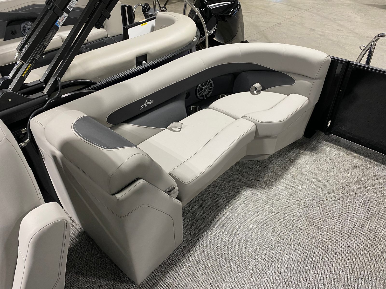 The versatility of the Barletta Aria A24QC makes it the perfect choice for a wide range of activities and occasions. Imagine gathering your family for a day of swimming, sunbathing, and picnicking on a quiet lake, or inviting friends for an evening cruise under the stars. The spacious deck and comfortable seating make it easy to entertain guests, while the powerful engine opens up opportunities for water sports and adventure.This pontoon boat is equally at home on tranquil waters or lively party coves, adapting effortlessly to your needs and preferences. Whether you are seeking relaxation, excitement, or a little bit of both, the Aria A24QC delivers an exceptional boating experience every time you set out.