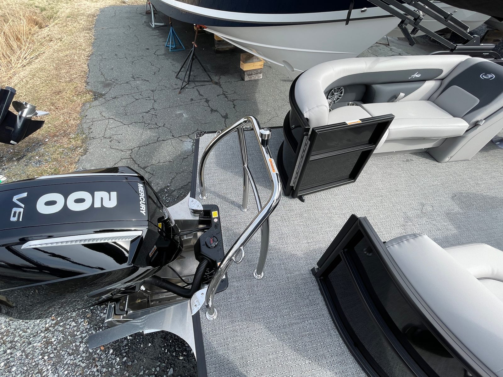 Powering the Barletta Aria A24QC is a robust Mercury (M) 200L FourStroke engine, delivering an impressive 200 horsepower. This engine is expertly rigged with a stainless steel prop, ensuring smooth acceleration, responsive handling, and reliable performance in a variety of water conditions. Whether you’re cruising along the shoreline, towing water toys, or exploring new destinations, the Aria A24QC offers the power and agility needed for a dynamic and enjoyable ride. The Mercury mechanical pre-rig ensures seamless integration and optimal operation, making every outing effortless and fun.
