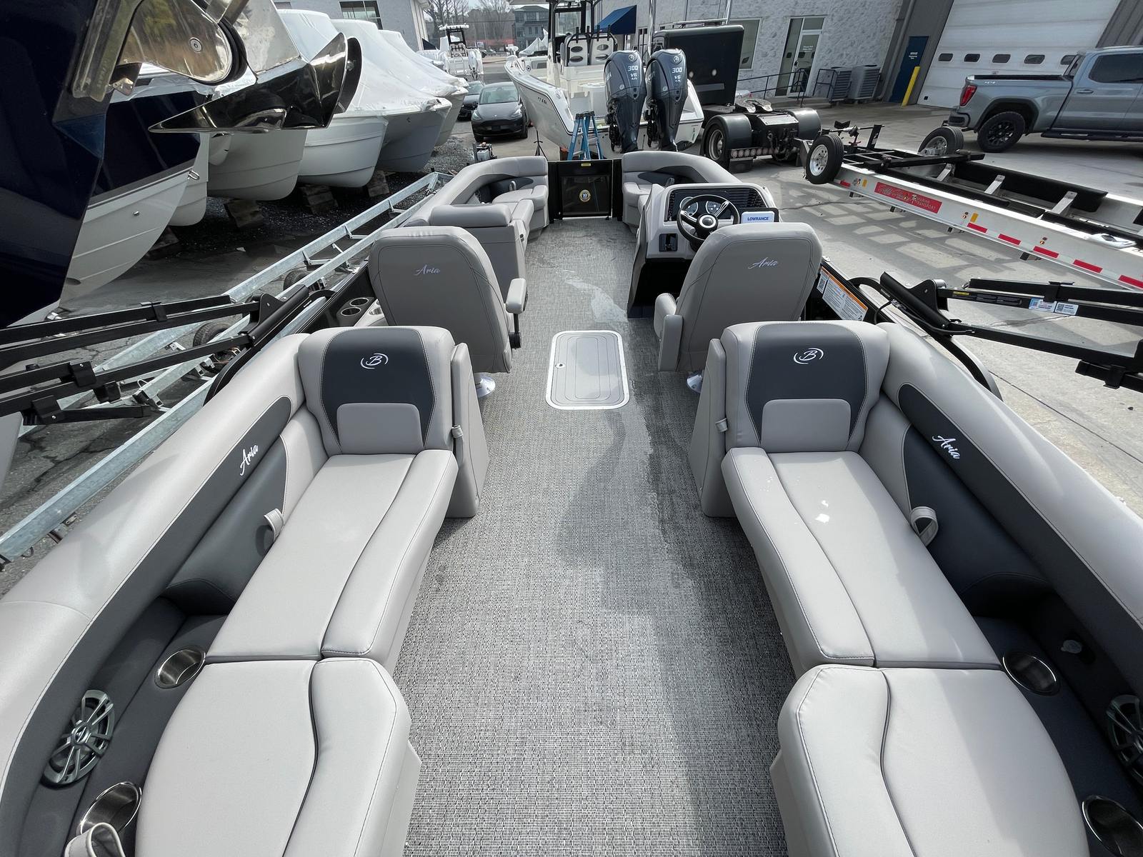 The 2026 Barletta Aria A24QC is a stunning pontoon boat that measures just over 23 feet in length, offering ample space for socializing, lounging, and enjoying the open water. Crafted with Barletta’s renowned attention to detail and quality, this model boasts a sleek and modern profile that turns heads at every dock. The Aria A24QC is built for those who appreciate both form and function, combining elegant aesthetics with practical features that enhance every boating experience.
