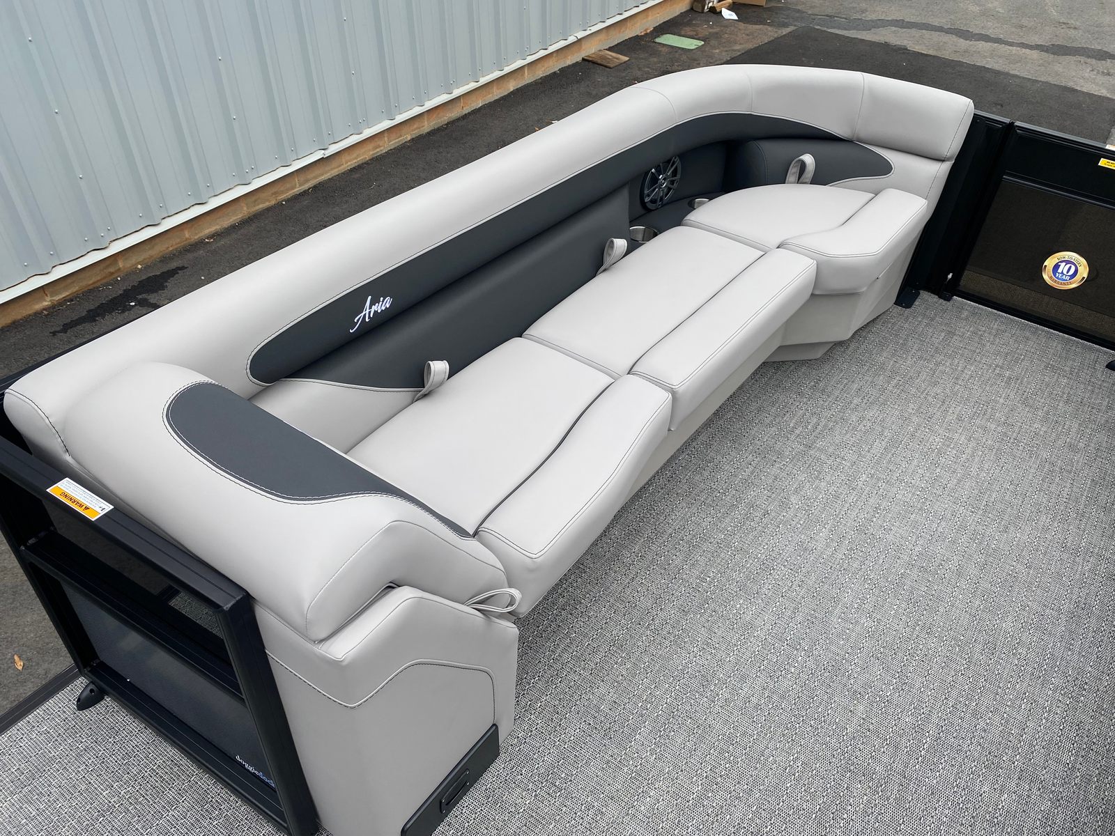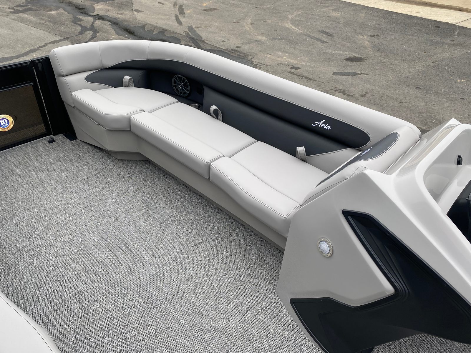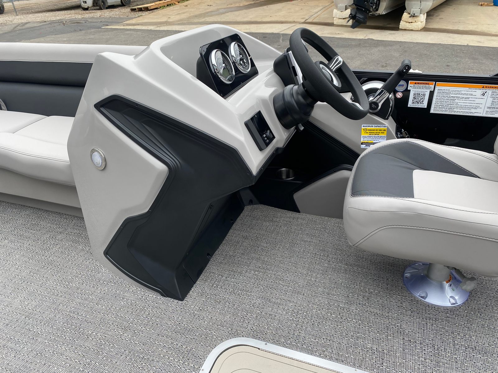 The Barletta Aria A24QC is packed with features designed to maximize comfort, convenience, and enjoyment. The Black Diamond Railskin and Blackout Package Aria create a striking exterior, while the Tempest Gray furniture offers plush seating and a refined atmosphere for you and your guests. The Amore Gray flooring is both stylish and practical, providing a durable surface that’s easy to clean and maintain.One of the standout features is the in-floor midship storage, offering generous space for stowing gear, water toys, and personal items securely out of sight. The Simrad 7" G07 XSE display brings advanced navigation and system monitoring to your fingertips, making it easy to plan your route, track your progress, and stay informed while on the water. The Drop Ship Engine setup ensures a streamlined delivery process, and the absence of a prop means you have the flexibility to choose the perfect propeller for your boating needs.