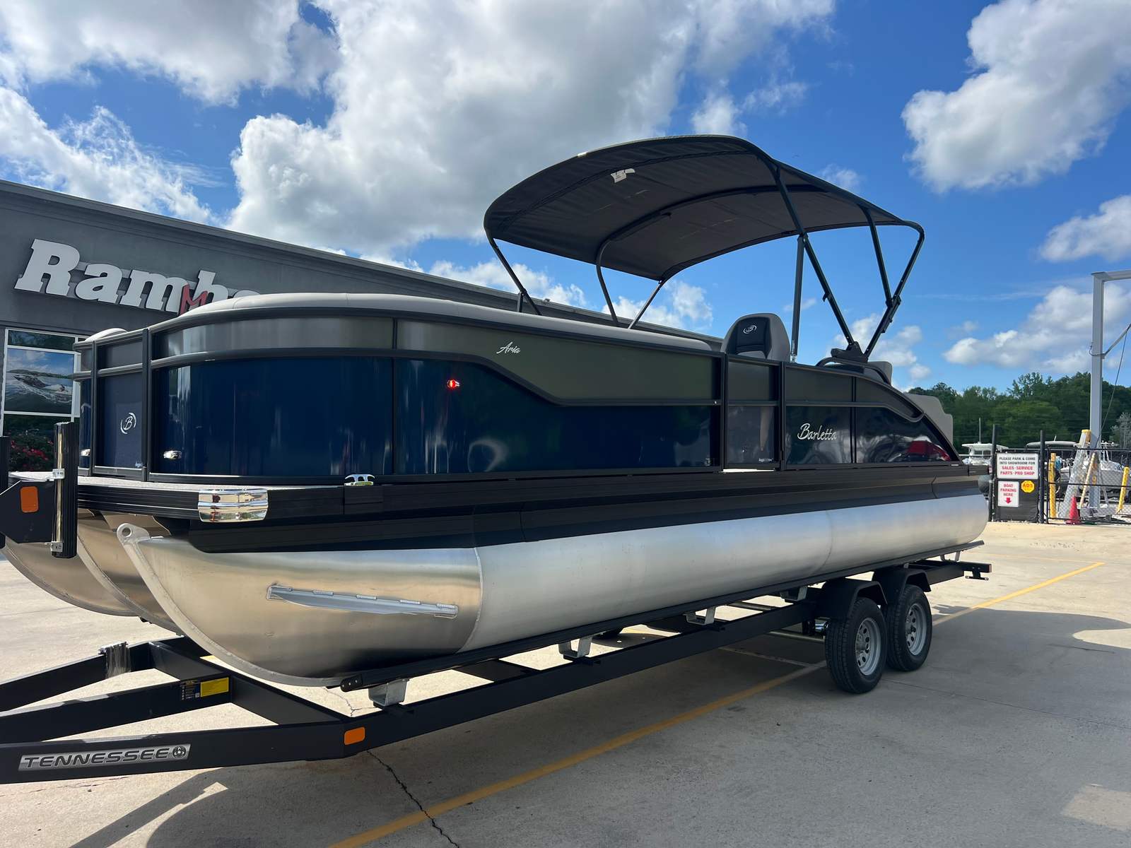 The 2026 Barletta Aria A24UC is packed with premium features designed to maximize your comfort and enjoyment on the water. The Blue Sapphire Railskin color, paired with the Aria Blackout Package, gives the boat a bold and contemporary appearance that is sure to turn heads at the marina. The Tempest Gray furniture offers plush seating for you and your guests, while the Alpine Gray flooring provides a stylish and easy-to-clean surface underfoot.For those who value convenience and organization, the in-floor midship storage is a game-changer, offering ample space to stow away gear, water toys, and personal items. The clipped playpen cover with poles ensures your pontoon stays protected from the elements when not in use, preserving its beauty and value for years to come. The rigged engine with a stainless steel prop guarantees reliable performance and longevity, so you can focus on enjoying your time on the water.