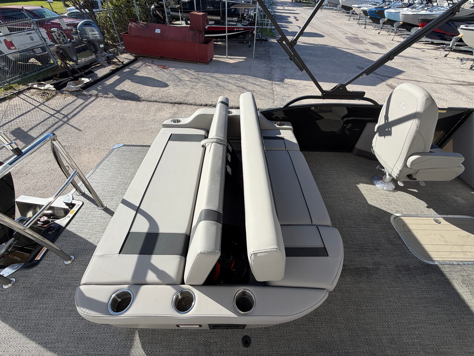 In summary, the 2026 Barletta Aria A24UC is a standout pontoon boat for sale that combines cutting-edge design, exceptional performance, and luxurious comfort. With its striking Black Diamond Railskin, Blackout Package, Tempest Gray furniture, Amore Gray flooring, Triple Toon Package, and powerful Mercury 250L FourStroke engine, this Barletta boat for sale offers everything you need for unforgettable days on the water. The double bimini setup and stainless steel flag pole with American flag add thoughtful touches that enhance both style and functionality. If you are ready to experience the ultimate in pontoon boating, don’t miss the opportunity to make the Barletta Aria A24UC your own. Contact your local dealer today to learn more and schedule a viewing.