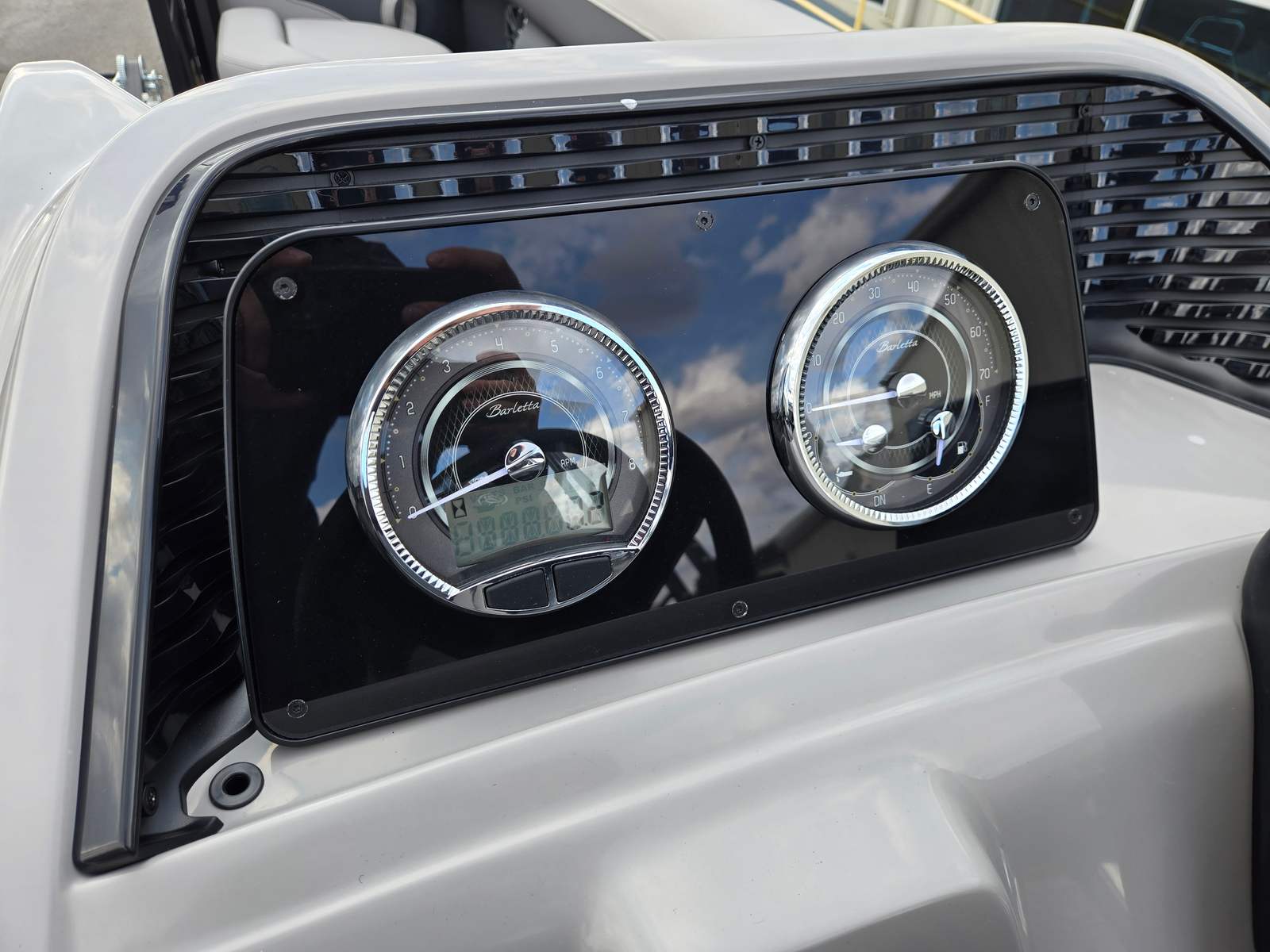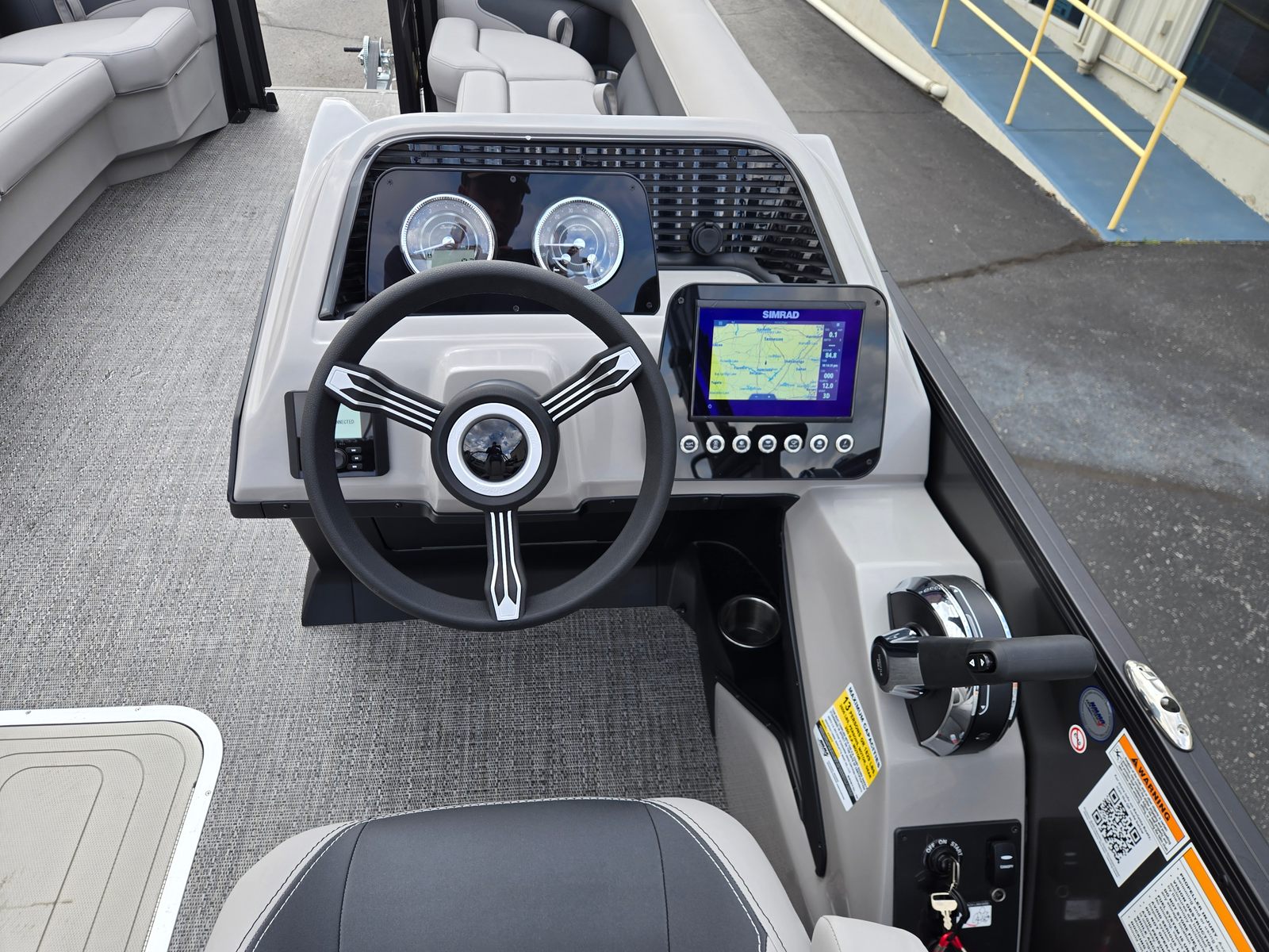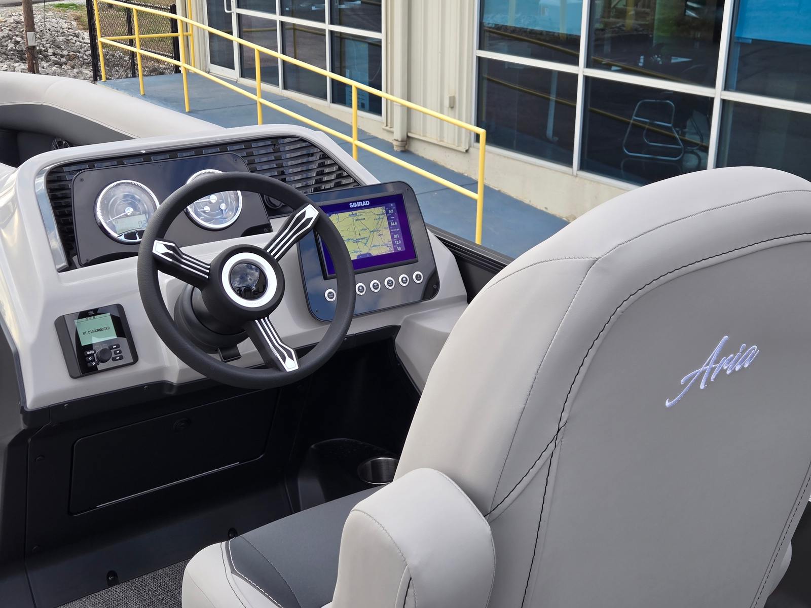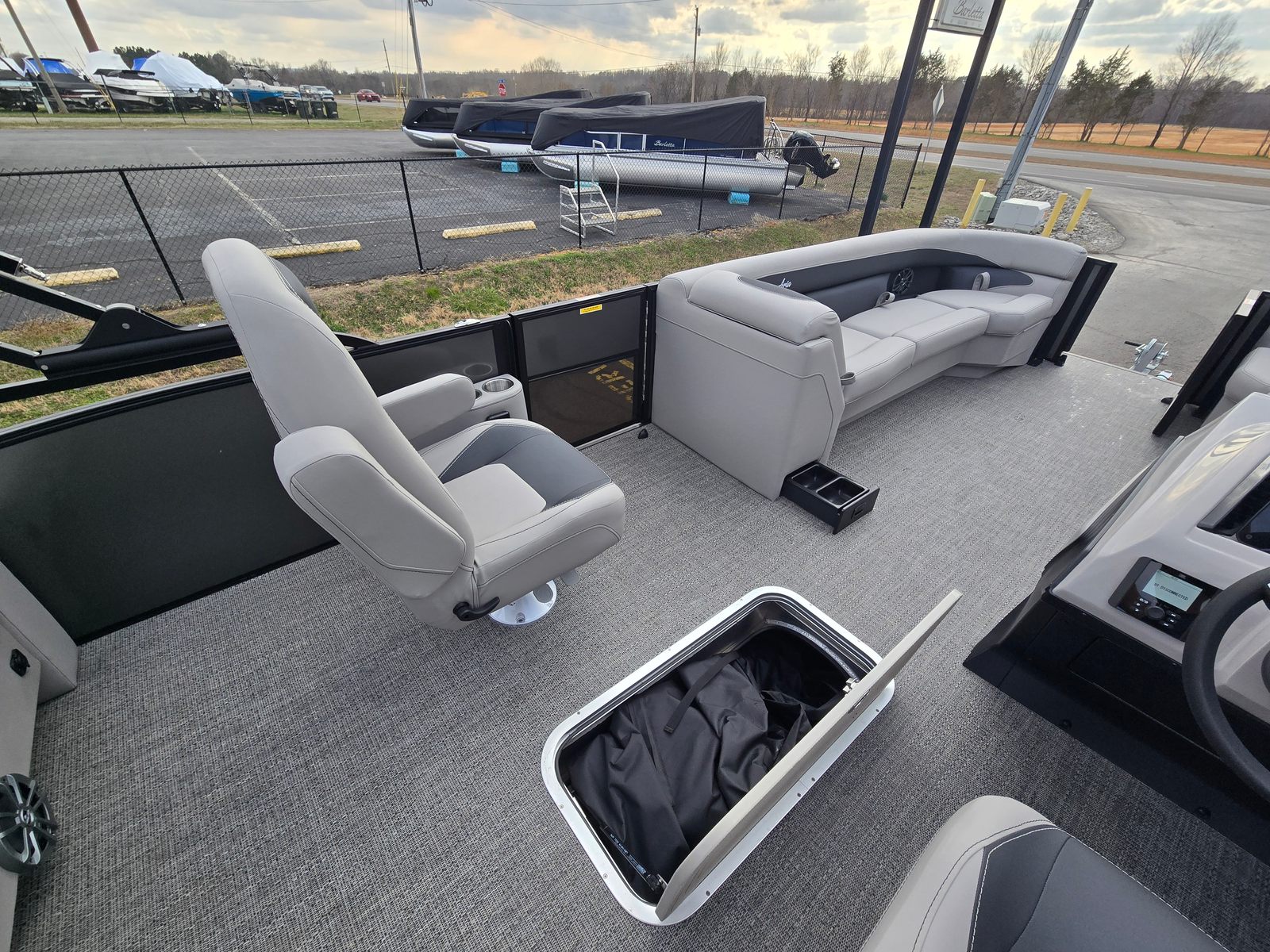The Barletta Aria A24UC is designed with practicality in mind, making ownership as enjoyable as it is rewarding. The in-floor midship storage offers ample space for gear, ensuring everything you need is within easy reach but out of the way. The sturdy construction and high-quality materials mean this pontoon boat is built to last, providing years of reliable service and enjoyment.Docking is a breeze thanks to the responsive power assist steering and manageable length, making it easy to visit your favorite waterfront restaurants or explore hidden coves. The efficient Mercury FourStroke engine helps you make the most of your time on the water without worrying about excessive fuel consumption. The stylish Railskin and Blackout Package not only enhance the boat’s appearance but also offer added durability and protection.