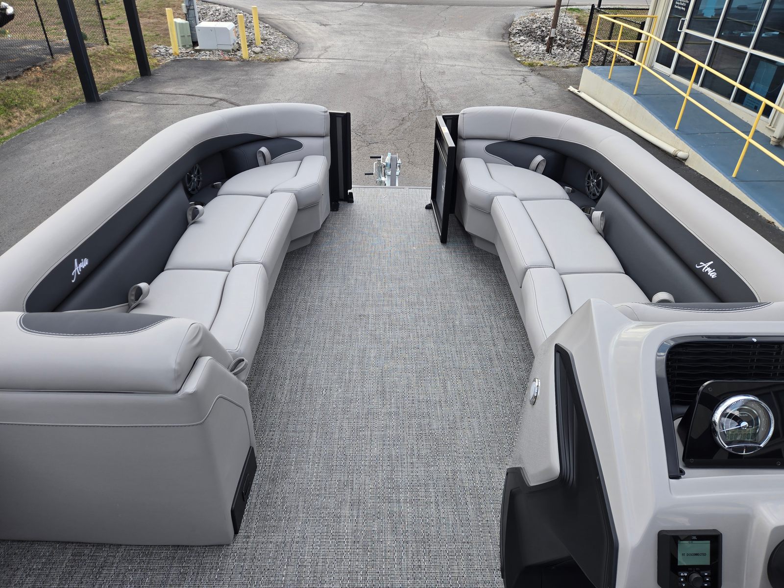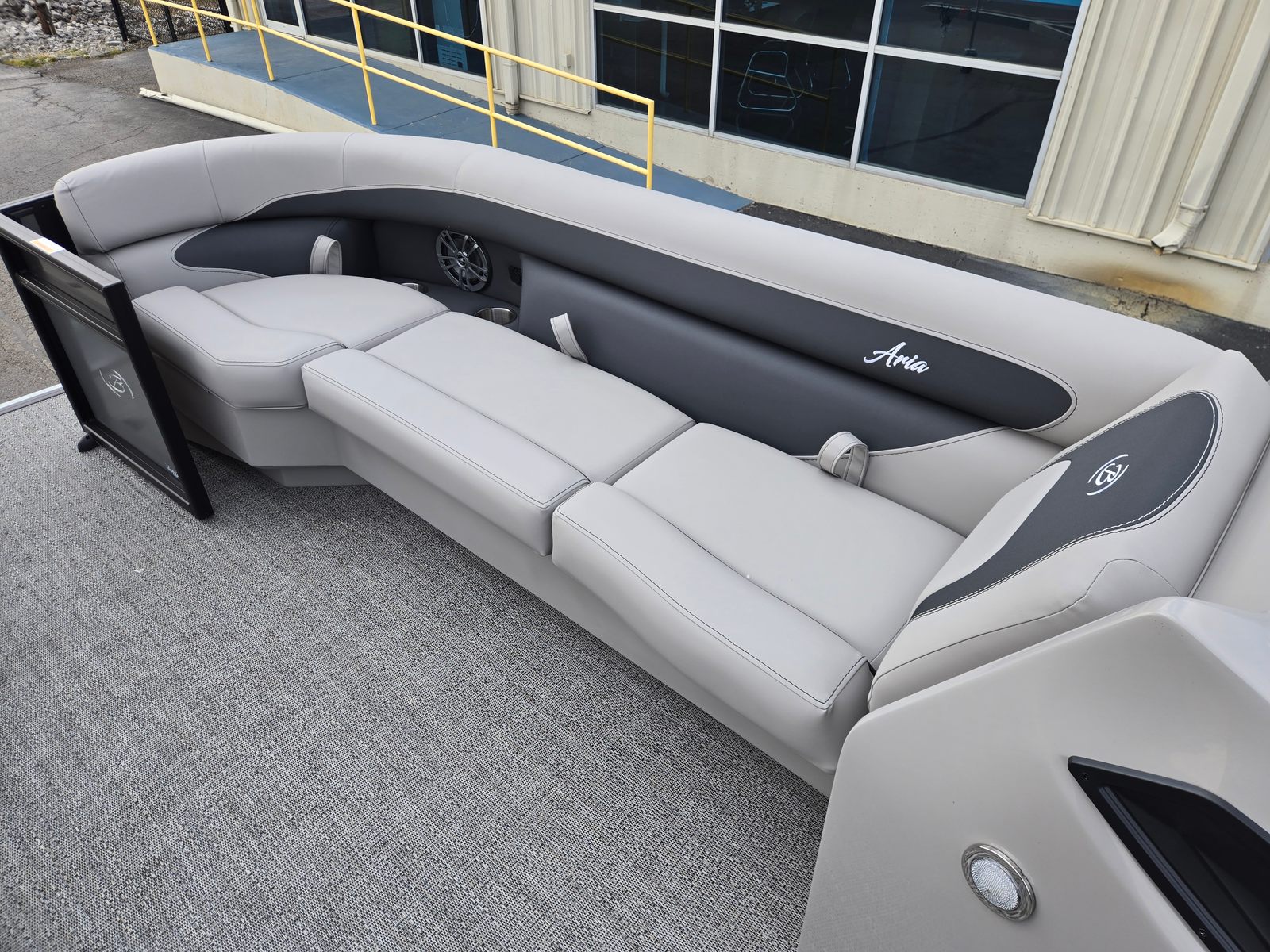 The 2026 Barletta Aria A24UC pontoon boat is a remarkable blend of style, performance, and versatility. With its striking Gray Moonstone Railskin, Blackout Package, Tempest Gray furniture, Amore Gray flooring, and advanced Triple Toon Package, this Barletta boat for sale offers an unparalleled boating experience. The powerful Mercury engine, in-floor midship storage, and stainless steel flag pole with American flag add both functionality and flair.If you are searching for a pontoon boat for sale that delivers comfort, excitement, and lasting memories, the Barletta Aria A24UC is an exceptional choice. Don’t miss your opportunity to own this new, feature-rich pontoon – contact your local dealer today to learn more and schedule a viewing. Your next adventure awaits on the water with the Barletta Aria A24UC.