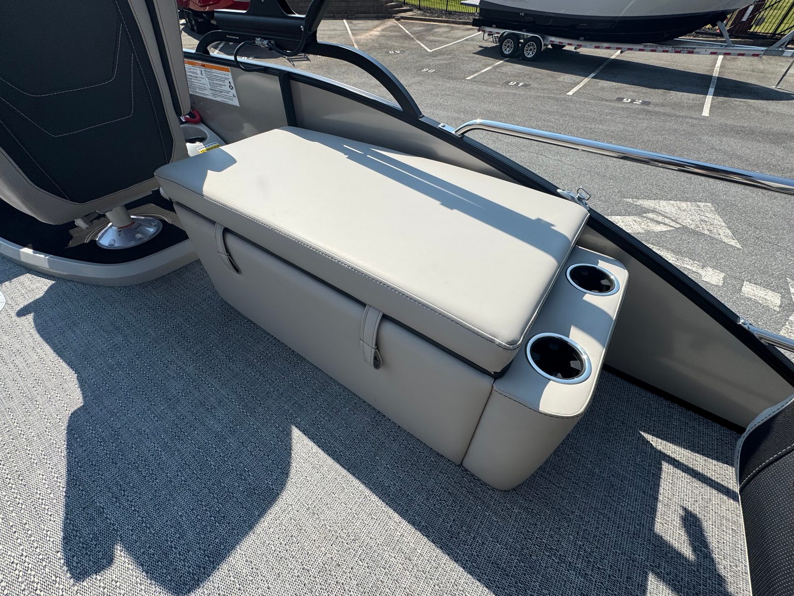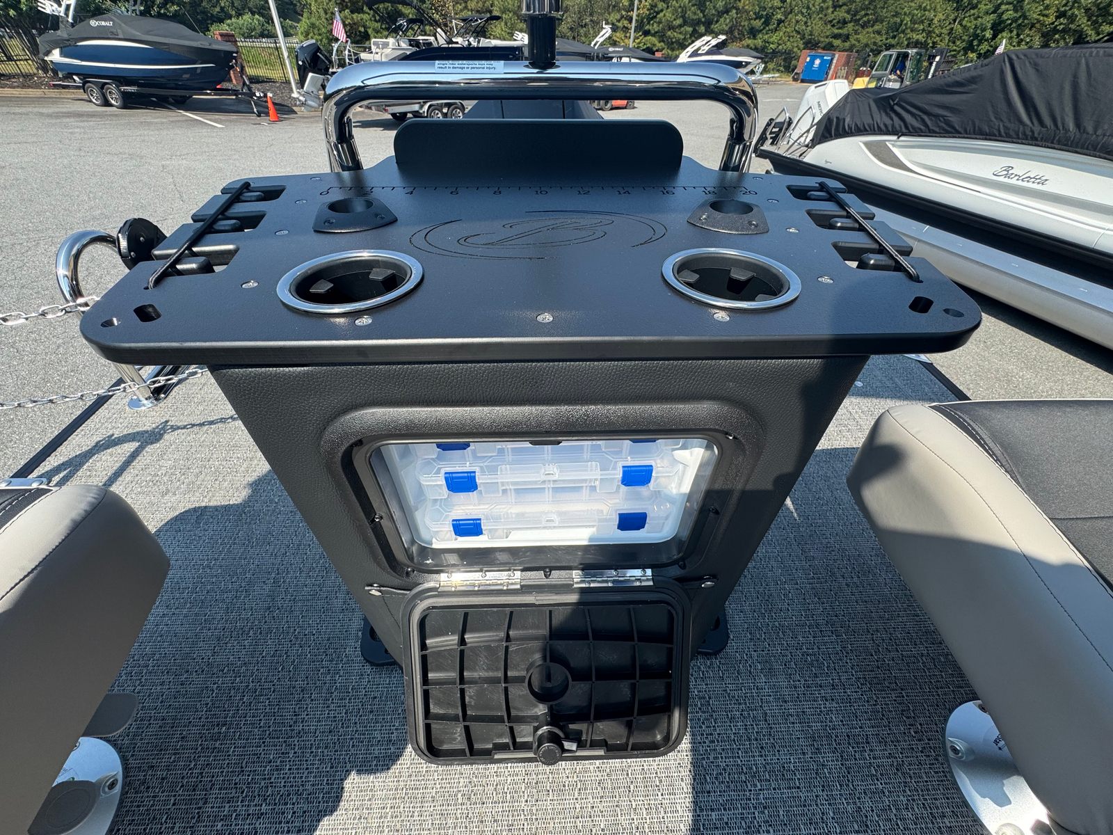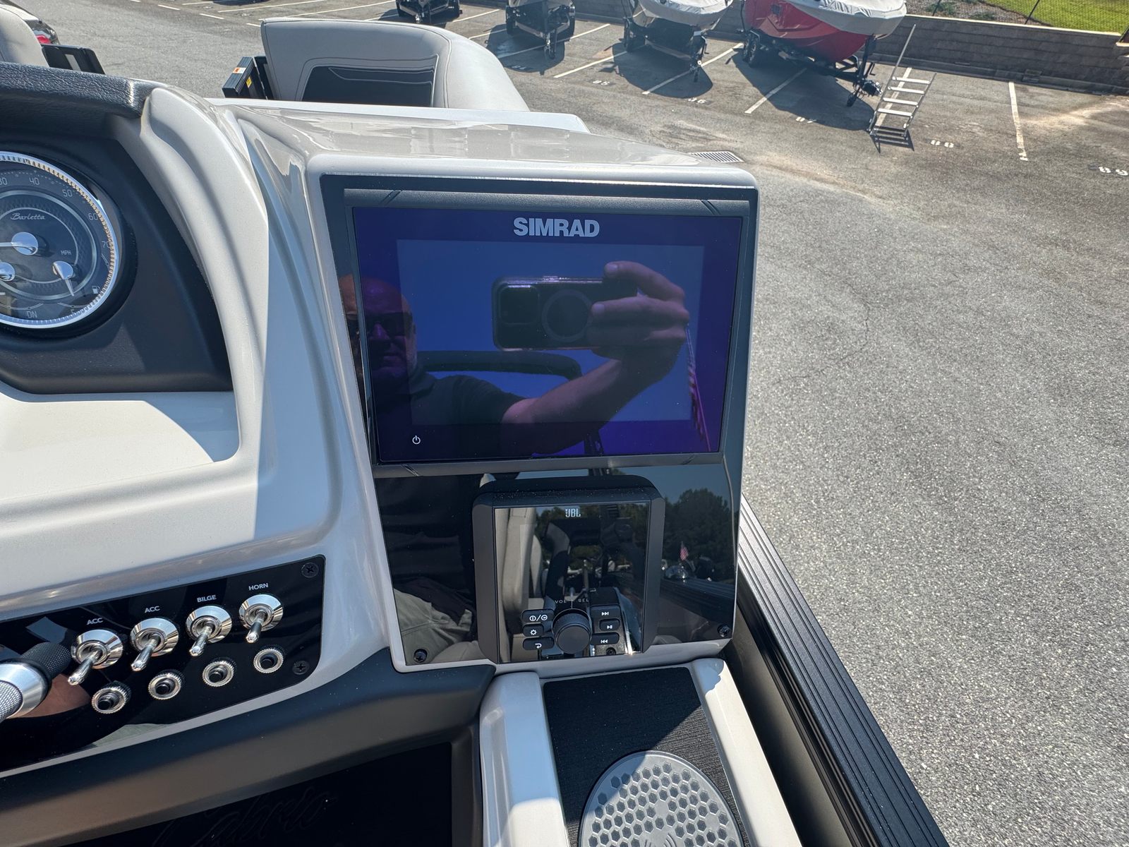 The Barletta Cabrio C22CC is packed with premium features designed to enhance your boating experience. The Triple Toon Package with Midship Storage – Cabrio adds stability and extra storage capacity, making it ideal for extended trips and larger groups. The interior boasts In Floor Midship Storage for CC with Rod Storage (requires Triple Toon), providing a convenient and secure place for fishing gear and other essentials. The flooring is finished in Amore Gray, offering a modern and easy-to-clean surface that complements the Marquesan Gray with Onyx furniture. The exterior is adorned with a Stainless Steel Flag Pole and American Flag, adding a touch of patriotic flair to your vessel.At the helm, you’ll find the Simrad 7" G07 XSR Chartplotter/Multifunction Display (does not include engine communication – dealer add except with digital rig), which provides advanced navigation and system monitoring capabilities. This feature ensures you stay informed and in control, no matter where your adventures take you.