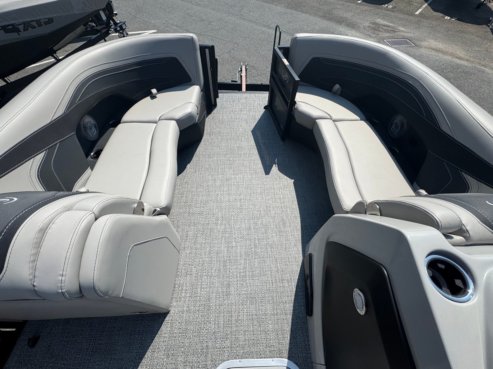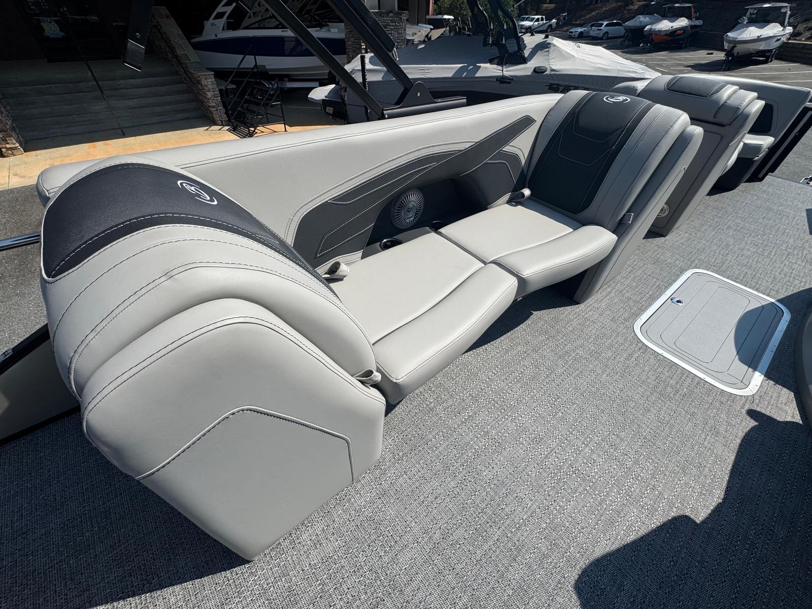 Owning the Barletta Cabrio C22CC pontoon boat means enjoying a perfect balance of comfort, style, and functionality. The spacious deck layout allows for effortless socializing, whether you’re hosting a family picnic, celebrating with friends, or simply soaking up the sun. The plush Marquesan Gray with Onyx furniture invites you to relax in luxury, while the ample storage solutions keep your gear organized and accessible.The Triple Toon Package enhances stability and ride quality, making the Cabrio C22CC a safe and enjoyable choice for all ages. The powerful Mercury engine ensures you have the speed and agility to explore new waters, participate in water sports, or reach your favorite fishing spots with ease. With its striking Champagne accent and stainless steel details, this pontoon boat is as visually appealing as it is functional.