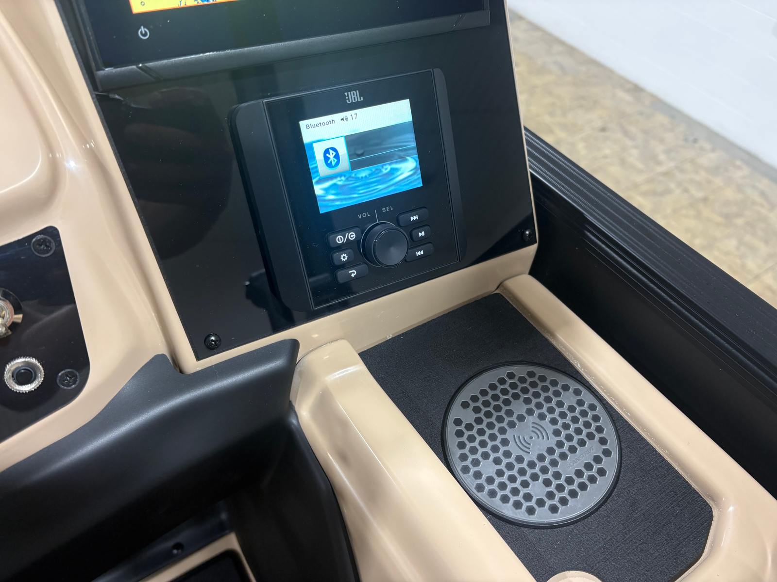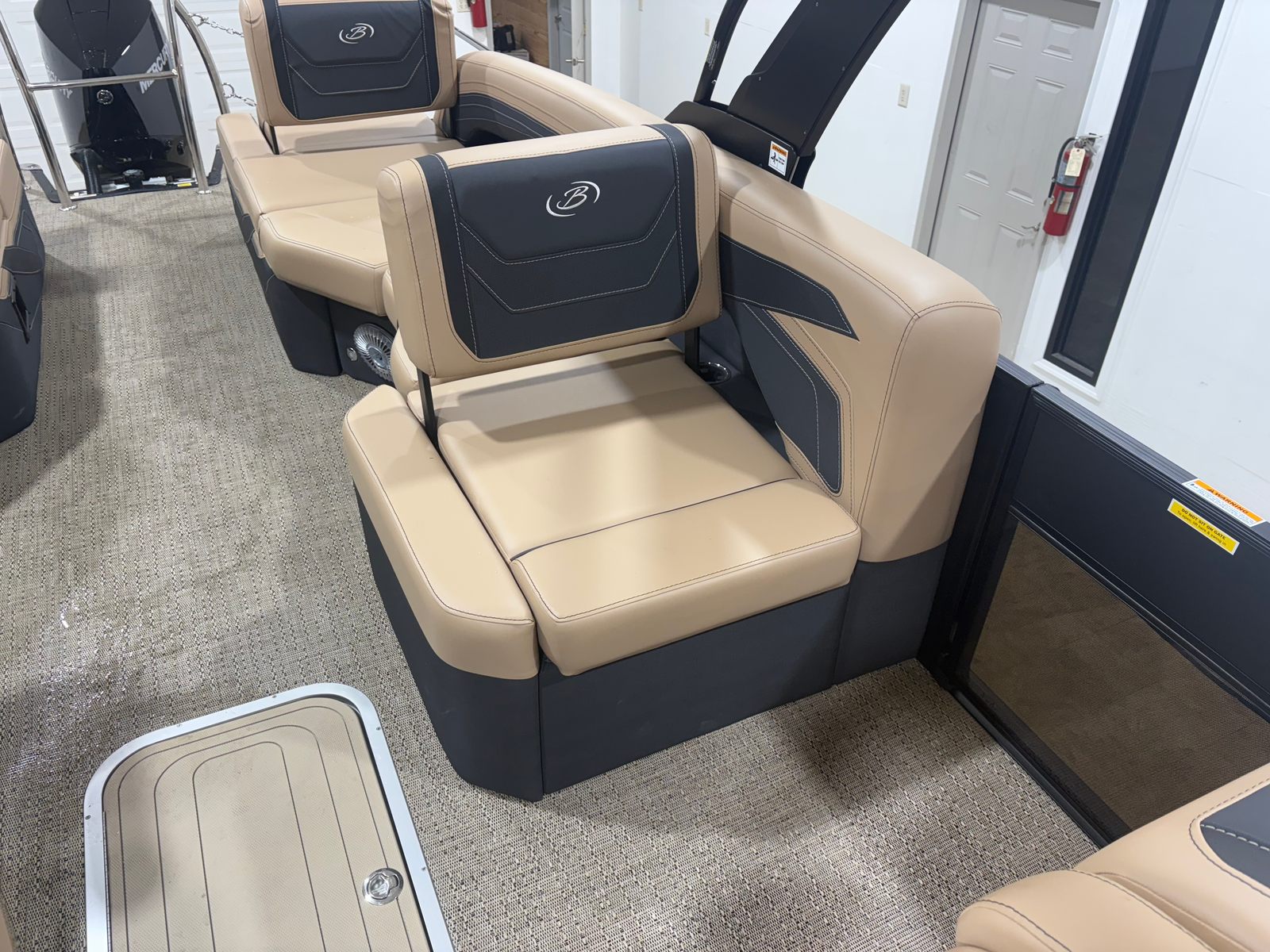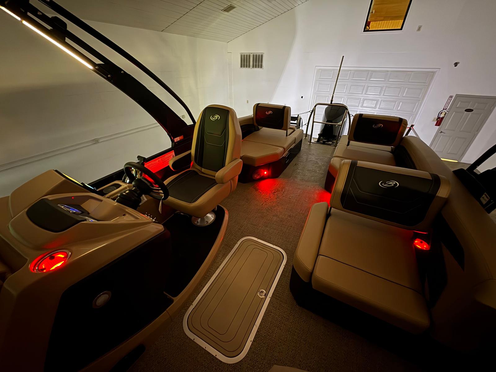 Step aboard the Barletta Cabrio C22M and experience a world of comfort and convenience. The Carmella Tan furniture with Onyx accents creates a warm and inviting atmosphere, perfect for relaxing with friends and family. The Amore Tan flooring is both stylish and practical, providing a soft, slip-resistant surface that is easy to maintain. The Triple Toon Package with midship storage adds extra stability and ample space for all your gear, ensuring that everything you need for a day on the water is right at your fingertips.The Cabrio C22M also features a Sport Bimini, installed in place of the standard bimini, offering superior shade and protection from the sun. This thoughtful addition makes it easy to stay cool and comfortable, even on the hottest summer days. Every detail of this pontoon boat has been carefully considered to enhance your boating experience, from the premium materials to the advanced rigging and engine setup.