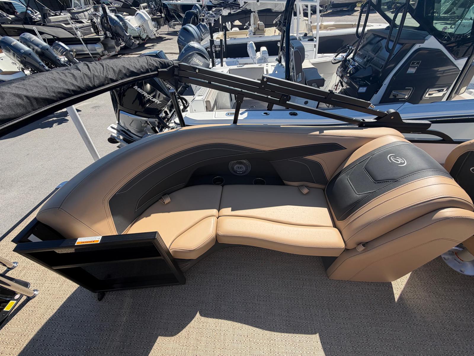 The Barletta Cabrio C22QC is packed with special features that elevate your boating experience. The Coastal Edition Cabrio ensures enhanced durability and style, making it ideal for a variety of environments. The Triple Toon Package with midship storage adds stability and extra space, allowing for smoother rides and convenient storage solutions. The furniture is finished in Carmella Tan with Onyx accents, providing plush seating and a luxurious atmosphere. The Amore Tan flooring complements the overall design, creating a warm and inviting space for you and your guests. Every detail, from the railskin packages to the premium upholstery, is thoughtfully crafted to deliver comfort and elegance.
