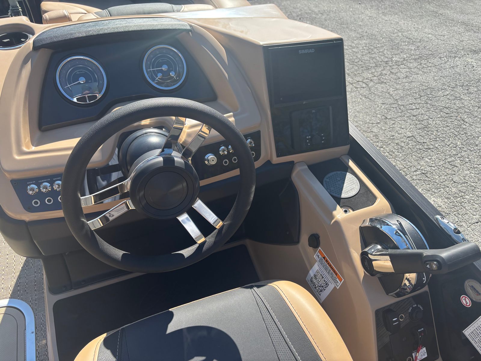 The 2026 Barletta Cabrio C22U is packed with special features that set it apart from other pontoon boats for sale. At the helm, you’ll find the Simrad 7" G07 XSR Chartplotter/Multifunction Display, providing advanced navigation and multifunction capabilities to keep you informed and in control. The interior RGB Lighting Package Cabrio creates a vibrant and customizable atmosphere, perfect for evening cruises or festive gatherings. The Amore Tan flooring adds a touch of elegance and comfort underfoot, while the exterior is adorned with a stainless steel flag pole and American flag, showcasing your pride and style.One of the standout features is the Triple Toon Package with Midship Storage - Cabrio, which enhances stability, buoyancy, and onboard storage capacity. This makes the Cabrio C22U not only a pleasure to drive but also practical for storing gear, water toys, and essentials for extended outings. The Black Diamond railskin color and Blackout Package Cabrio further elevate the boat’s aesthetic appeal, ensuring you turn heads wherever you go.