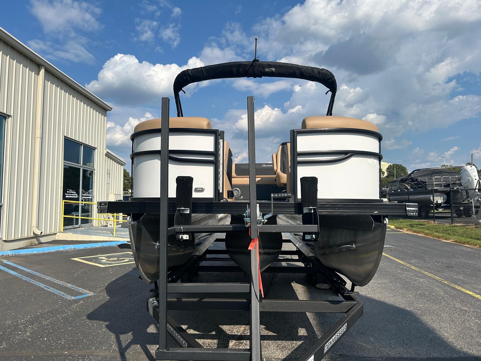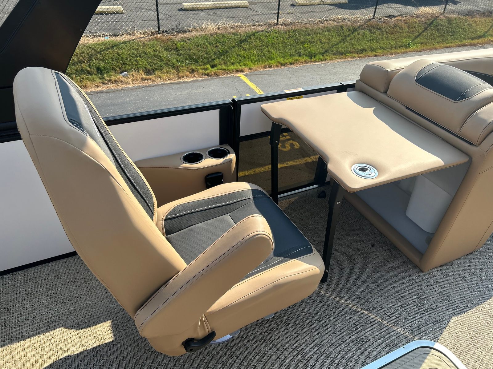 The 2026 Barletta Cabrio C22UC is loaded with premium features that elevate your boating experience. The Blackout Package Cabrio railskin adds a bold, modern touch to the exterior, while the Amore Tan flooring provides a warm and inviting atmosphere underfoot. The Sport Bimini, installed in place of the standard bimini, offers superior shade and protection, allowing you to enjoy long days on the water in comfort.For those who appreciate ambiance, the Interior RGB Lighting Package Cabrio lets you customize the mood with vibrant, adjustable lighting, while the exterior white underdeck and underwater lighting create a striking presence after dark. The onboard battery charger with two batteries ensures you have reliable power for all your adventures, while the triple toon package with midship storage maximizes stability and provides ample space for gear and essentials.A stainless steel flag pole with an American flag adds a patriotic flair, making this pontoon boat a true standout wherever you go. Every detail, from the rigged engine with stainless steel prop to the thoughtfully designed storage solutions, reflects Barletta’s dedication to quality and innovation.
