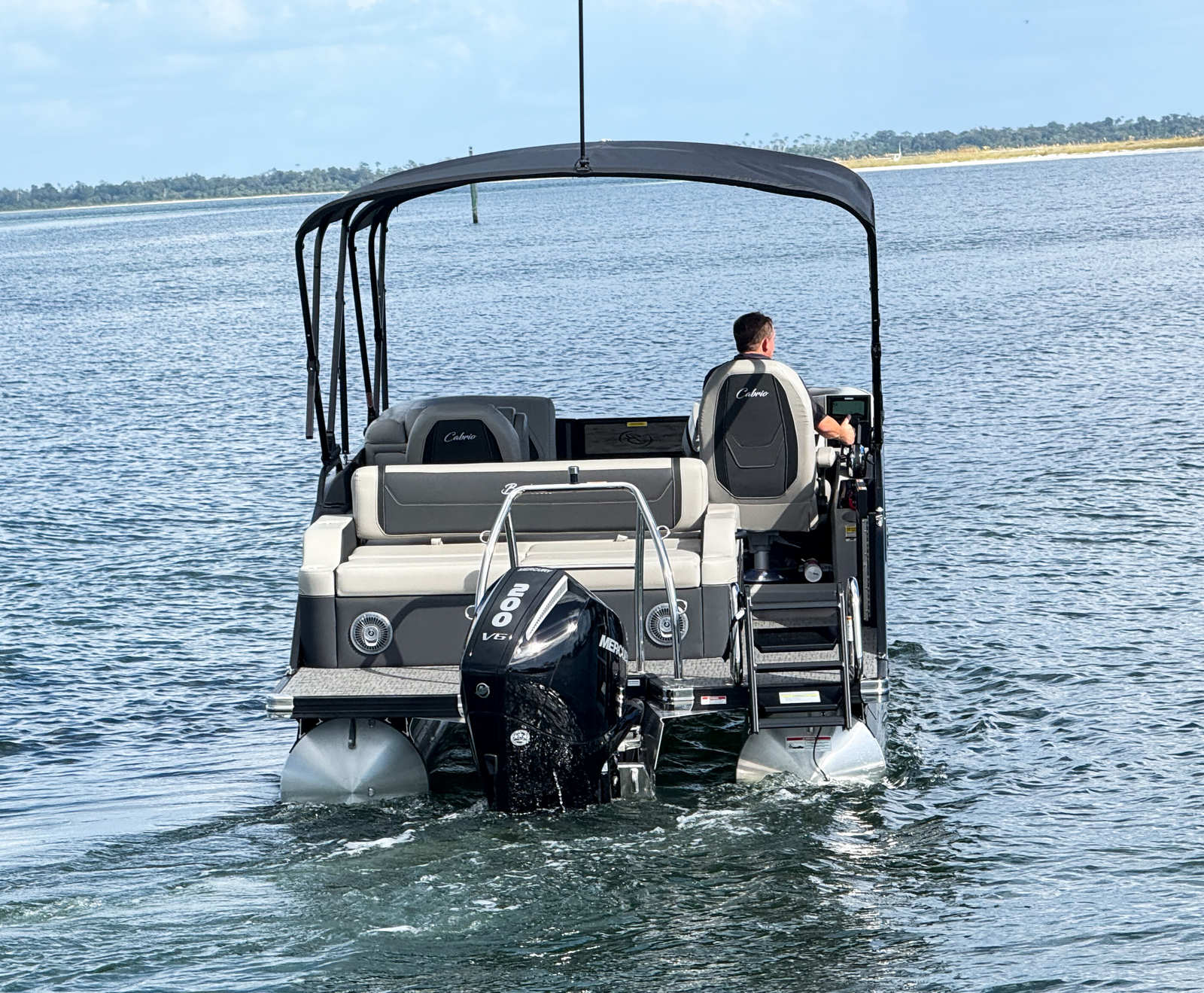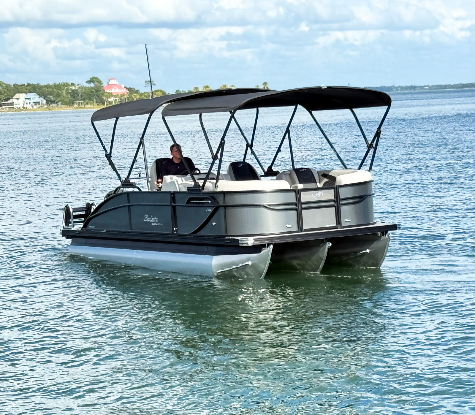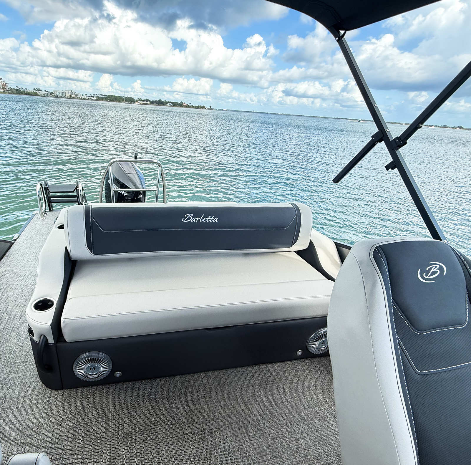 The Barletta Cabrio C22UC is packed with premium features that elevate your boating experience. The Gray Moonstone Railskin color and Blackout Package Cabrio give the boat a contemporary, upscale look, while the Marquesan Gray with Onyx furniture provides plush seating and a refined aesthetic. The Amore Gray flooring is both stylish and practical, offering durability and easy maintenance for busy days on the water.As part of the Coastal Edition Cabrio, this pontoon is built to withstand the elements, ensuring longevity and peace of mind. The Triple Toon Package with midship storage not only enhances performance but also provides convenient space for stowing gear, water toys, and essentials. The double bimini, including an additional power bimini, offers exceptional shade and protection from the sun, allowing you to relax in comfort during long afternoons on the water. Every feature is thoughtfully integrated to maximize enjoyment, convenience, and safety.