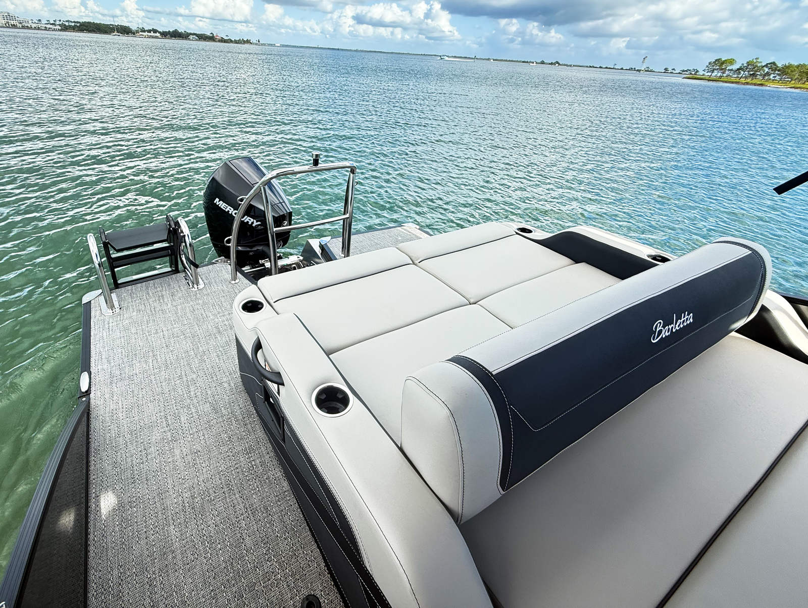 Powering the Barletta Cabrio C22UC is a robust Mercury 200L 4S engine, delivering an impressive 200 horsepower. This single-engine setup ensures smooth acceleration, reliable performance, and efficient cruising, whether you are gliding across calm waters or exploring new destinations. The Mercury mechanical pre-rig with power assist and stainless steel prop enhances handling and maneuverability, making docking and navigating tight spaces a breeze. The Triple Toon Package with midship storage further boosts stability and ride quality, allowing you to enjoy a confident and comfortable journey every time you set out.