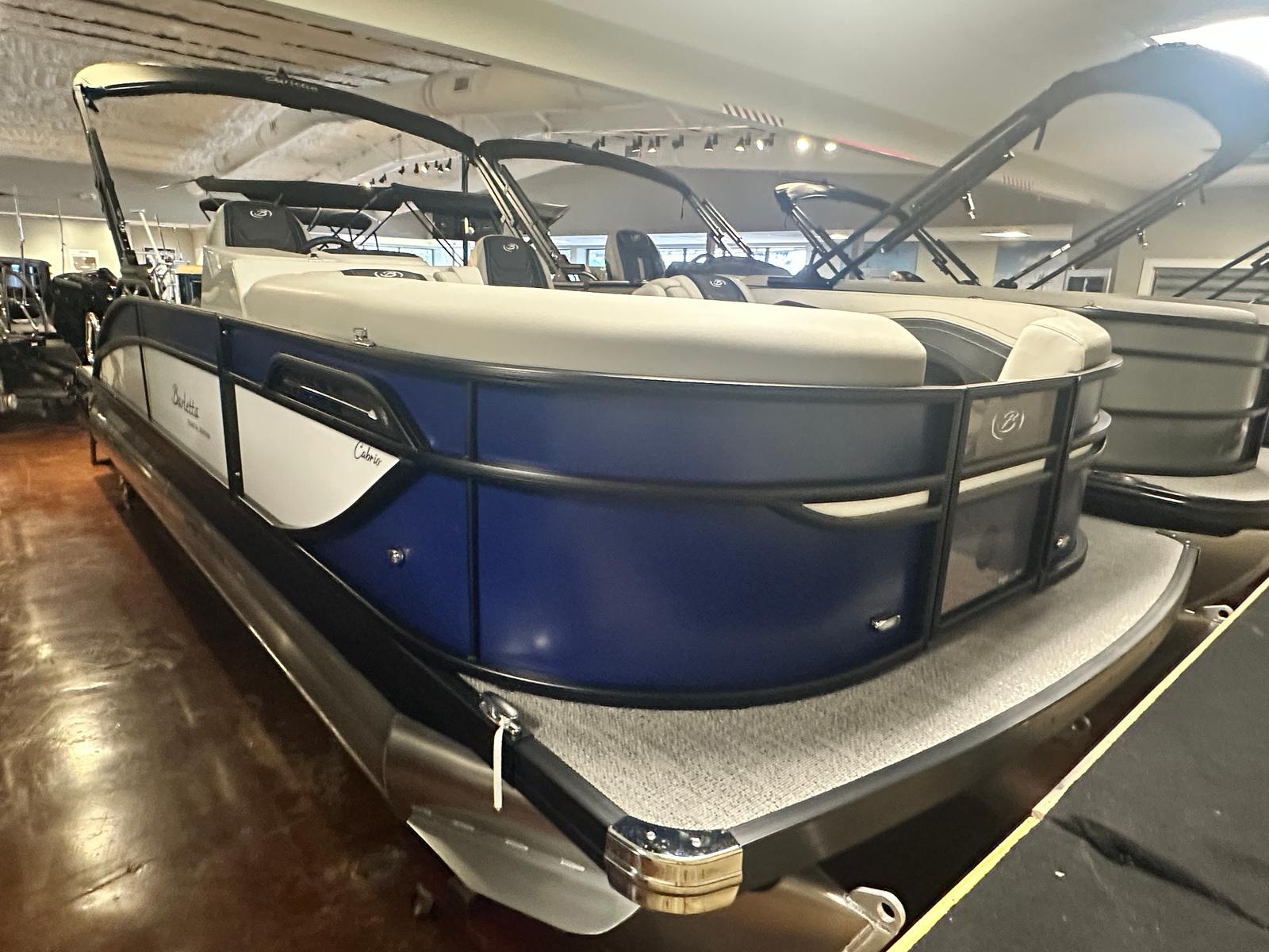 The 2026 Barletta Cabrio C22UC is packed with features that set it apart from other pontoon boats for sale. The striking Bohemian Blue railskin color, accented with Winter White, gives the boat a modern and stylish appearance, while the Blackout Package adds a touch of sophistication and flair. The Marquesan Gray with Onyx furniture provides plush, comfortable seating for all your guests, and the Amore Gray flooring is both elegant and easy to maintain. The Coastal Edition ensures that this pontoon is ready for a variety of environments, offering versatility and peace of mind. The Triple Toon Package with midship storage not only enhances performance but also provides ample space for your gear and water toys, keeping the deck clutter-free and organized.